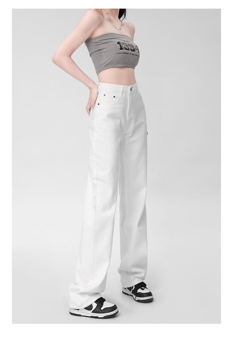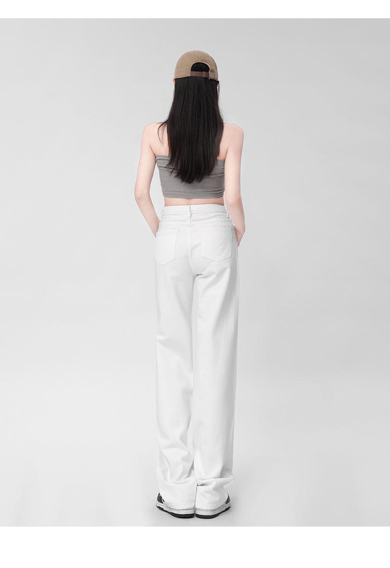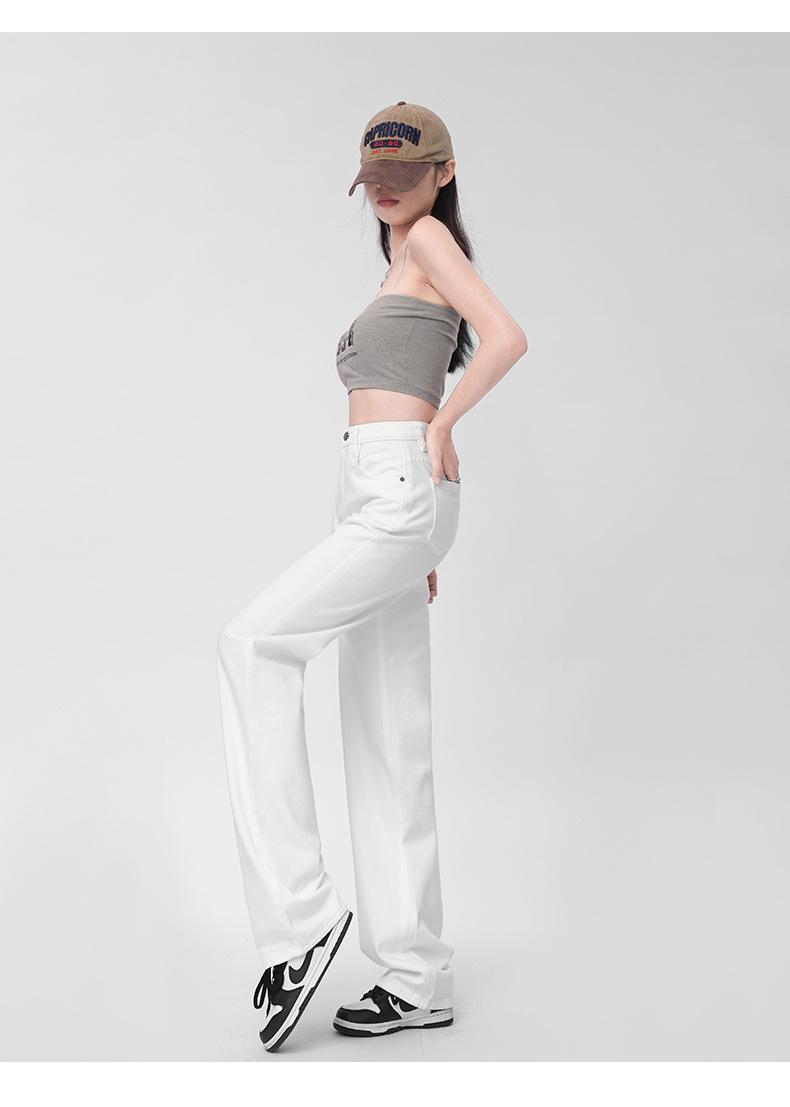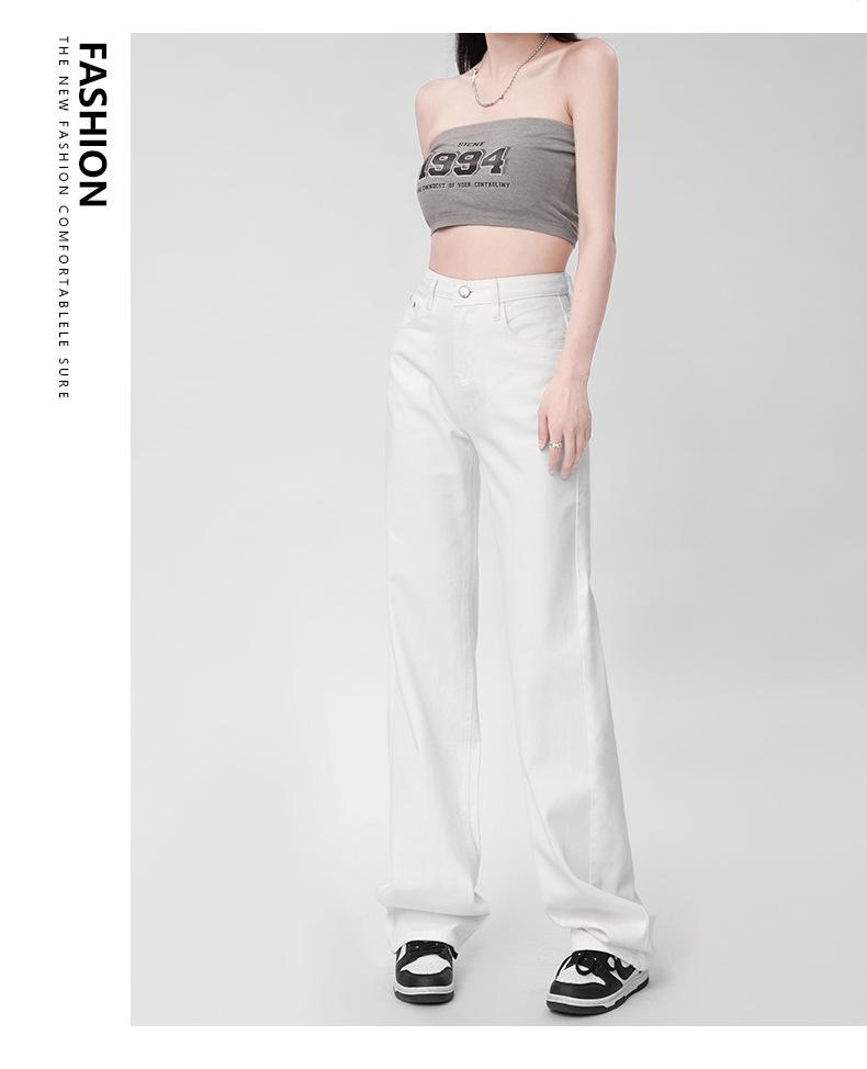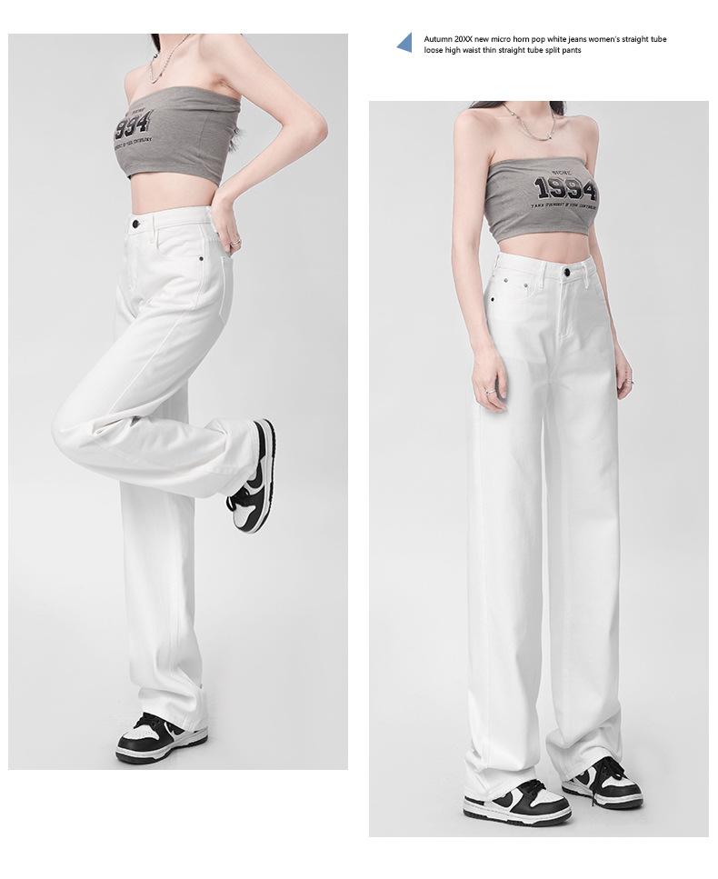 Pantalones vaqueros blancos rectos de versión estrecha para mujer, primavera y otoño 2024, cintura alta, aspecto pequeño y ajustado, pierna ancha y con aberturas.