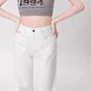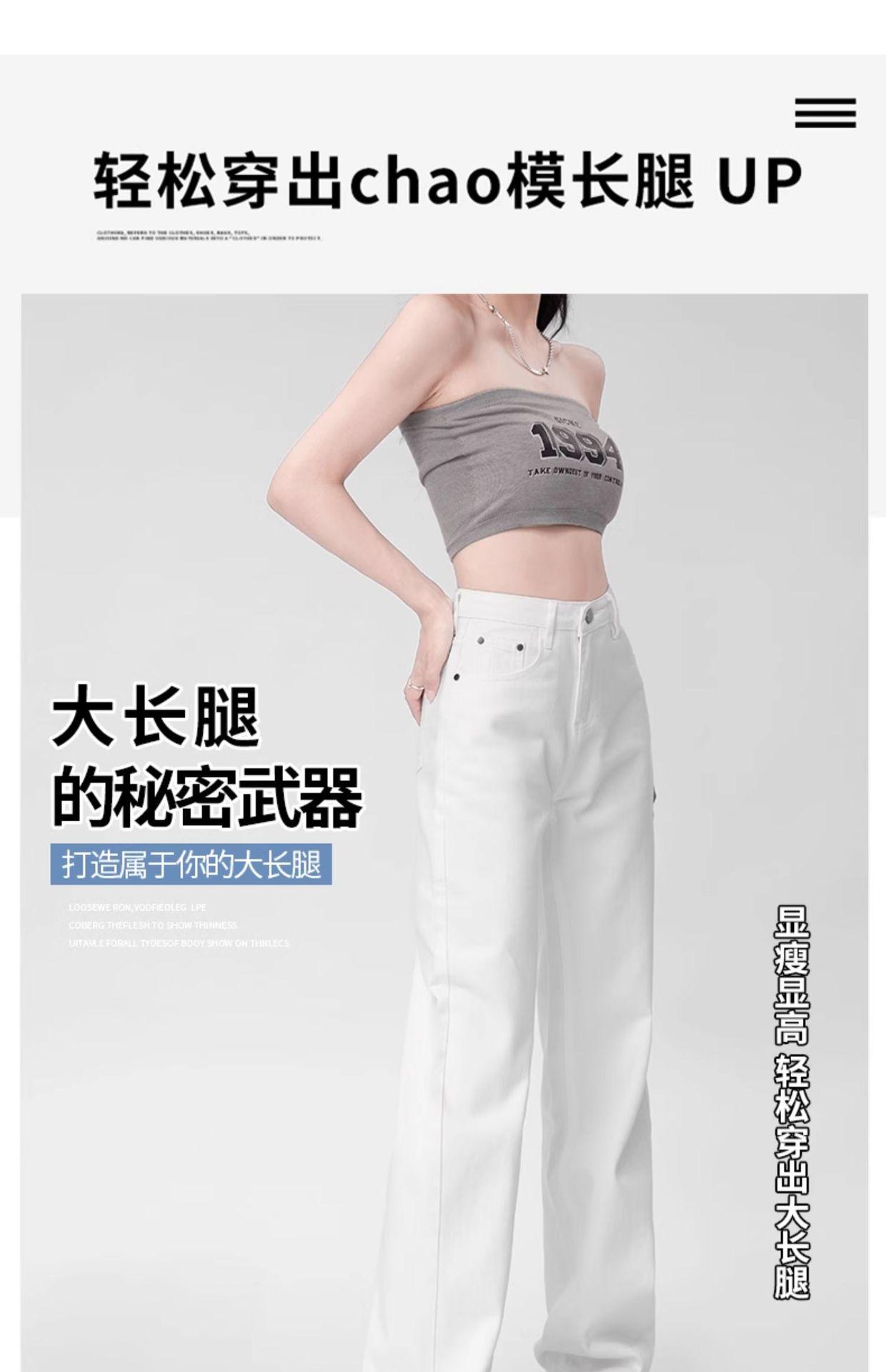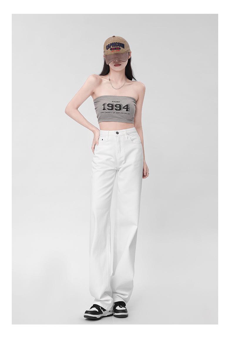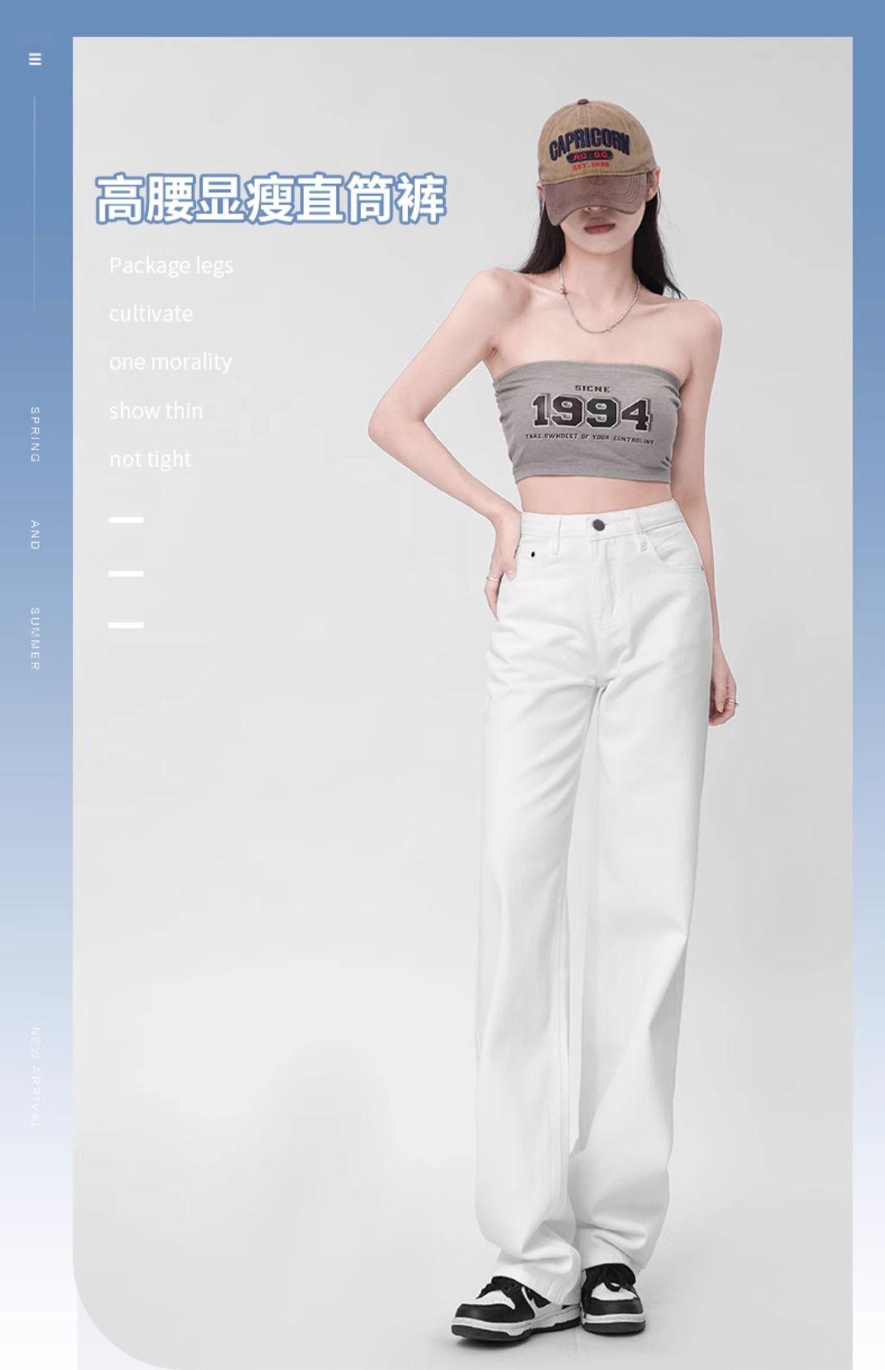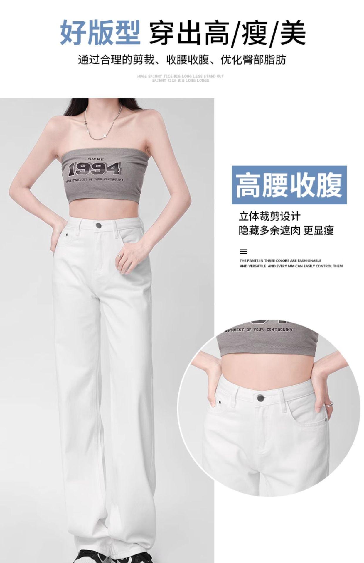 Pantalones vaqueros blancos rectos de versión estrecha para mujer, primavera y otoño 2024, cintura alta, aspecto pequeño y ajustado, pierna ancha y con aberturas.