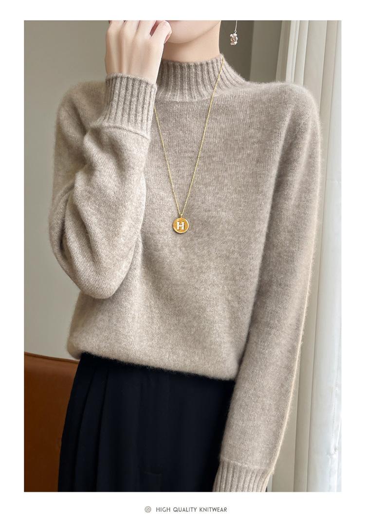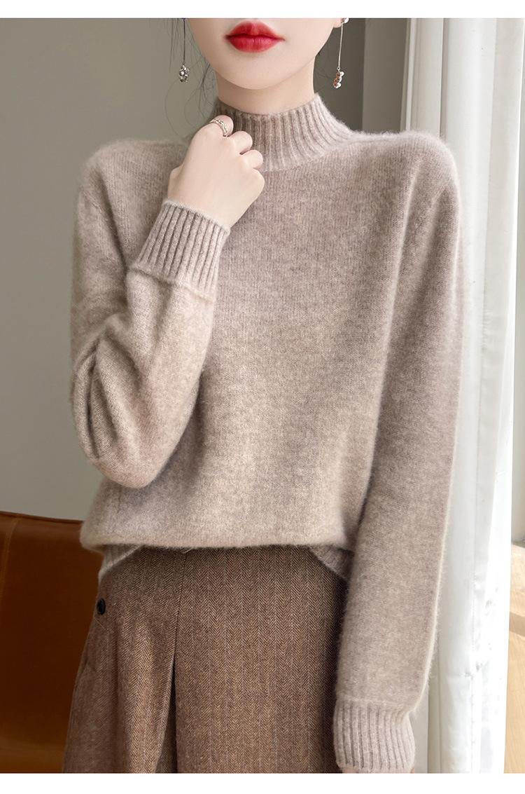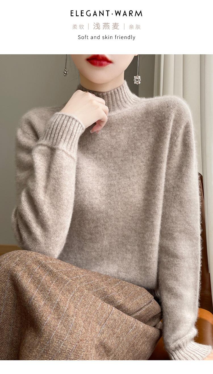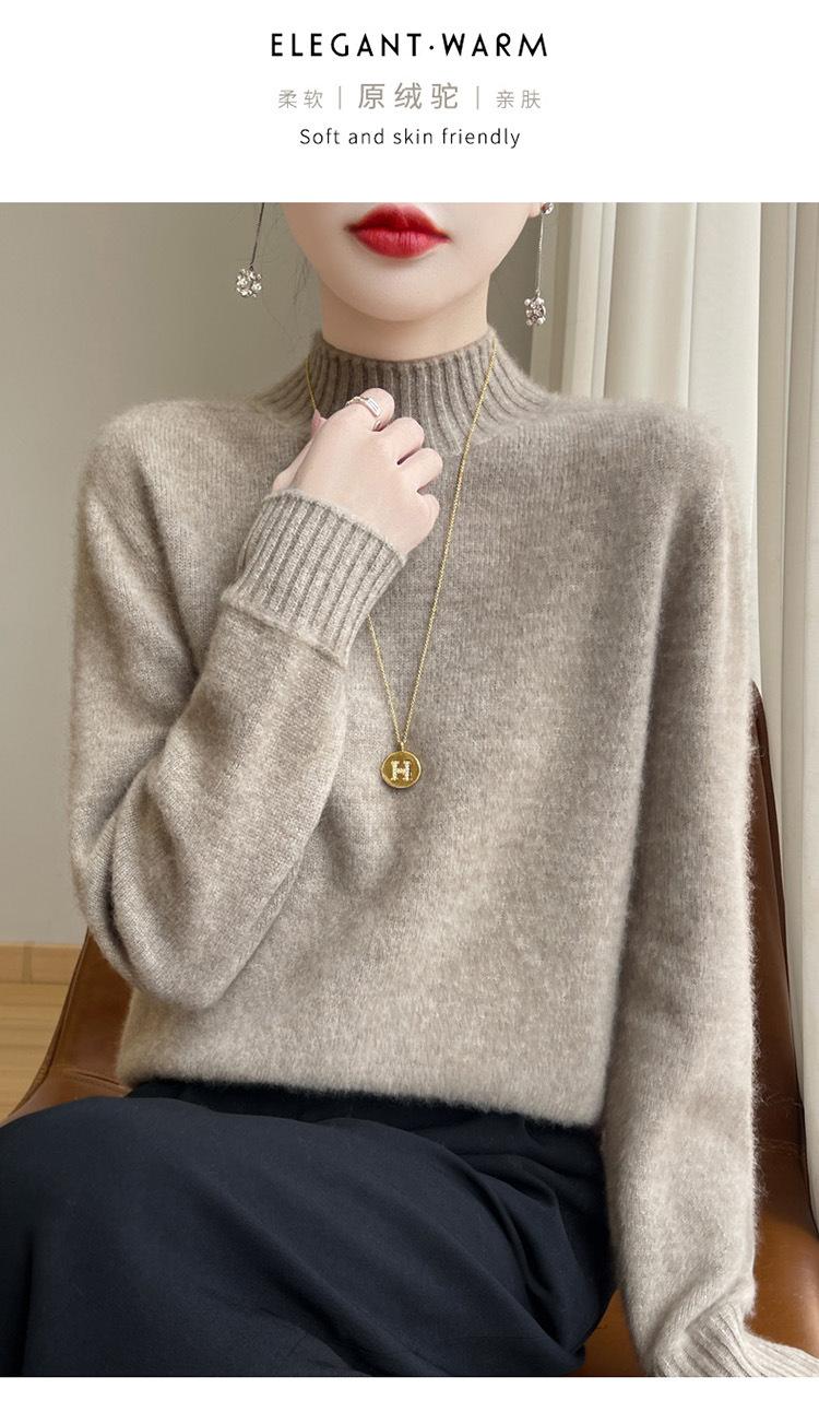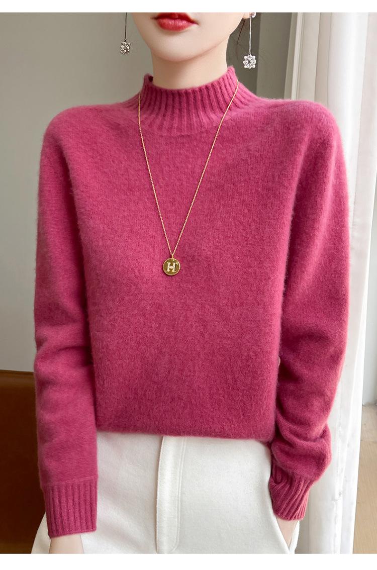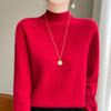 Nuevo Suéter Grueso Rojo de Cuello Medio Alto para Mujer Otoño e Invierno Top Básico de Punto Holgado