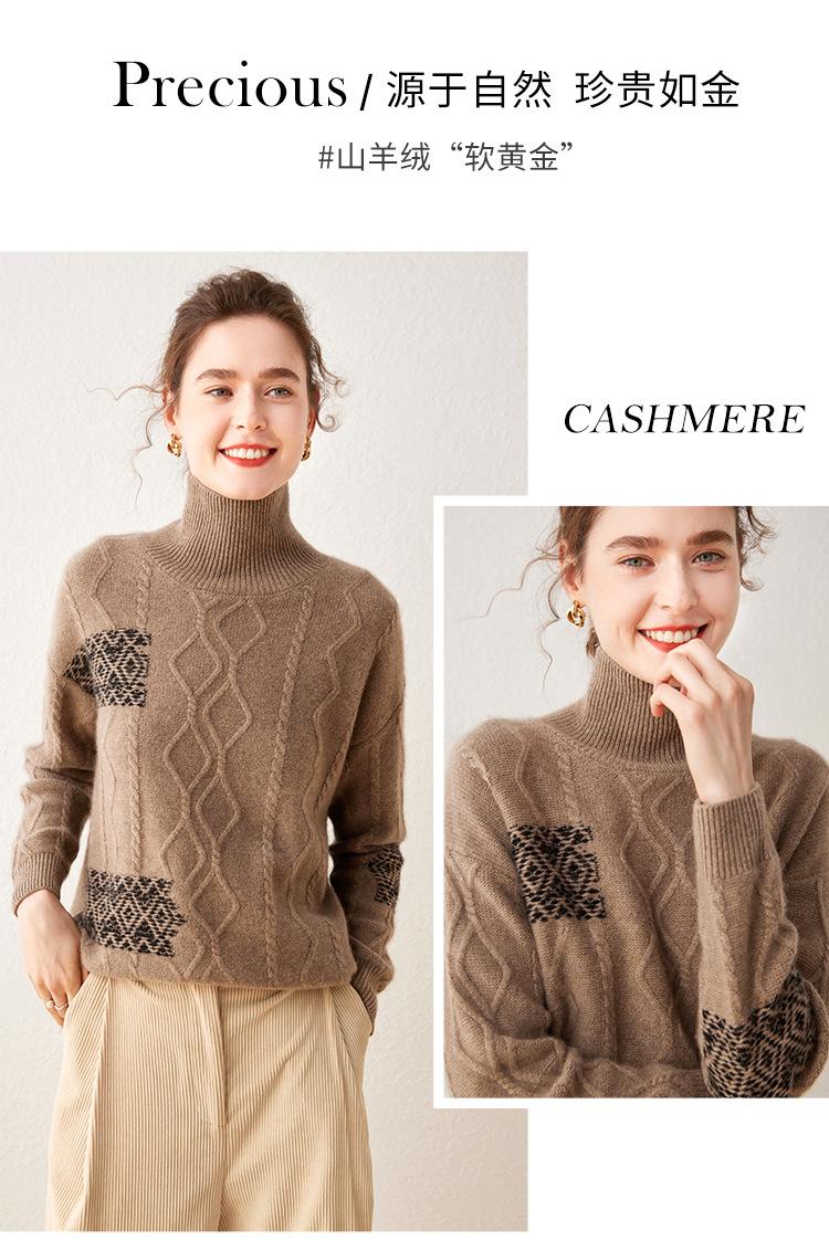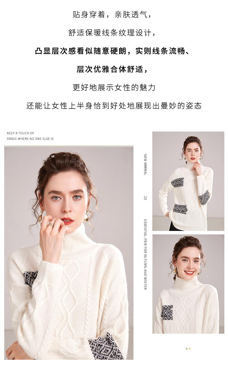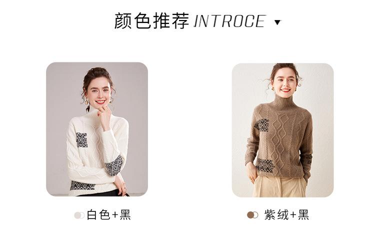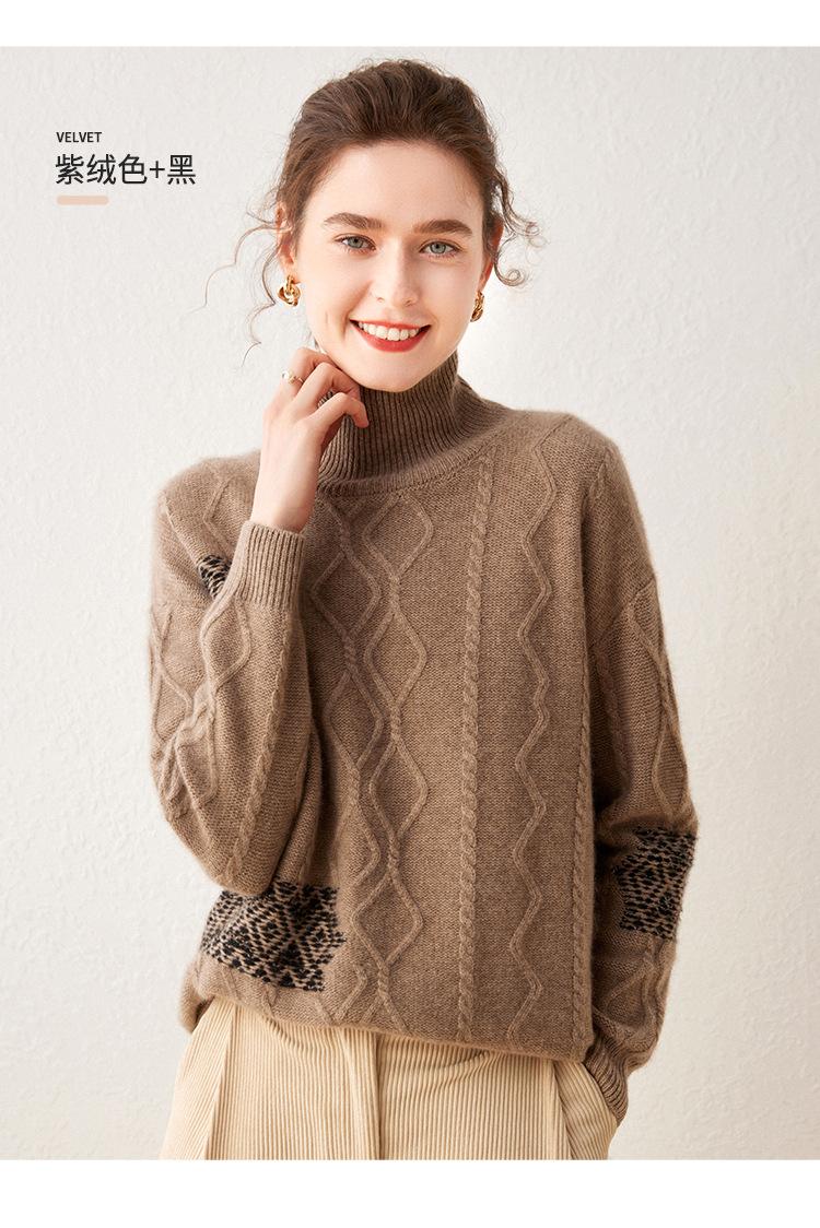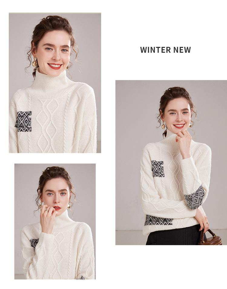 Otoño e Invierno Nuevo Suéter de Cachemira de Cuello Alto para Mujer Suéter de Moda de Cachemira Suelto Estilo Lazy Espesado Combinación de Colores Camisa Básica