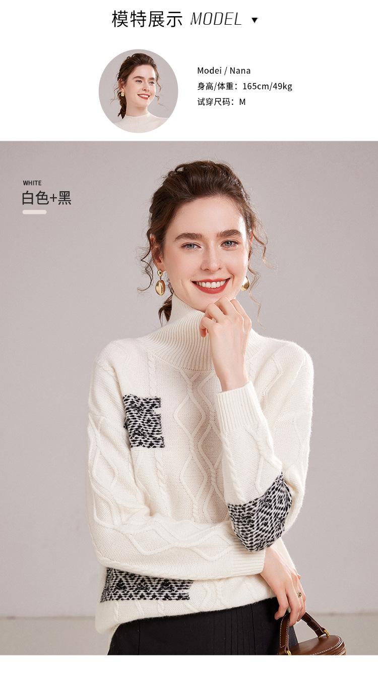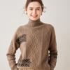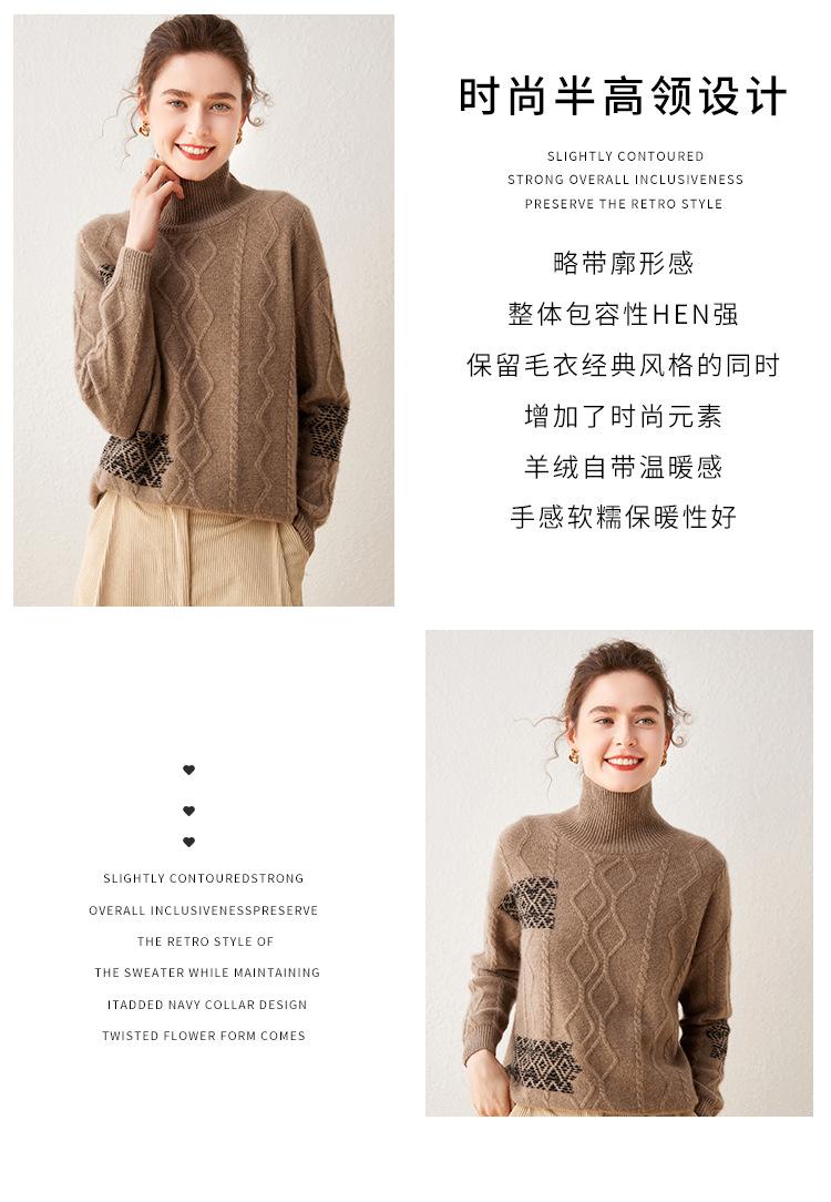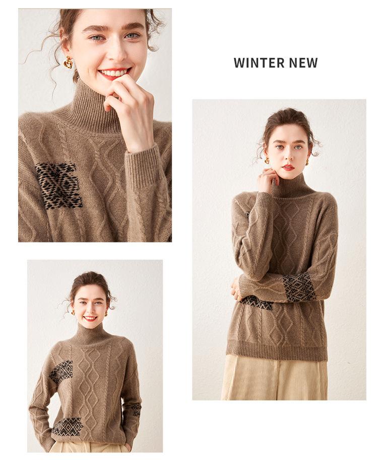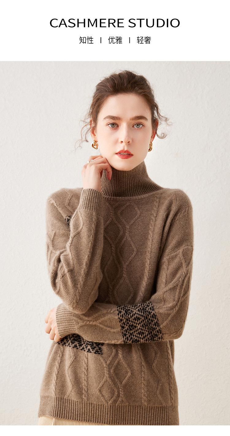 Otoño e Invierno Nuevo Suéter de Cachemira de Cuello Alto para Mujer Suéter de Moda de Cachemira Suelto Estilo Lazy Espesado Combinación de Colores Camisa Básica