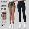 Pantalones de Tiburón Cepillados para Mujer Otoño e Invierno Cintura Alta Control de Abdomen Levantamiento de Glúteos Pantalones de Yoga Más Terciopelo Gruesos Elásticos Cálidos Leggings para Ropa Exterior