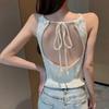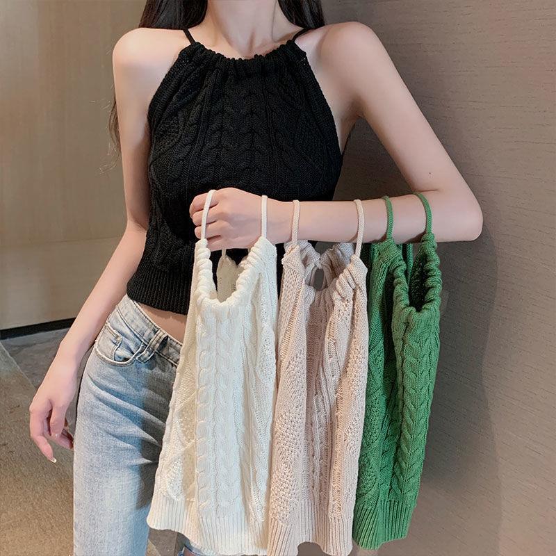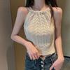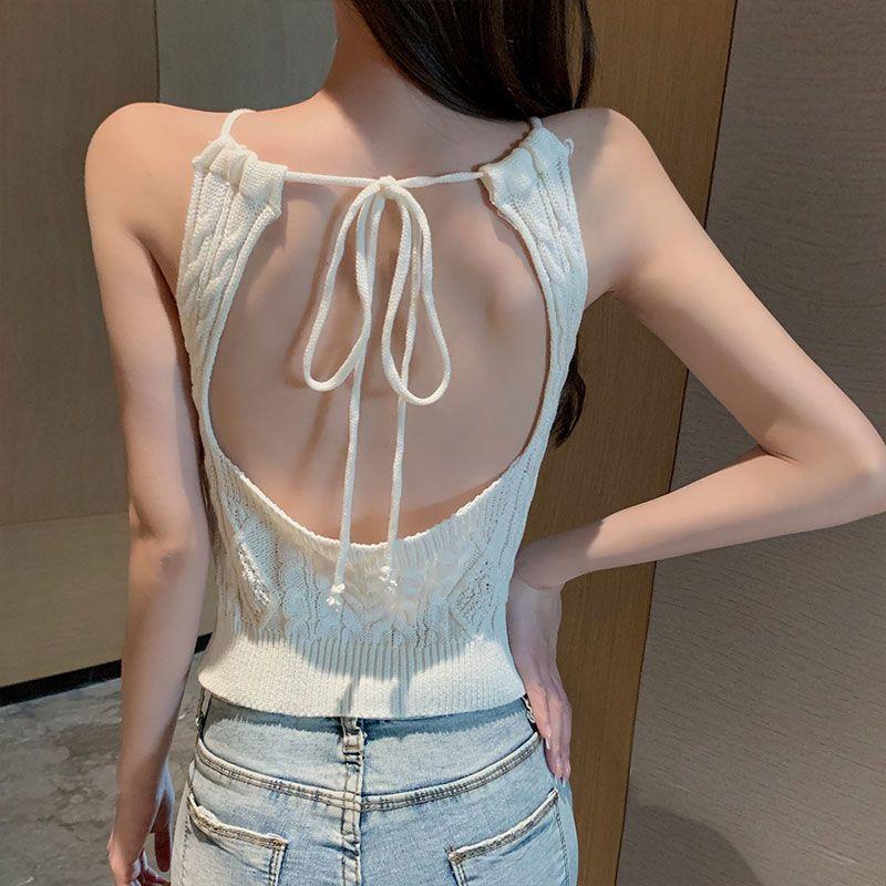 Camisola para mujer, verano 2023, estilo coreano, de punto, sin mangas, antideslizante, para uso exterior, con una bonita base en la espalda.