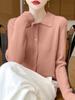 Otoño e Invierno Nuevo Solapa Hilo Estilo Coreano Commuter Exterior Chaqueta de Lana Tejida Combinable Suéter de Lana con Doble Cremallera para Mujer