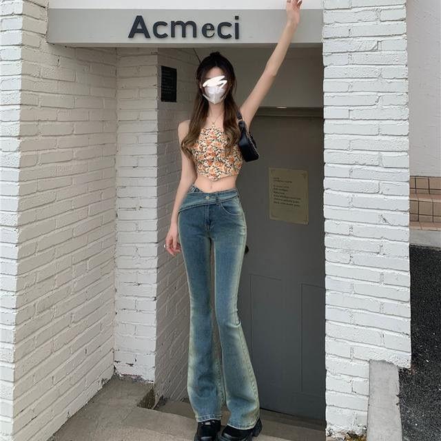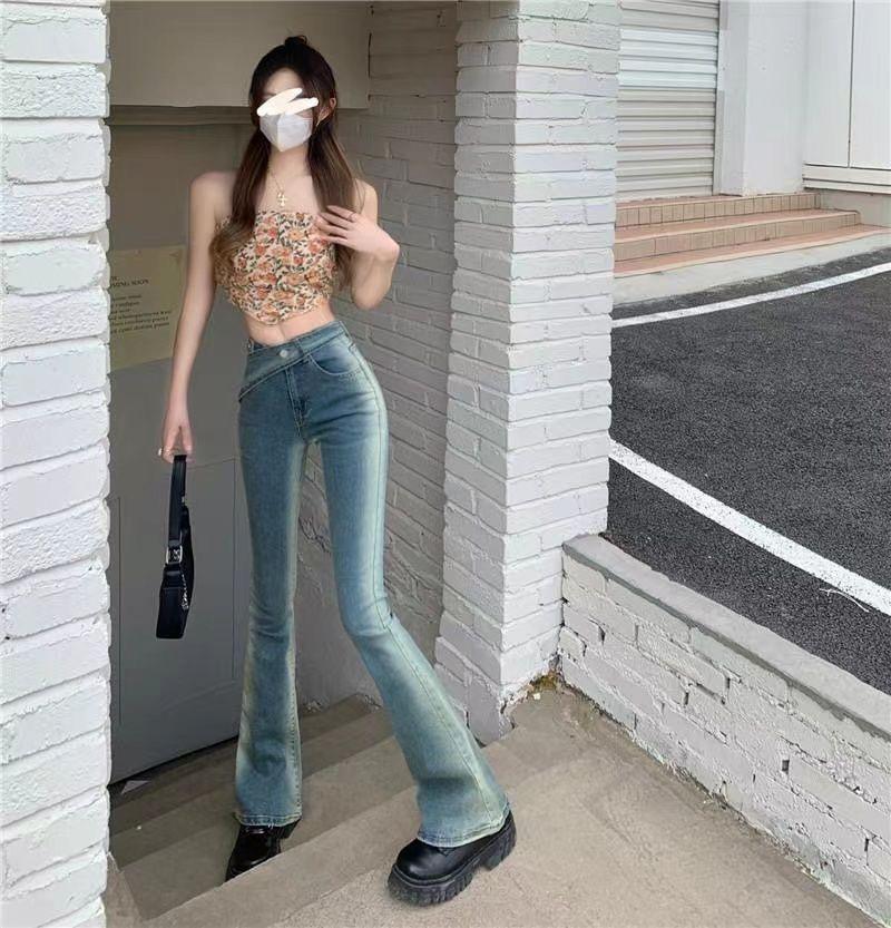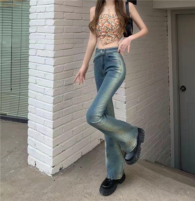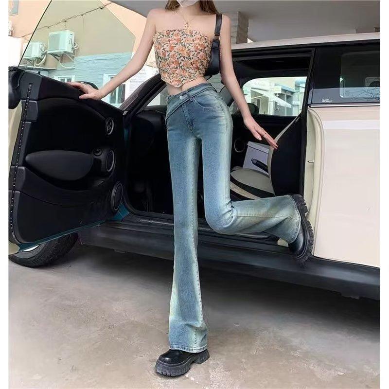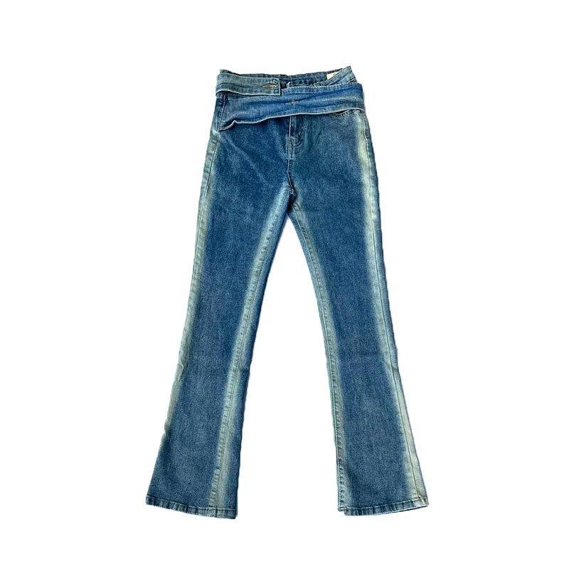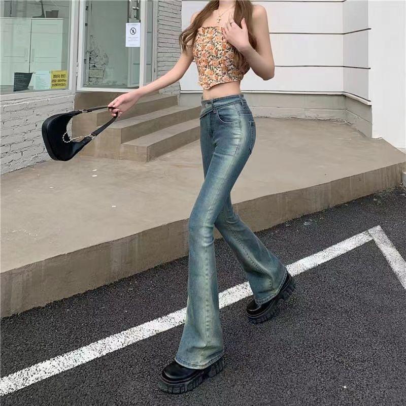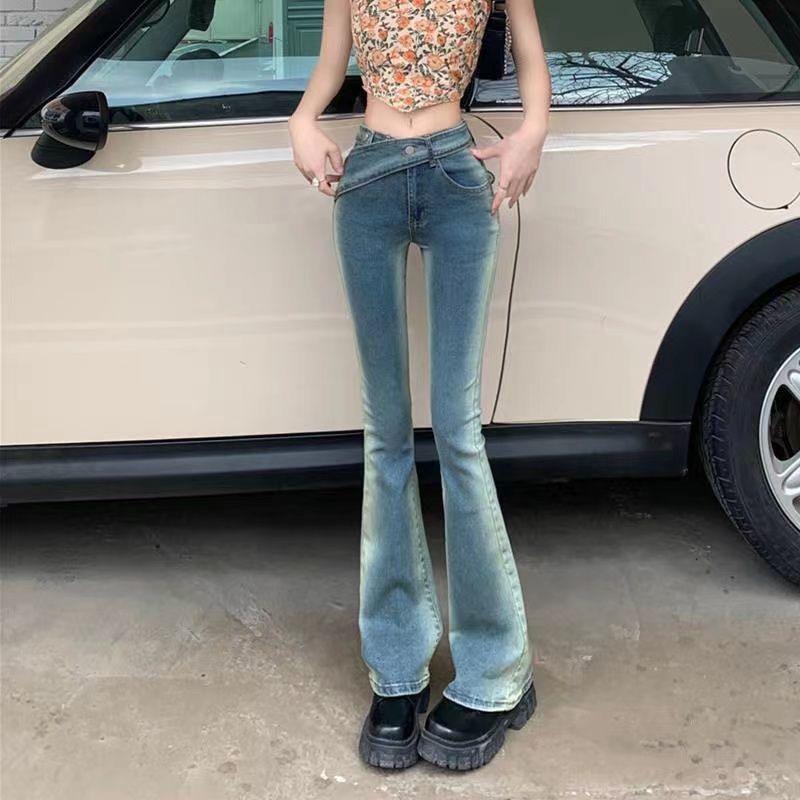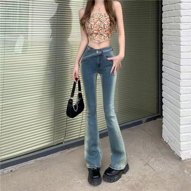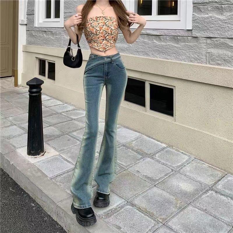 Pantalones vaqueros Micro La de estilo americano con diseño de cintura con cinturón para mujer, pantalones de herradura ajustados y combinables, novedad de verano 2024.