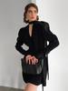 Elegante Vestido Negro Corto con Cordones Estilo Francés Entallado en la Cintura Primavera 2026 Vestido de Manga Abullonada con Cuello en V Estilo Hepburn Ropa de Mujer