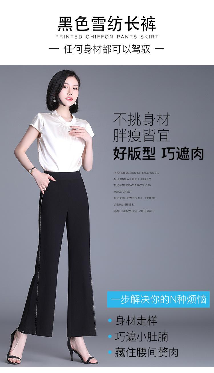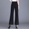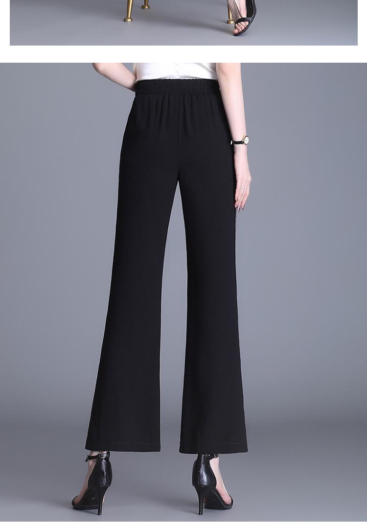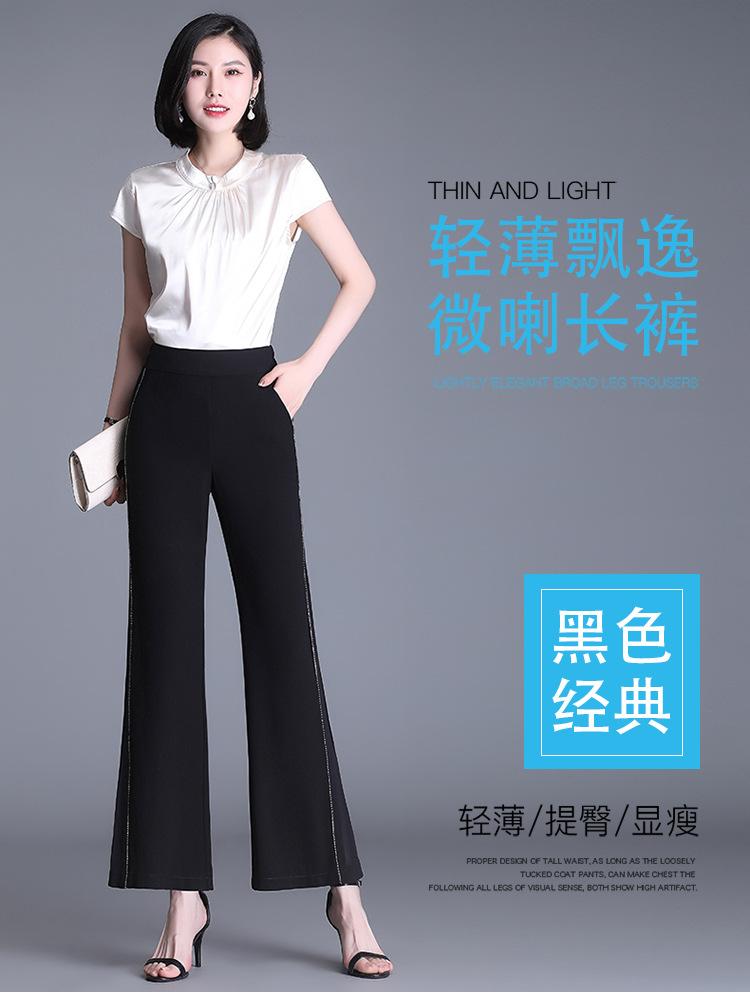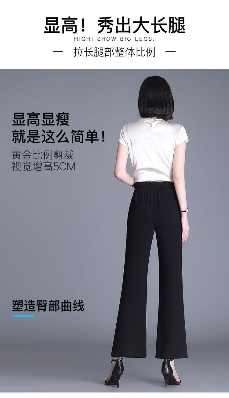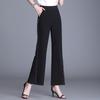 Pantalones de tiro alto y corte acampanado para mujer, finos de verano, nuevos pantalones anchos de gasa de seda helada 2023, pantalones negros de aspecto adelgazante con un elegante diseño.