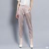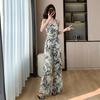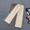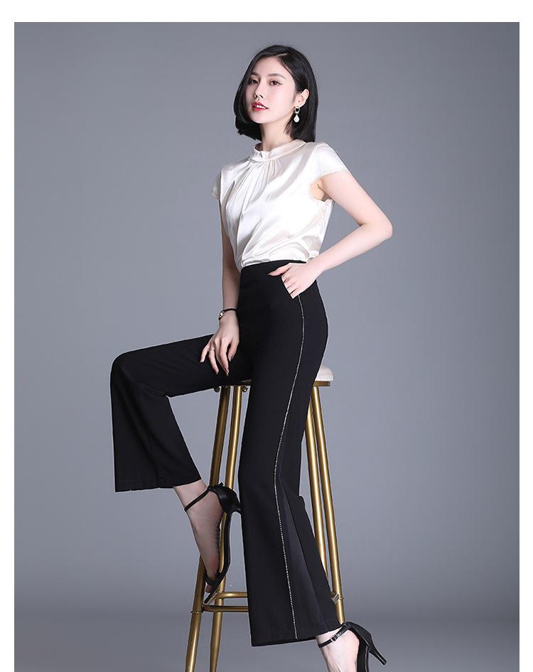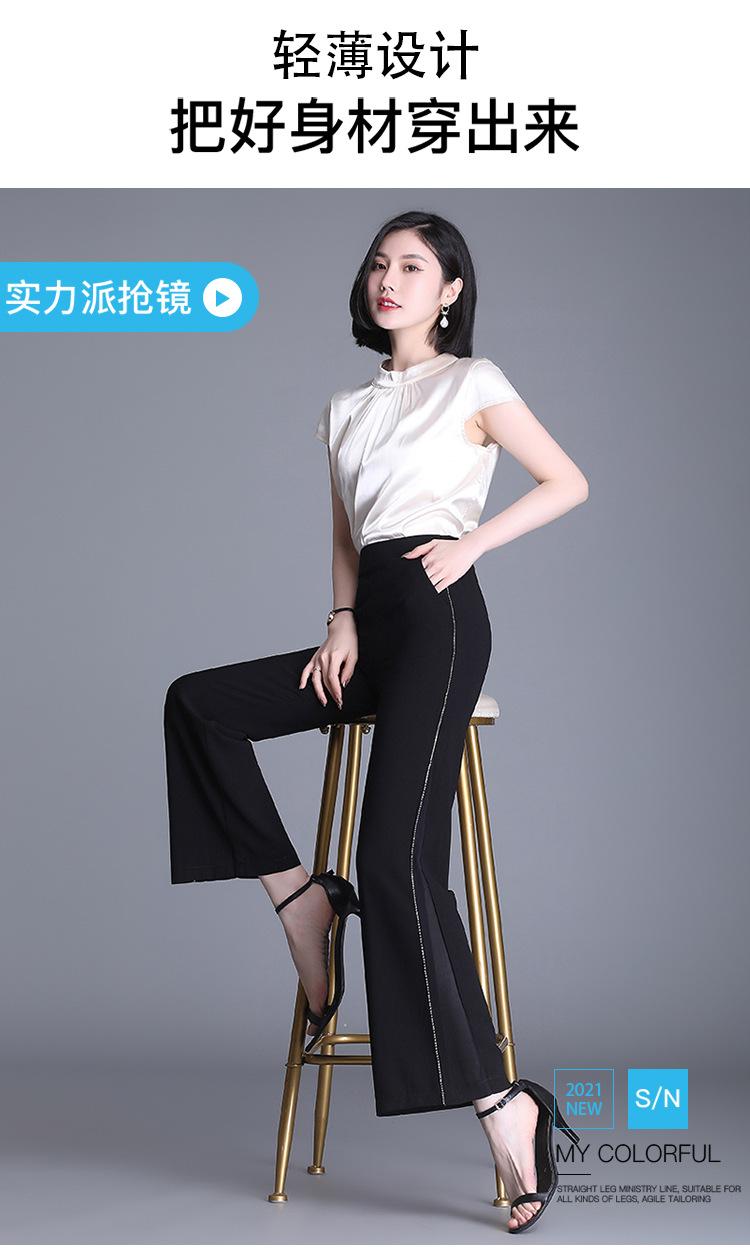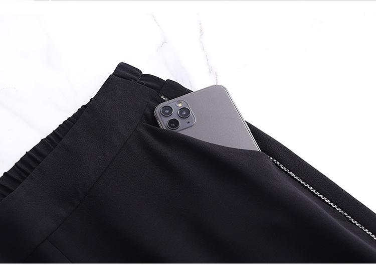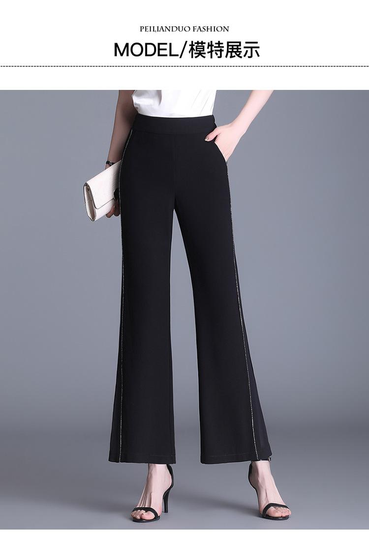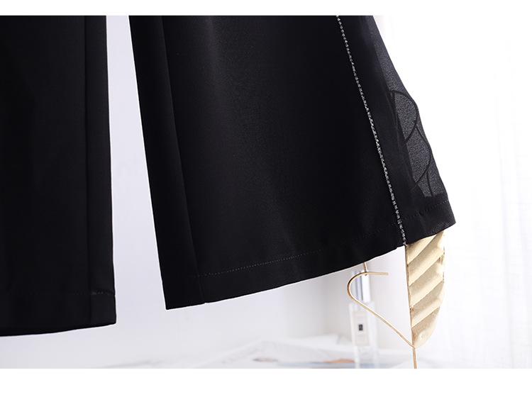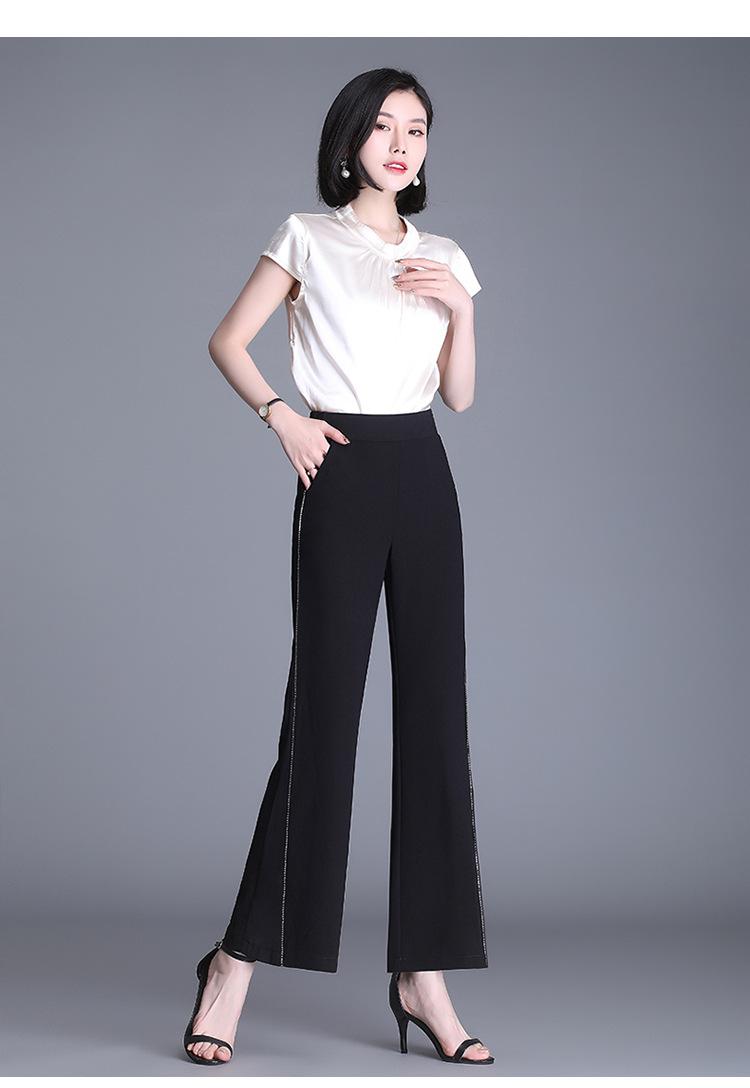 Pantalones de tiro alto y corte acampanado para mujer, finos de verano, nuevos pantalones anchos de gasa de seda helada 2023, pantalones negros de aspecto adelgazante con un elegante diseño.