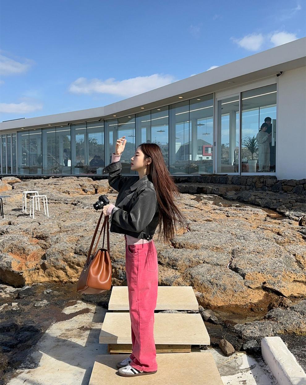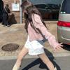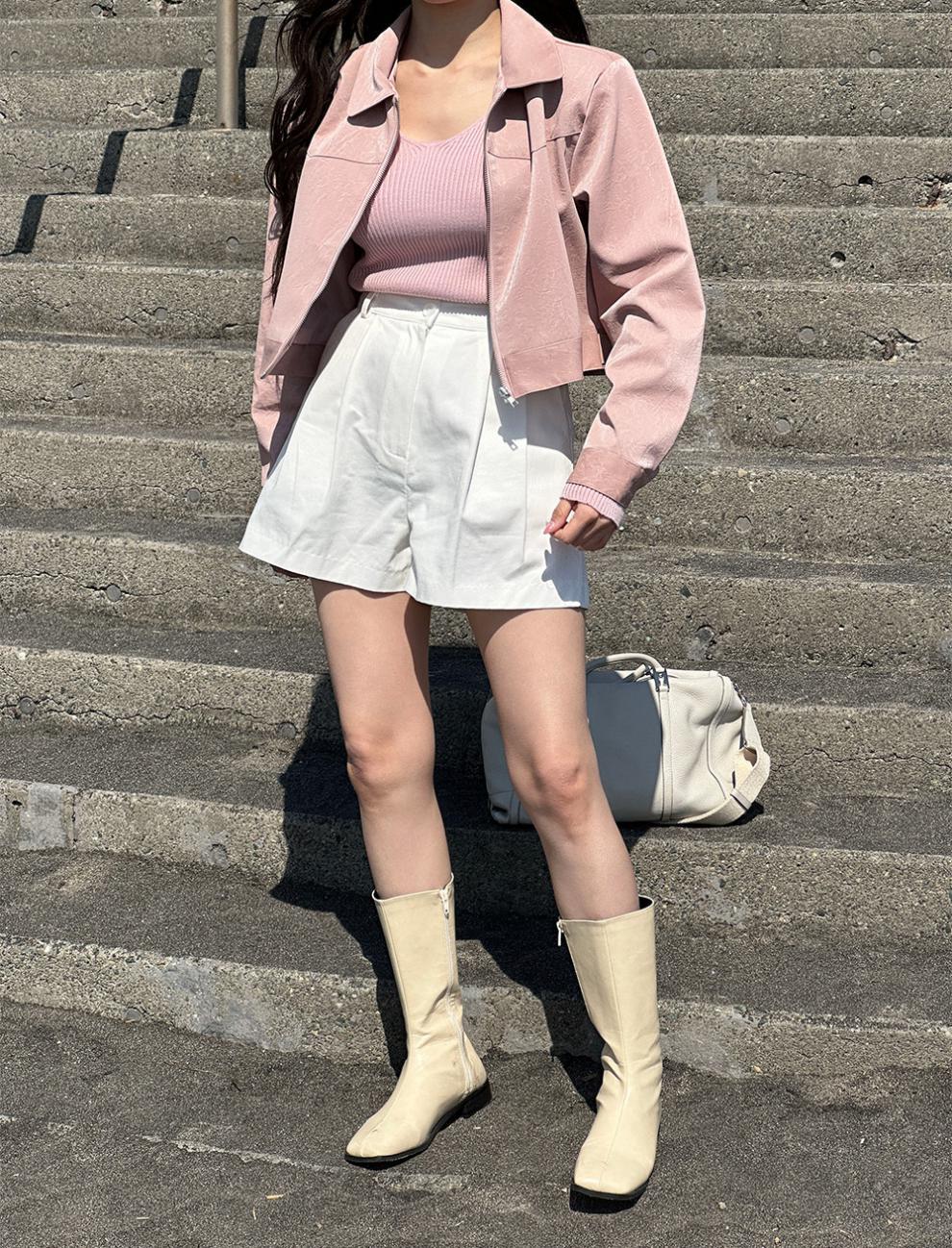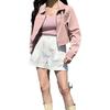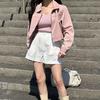Chaqueta de cuero para mujer Corea del Sur Dongdaemun INS dulce rosa claro solapa cuero manga larga cremallera chaqueta abrigo corto