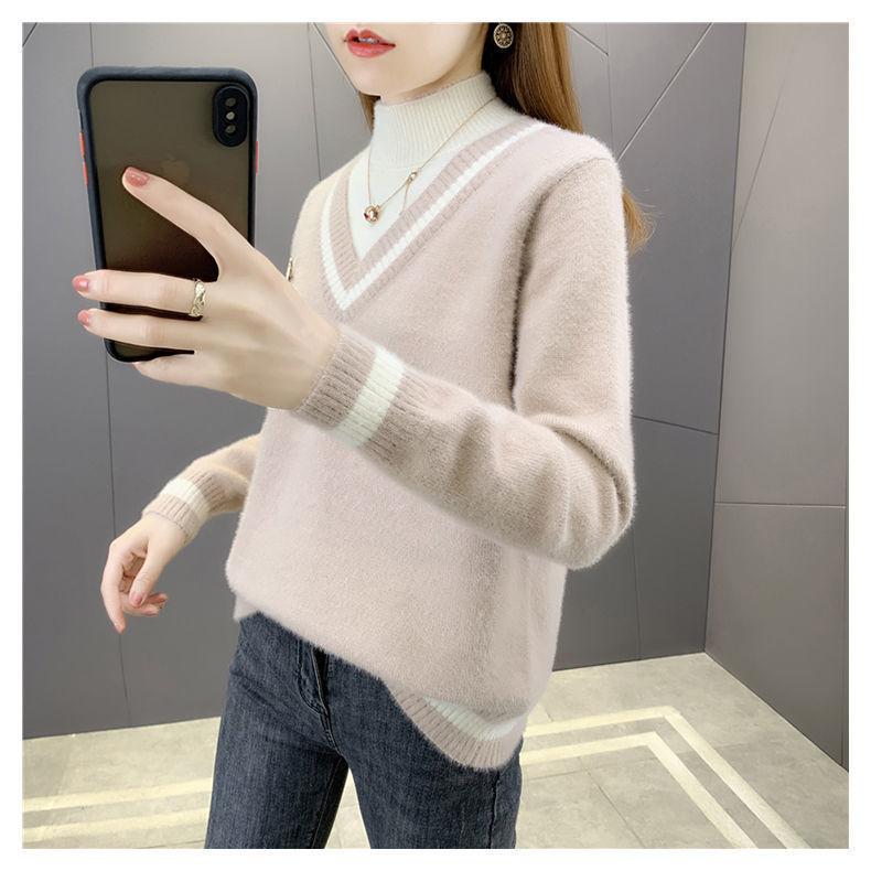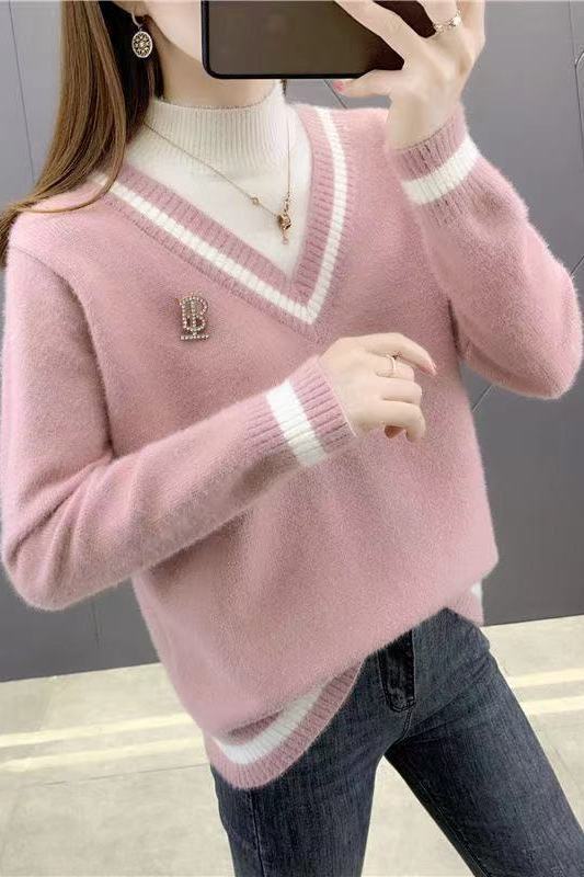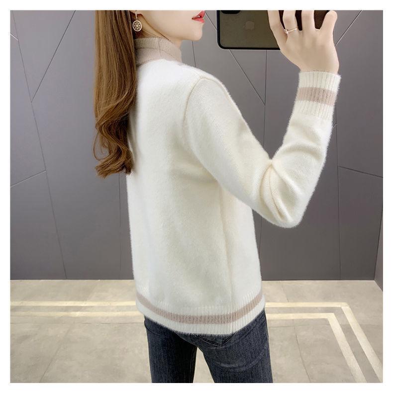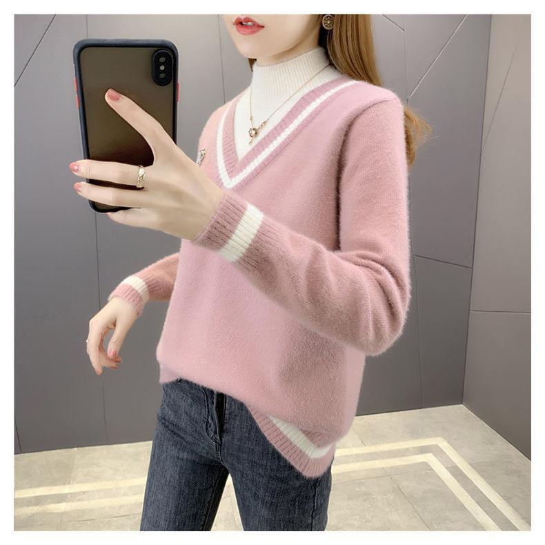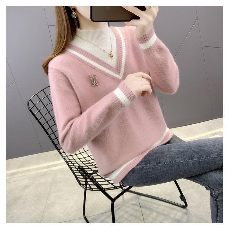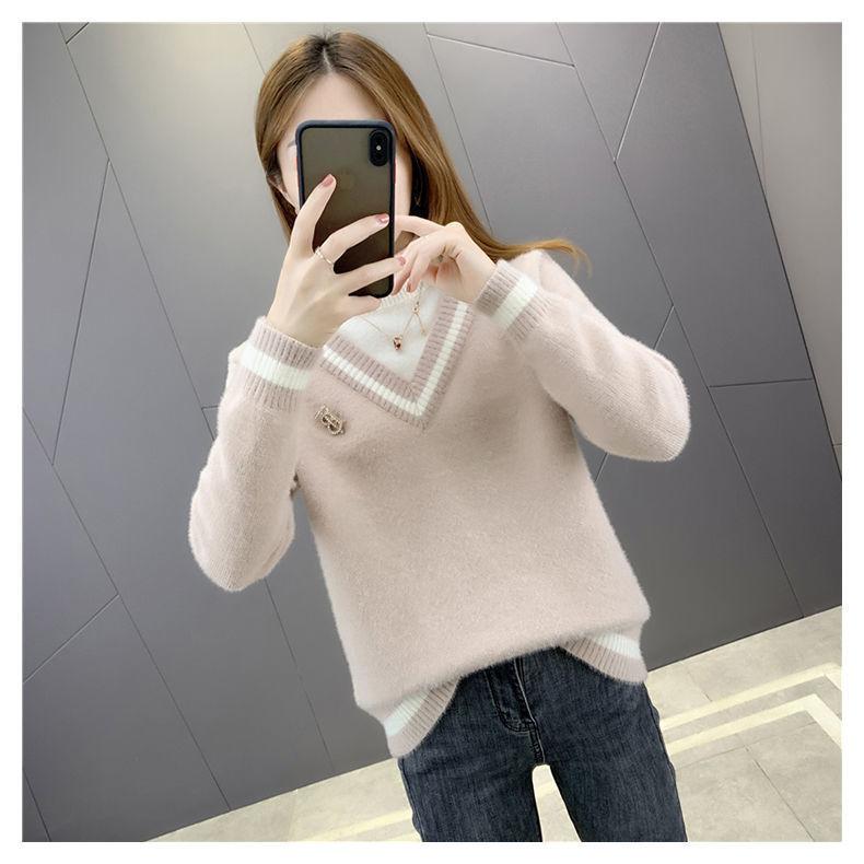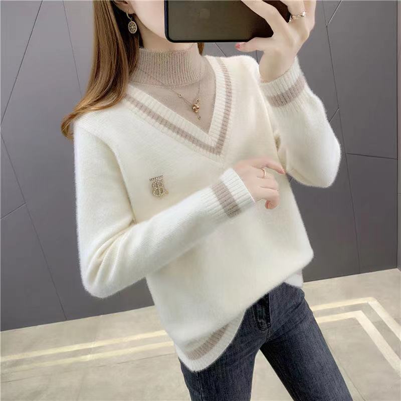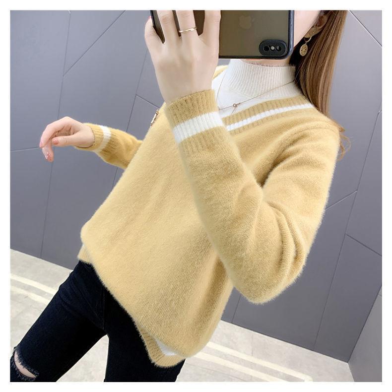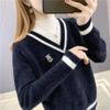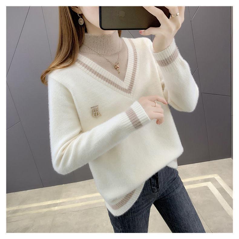 Suéter regular de terciopelo de visón sintético blanco para mujer, engrosado, nuevo, holgado, para exterior, otoño e invierno, camisa básica para mujer, estilo occidental que combina con todo