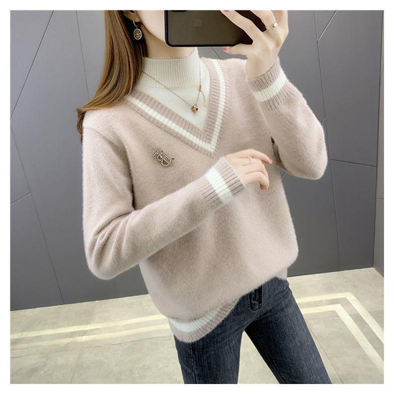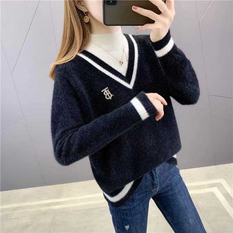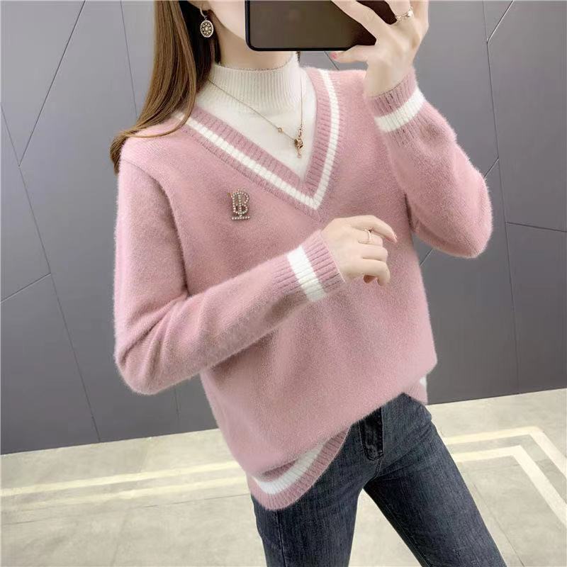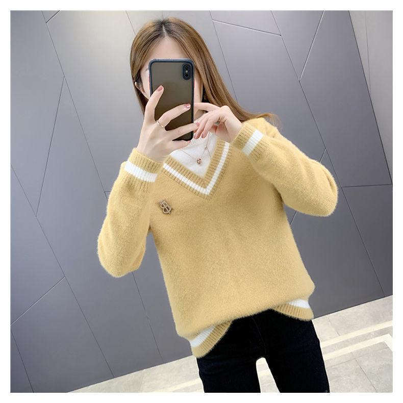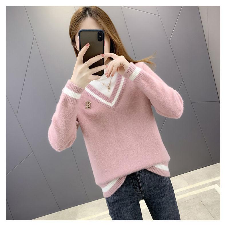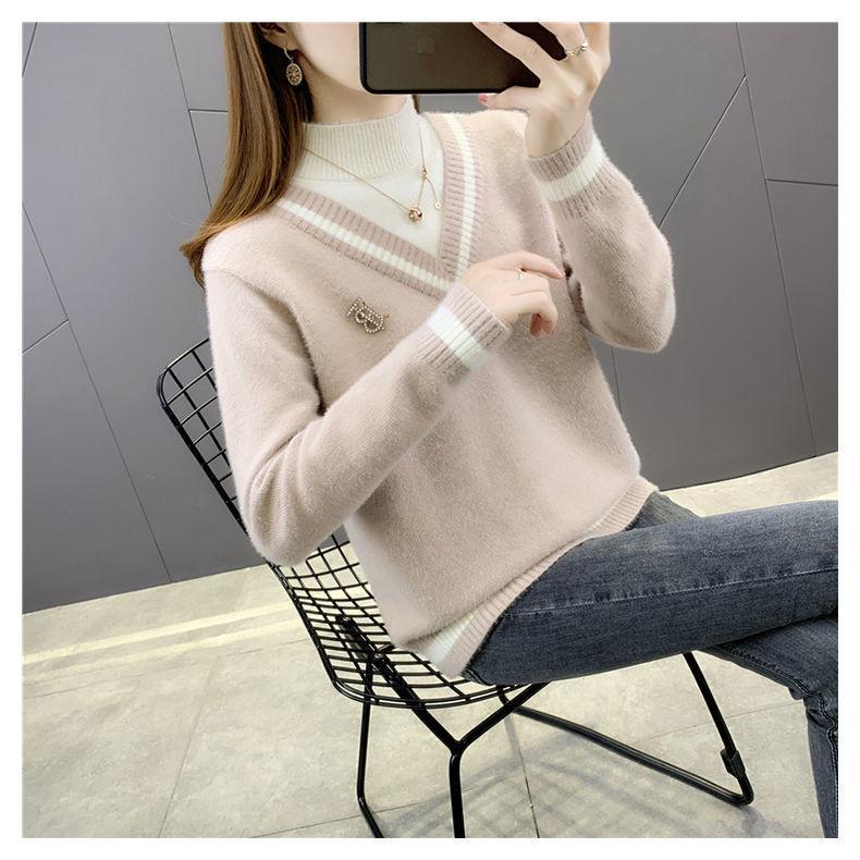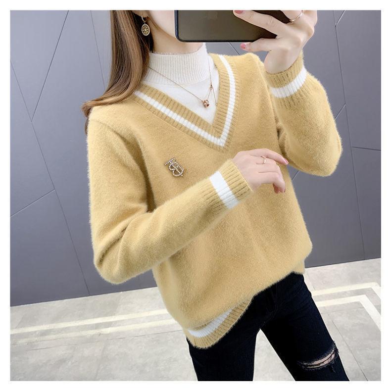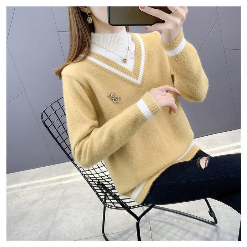 Suéter regular de terciopelo de visón sintético blanco para mujer, engrosado, nuevo, holgado, para exterior, otoño e invierno, camisa básica para mujer, estilo occidental que combina con todo