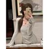 Camiseta de mujer de cintura alta con cuello de una palabra, diseño ajustado y sexy, nueva camiseta de manga larga de color liso de nicho para otoño e invierno 2024
