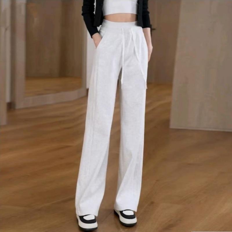 Pantalones deportivos casuales de pierna recta, pantalones anchos tipo banana para mujer, primavera y otoño 2024, pantalones deportivos estrechos de cintura alta y finos.