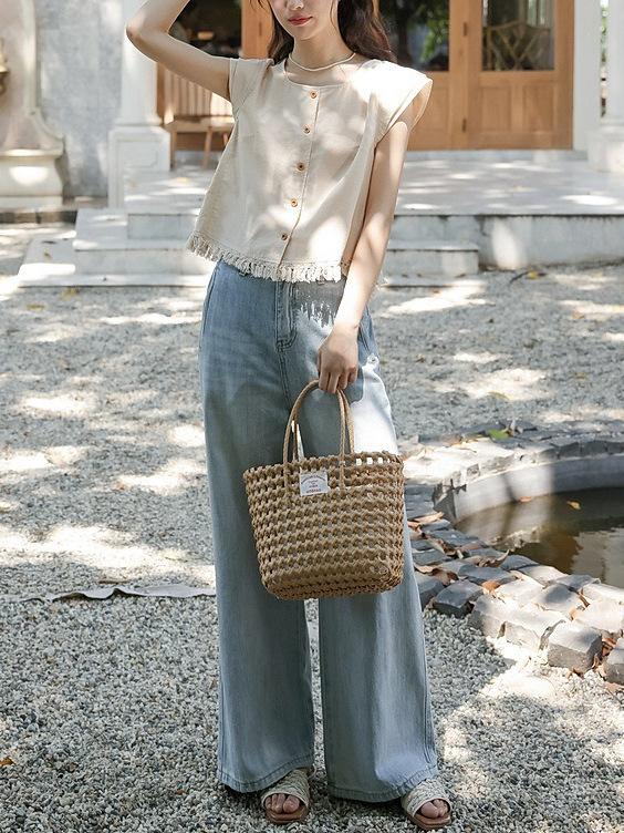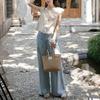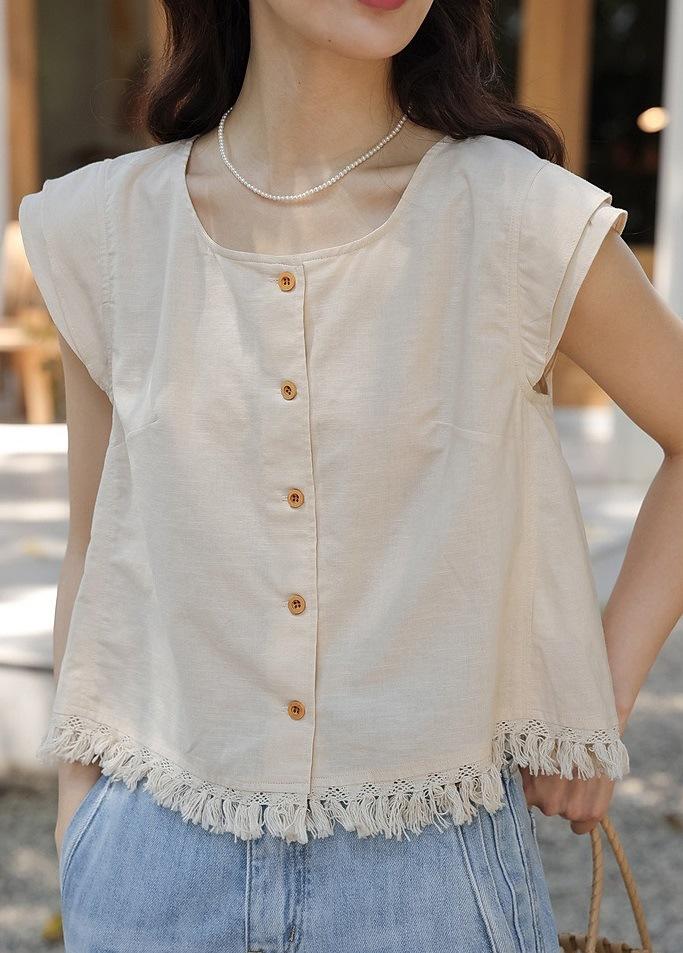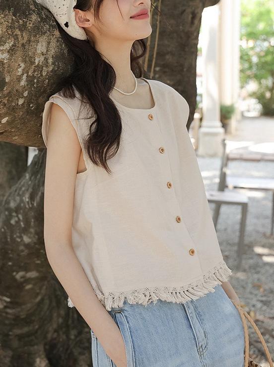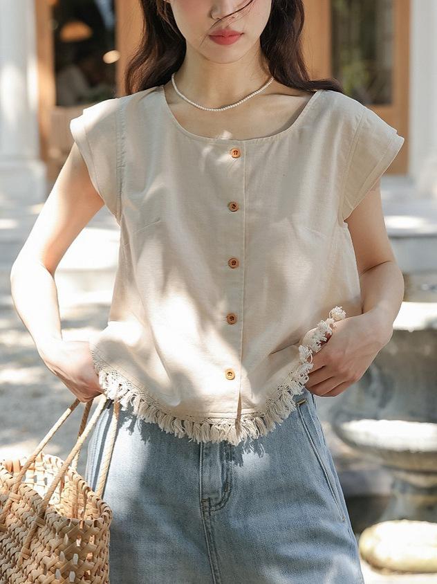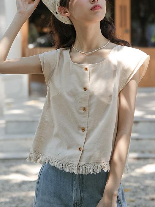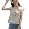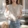 Tyrande Verano/Flecos Dobladillo Camiseta Top de Manga Corta con Vuelo Pequeño para Mujer Top Halter Sin Mangas