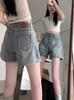 Pantalones cortos vaqueros de cintura alta para mujer, diseño holgado, ajustados, con forma de A, de pierna ancha, 2024