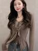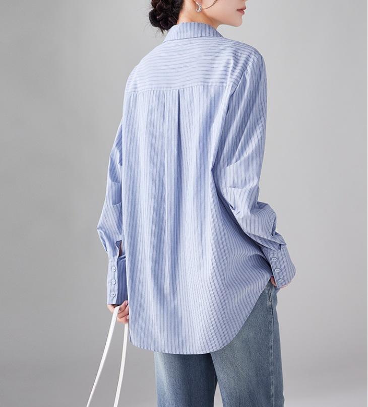 Camisa de rayas de manga larga para mujer, nueva moda de otoño de 2024, estilo occidental, diseño ajustado