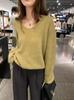 Camisa básica de manga larga informal, suave y sencilla, de lana pura, holgada, con cuello en V, para mujer, estilo coreano, a la moda, de principios de otoño