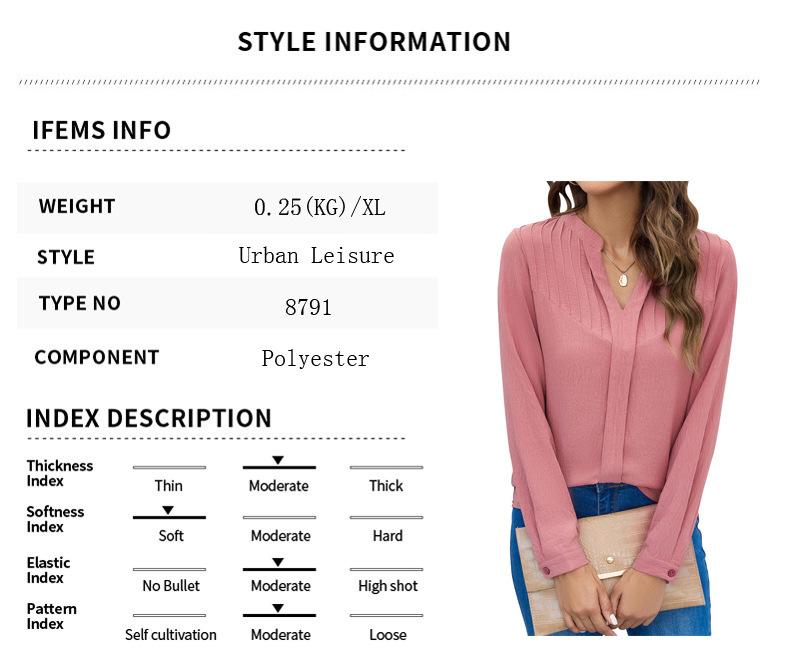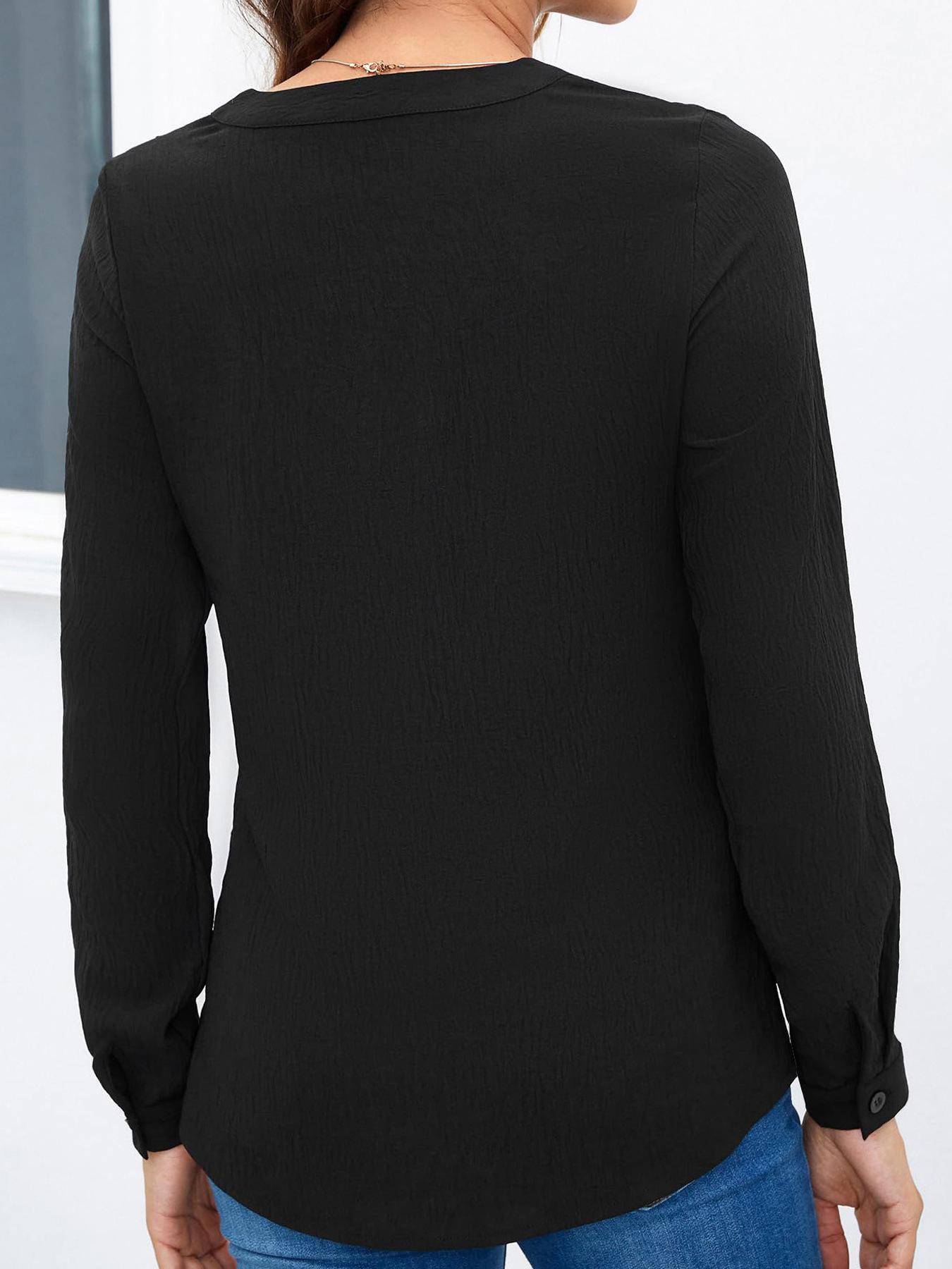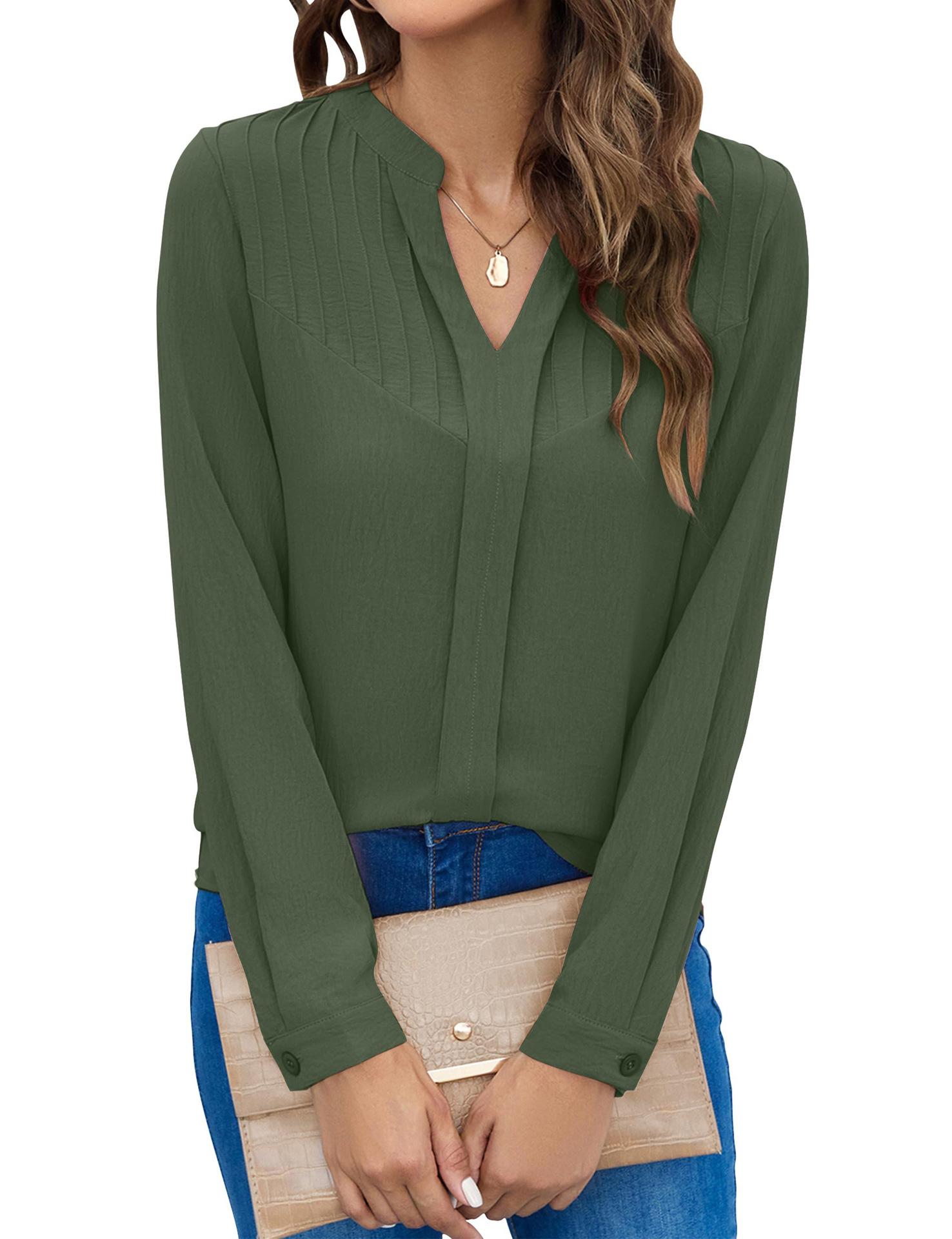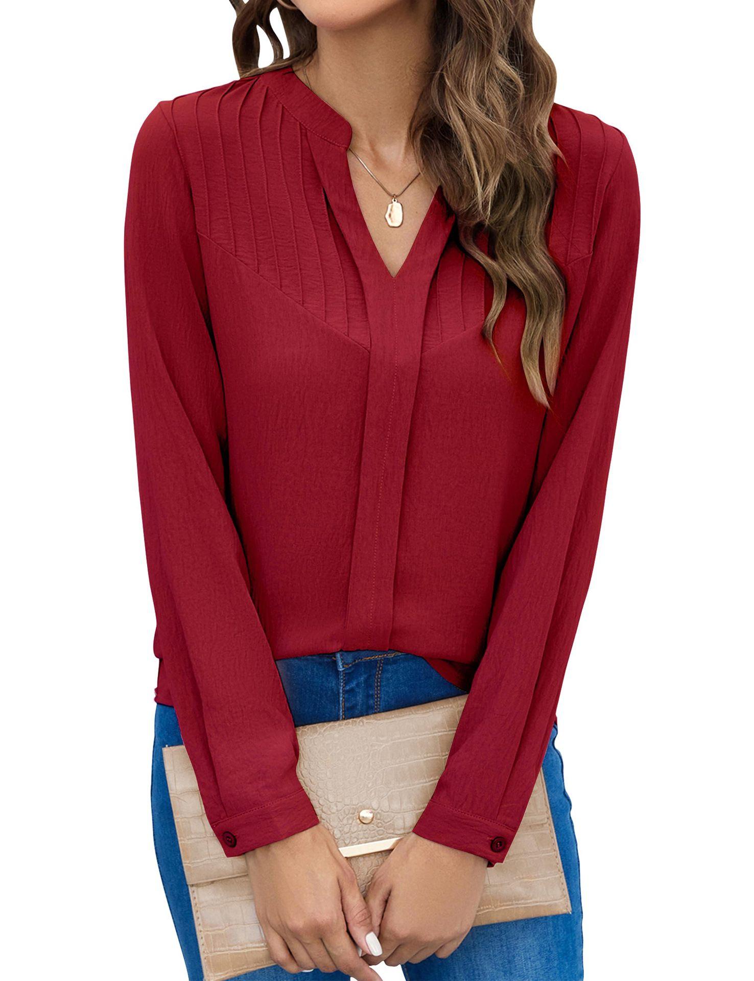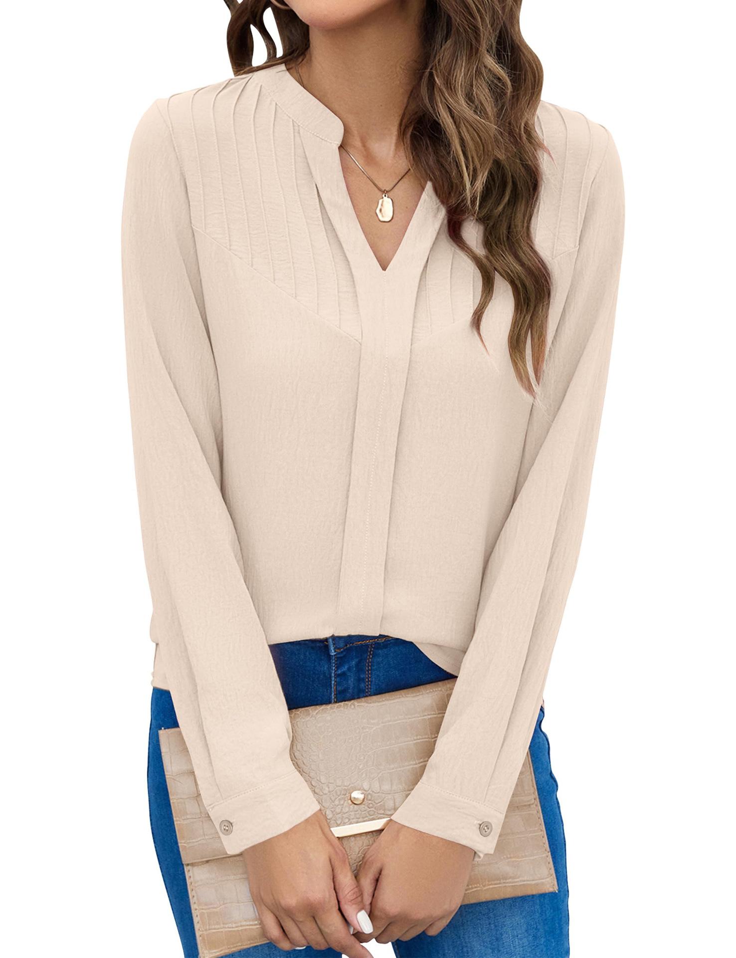 Ropa de Mujer de Exportación Europea y Americana 2024 Amazon Nueva Camisa de Mujer de Manga Larga Cuello Mao Pequeño Cuello en V Plisada Top Casual