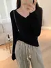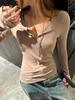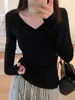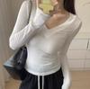 Playera de Manga Larga de Algodón Puro Estilo Coreano, Básica, Versátil, Adelgazante, Cuello en V, Hombro Regular, Corte Ajustado para Mujer, Adecuada para Superponer en Primavera y Otoño