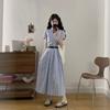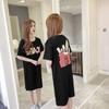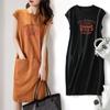 Vestido holgado informal con cordón ajustable, estilo coreano, verano 2024, estampado, manga corta, largo medio, falda dividida