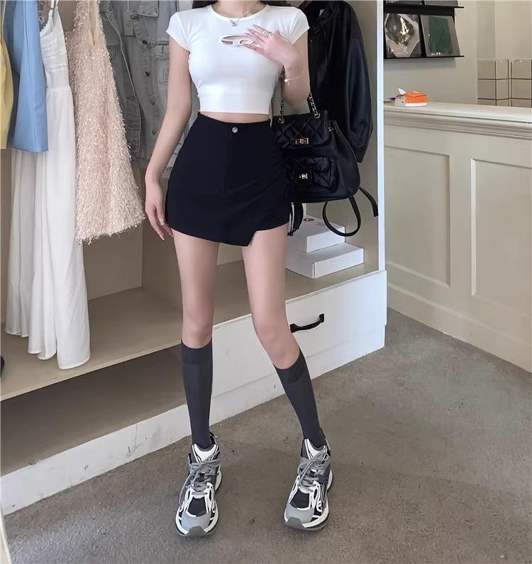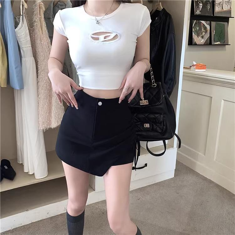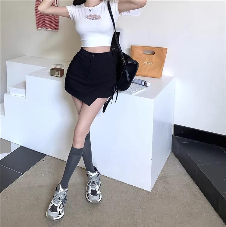 Falda Irregular Línea A con Cordón American Spice Girl 2024 Primavera Temprana Nueva Falda Corta de Cadera para Mujer
