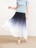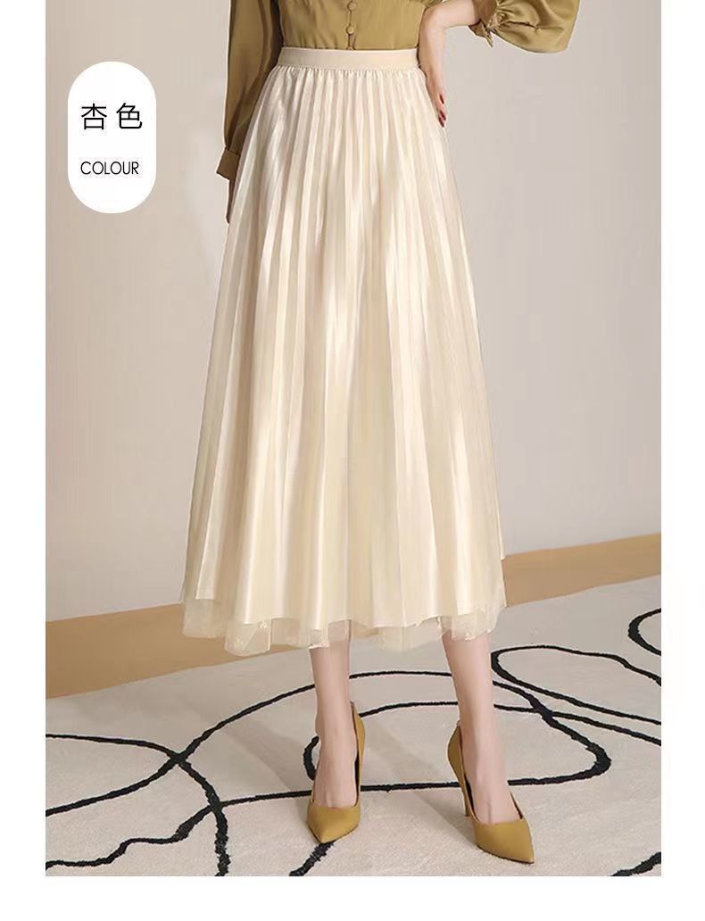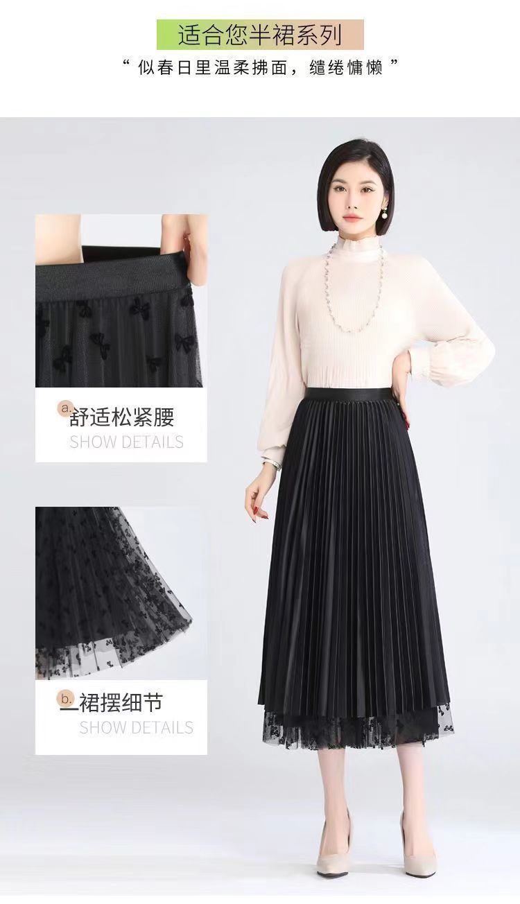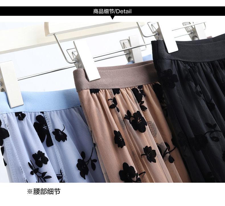 Falda de Malla Blanca para Mujer Verano Flocado Floral Falda Grande de Alta Gama Plisada de Doble Cara Forma A Drapeada Falda Midi