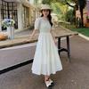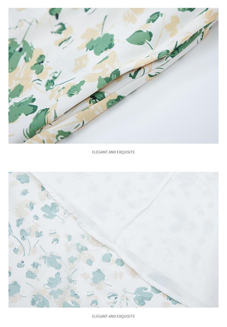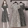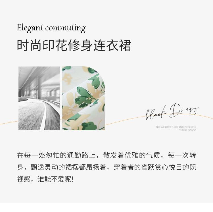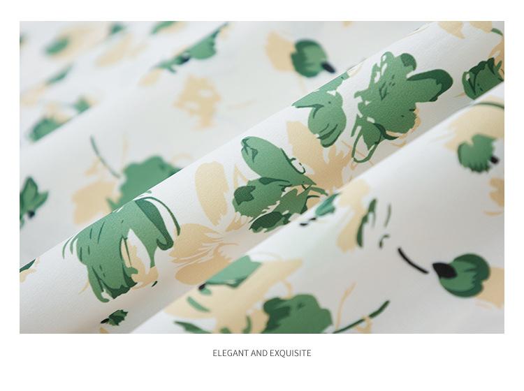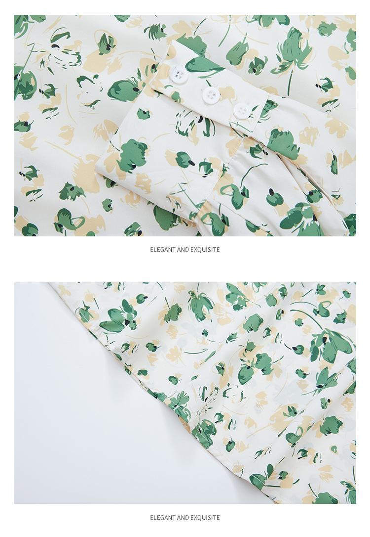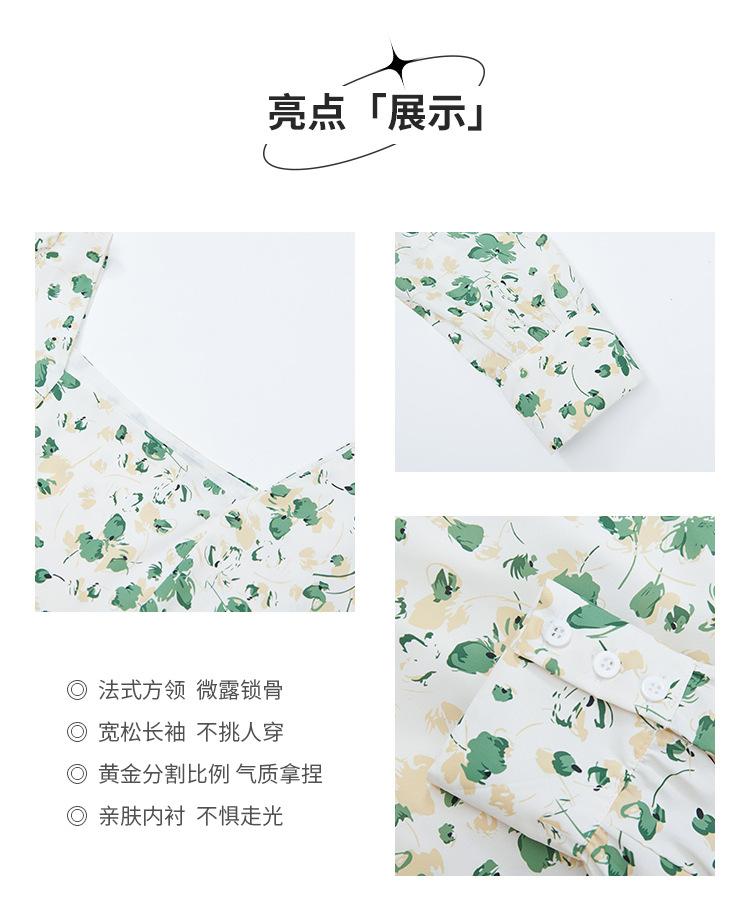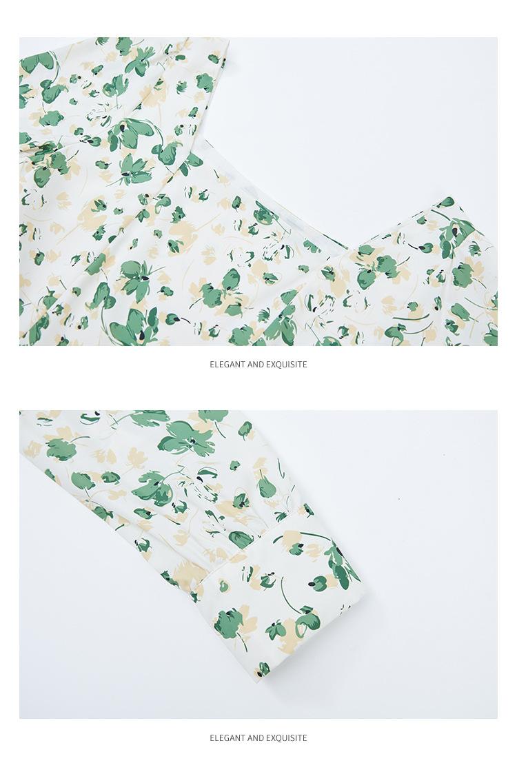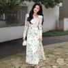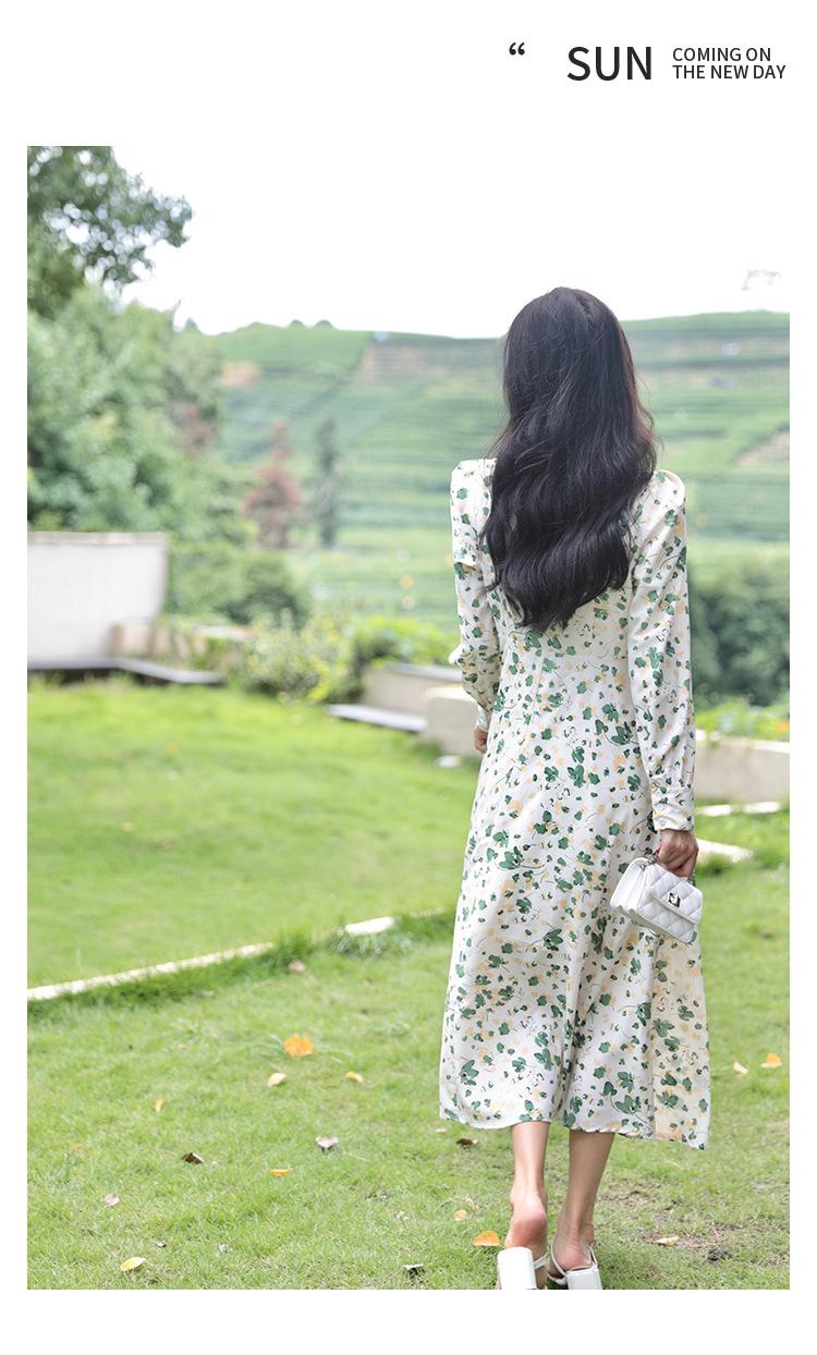 Vestido floral verde para mujer, otoño 2024, nuevo estilo coreano, elegante, cuello cuadrado, cintura adelgazante, manga larga, falda de línea A