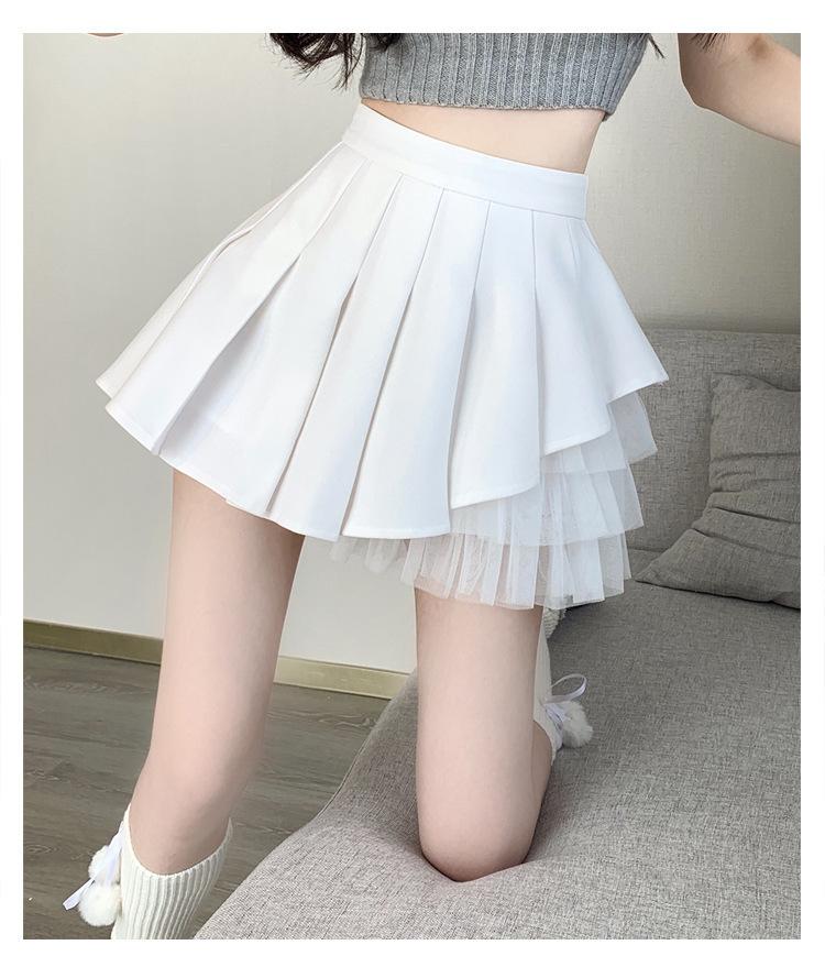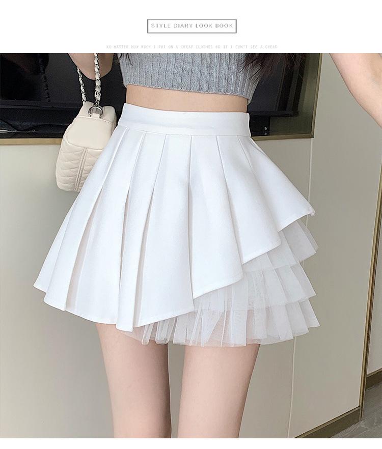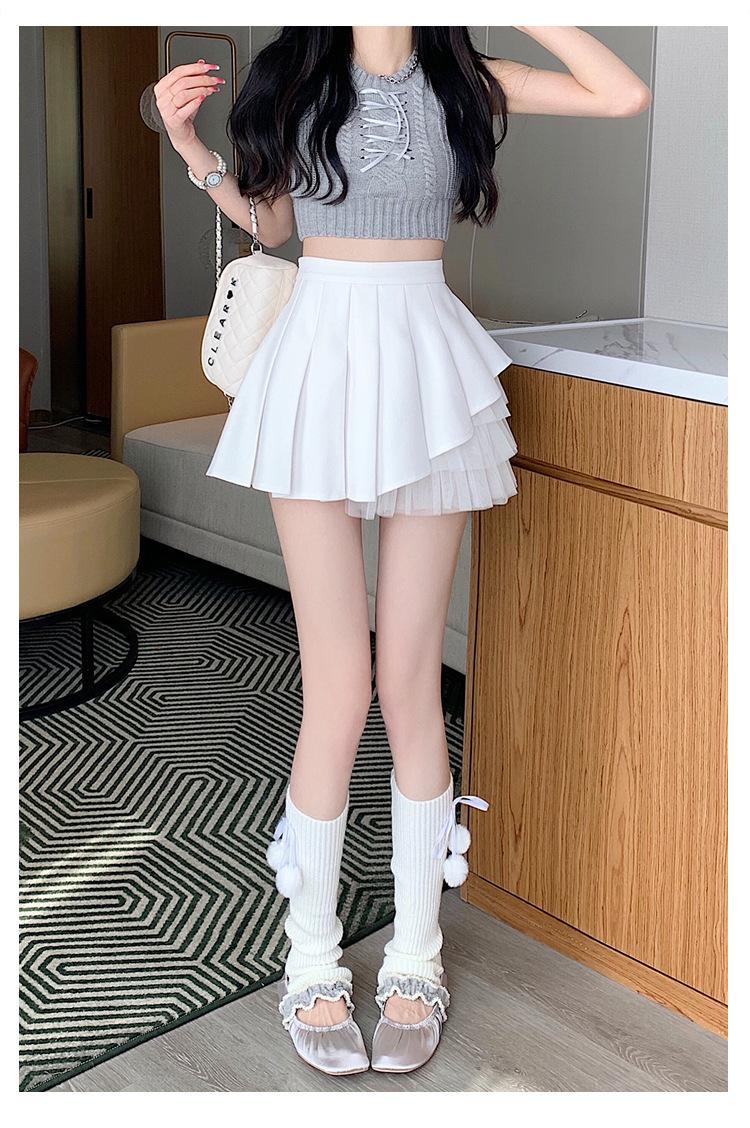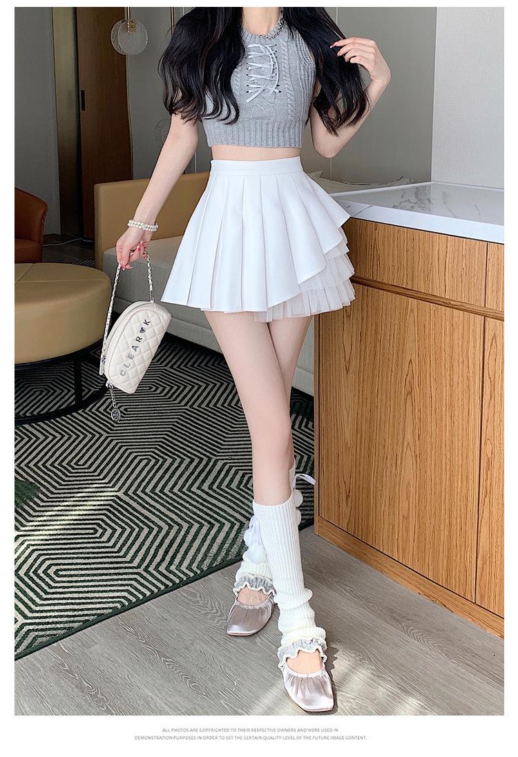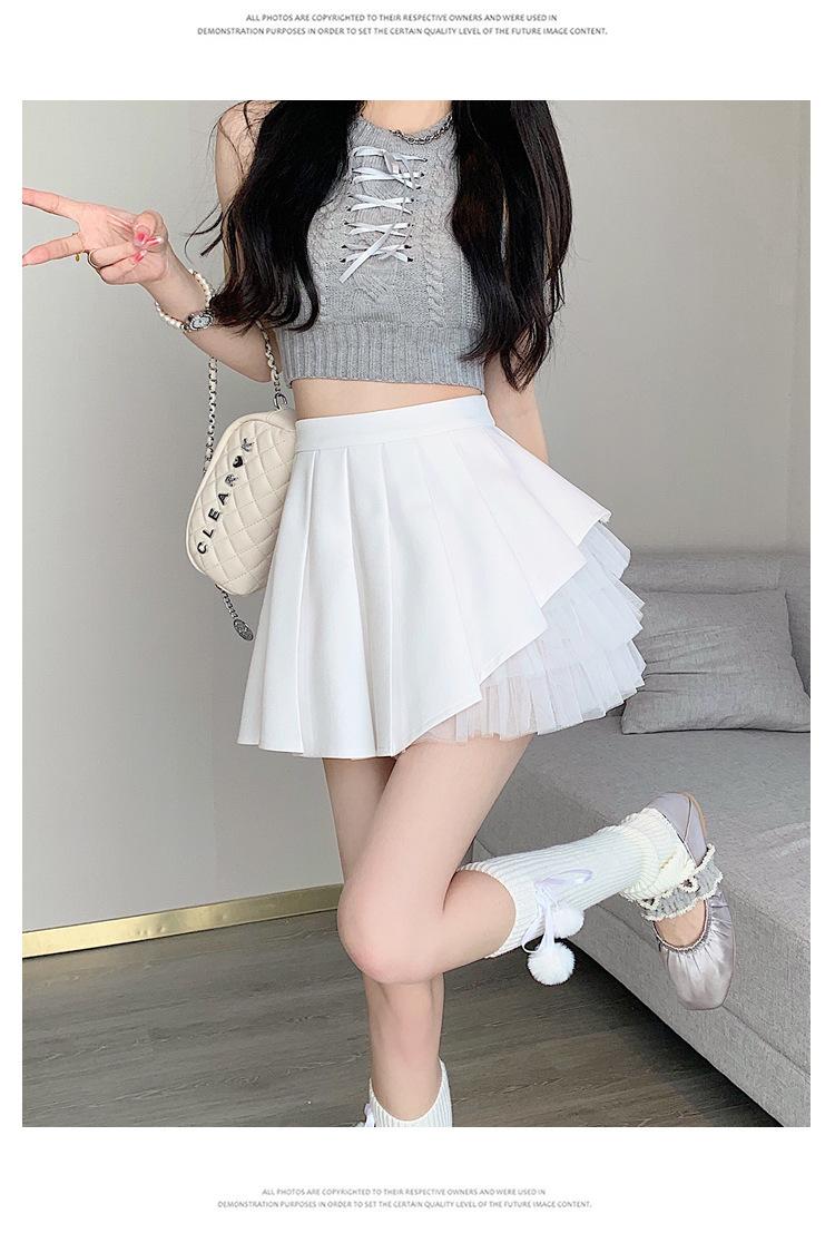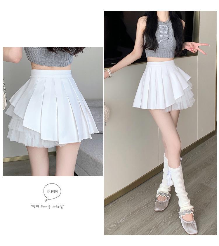 2024 Nueva Falda Plisada de Malla Blanca de Verano Cintura Alta Línea A Falda Ajustada Diseño de Hada Falda Corta
