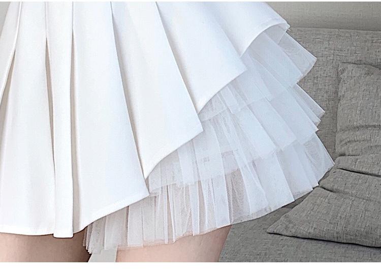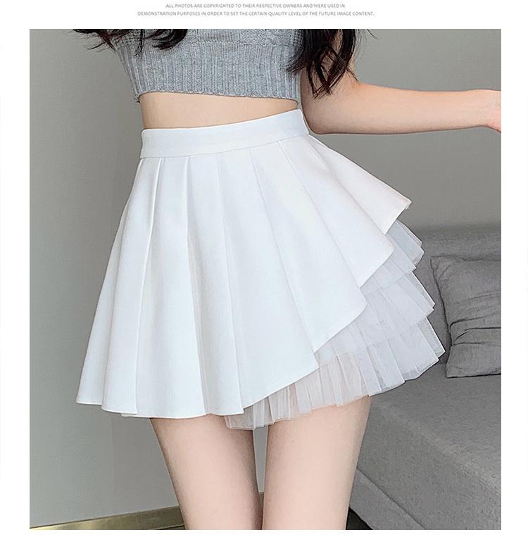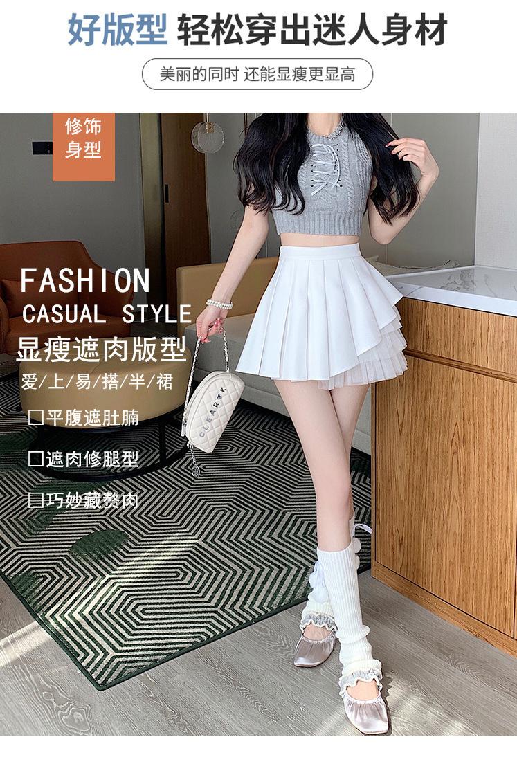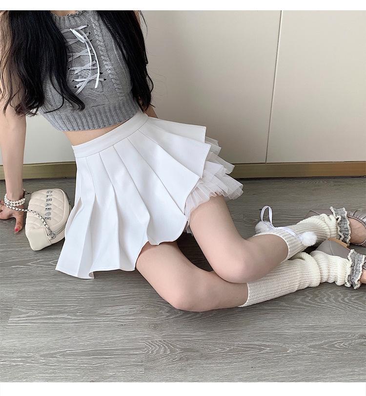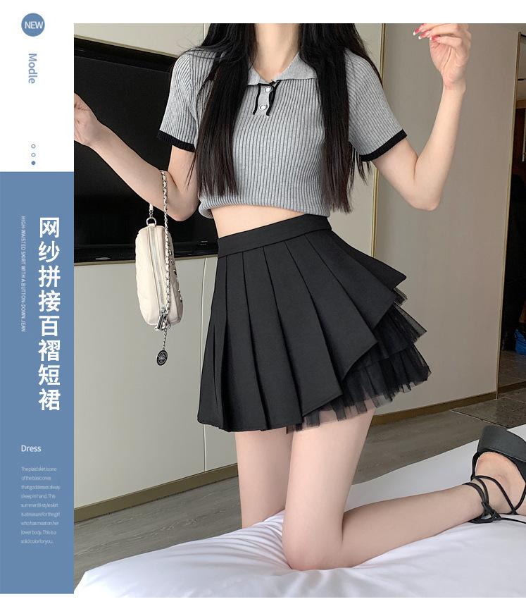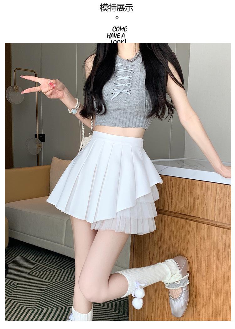 2024 Nueva Falda Plisada de Malla Blanca de Verano Cintura Alta Línea A Falda Ajustada Diseño de Hada Falda Corta