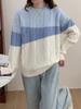 Suéter dulce, joven y fresco, otoño e invierno 2024, nuevo suéter con diseño de nicho de color en contraste con costuras.
