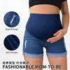 Shorts de Mezclilla de Maternidad Europeos y Americanos Transfronterizos Verano Pantalones de Vientre Estilo Moderno Sencillo Rotos Delgados Se Pueden Usar Afuera Pantalones de Maternidad