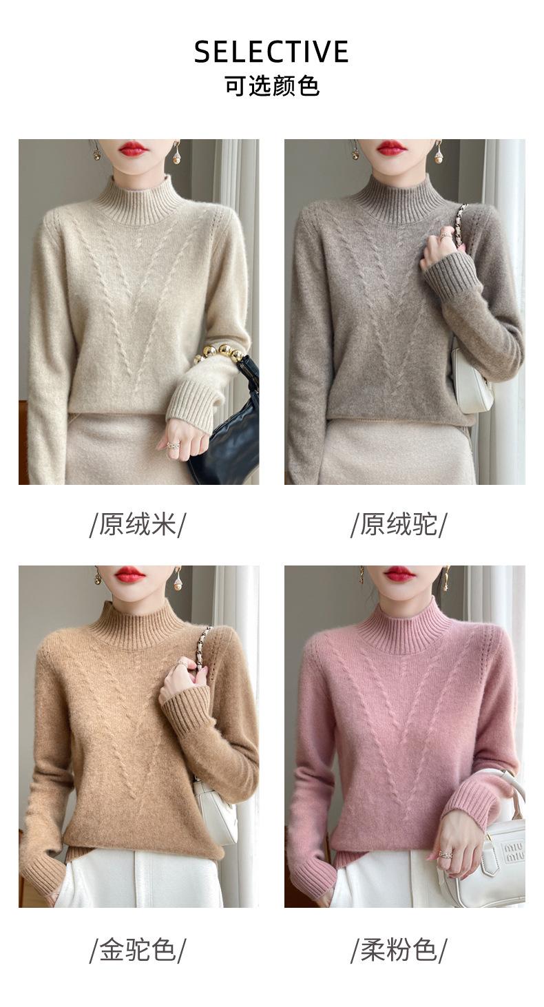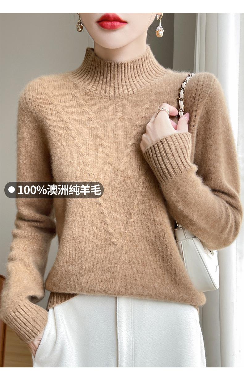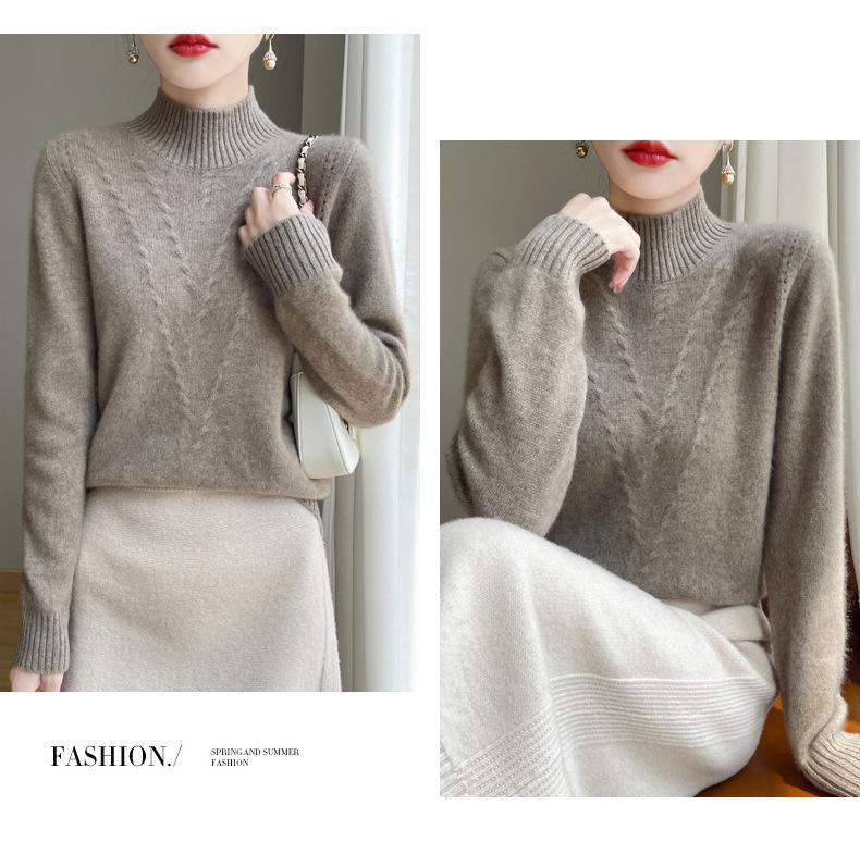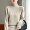 Suéter de Lana de Moda de Cuello Alto para Otoño e Invierno para Mujer, Camiseta Básica de Punto de Manga Larga, Suéter Jersey Jacquard Holgado Ajustado