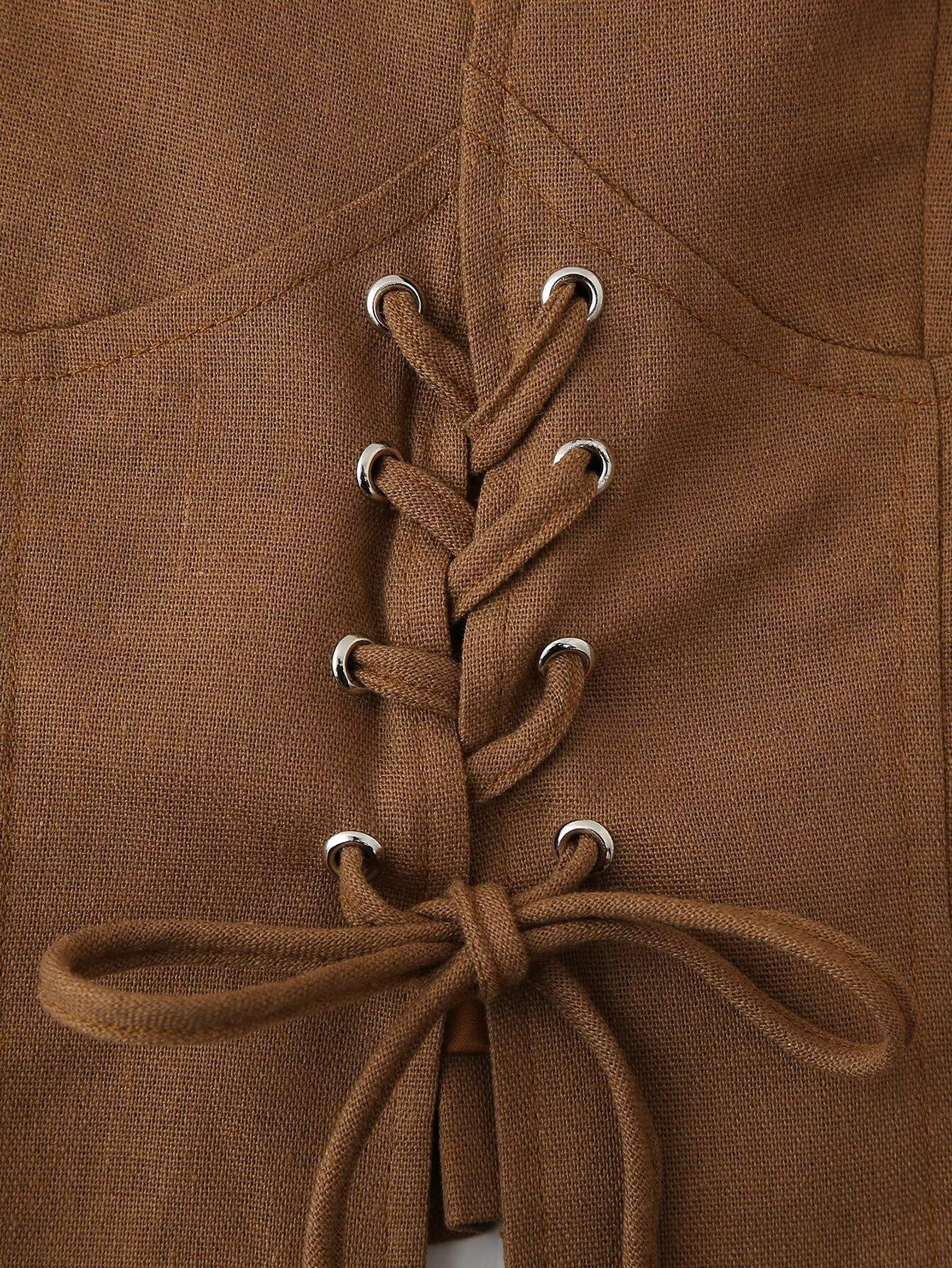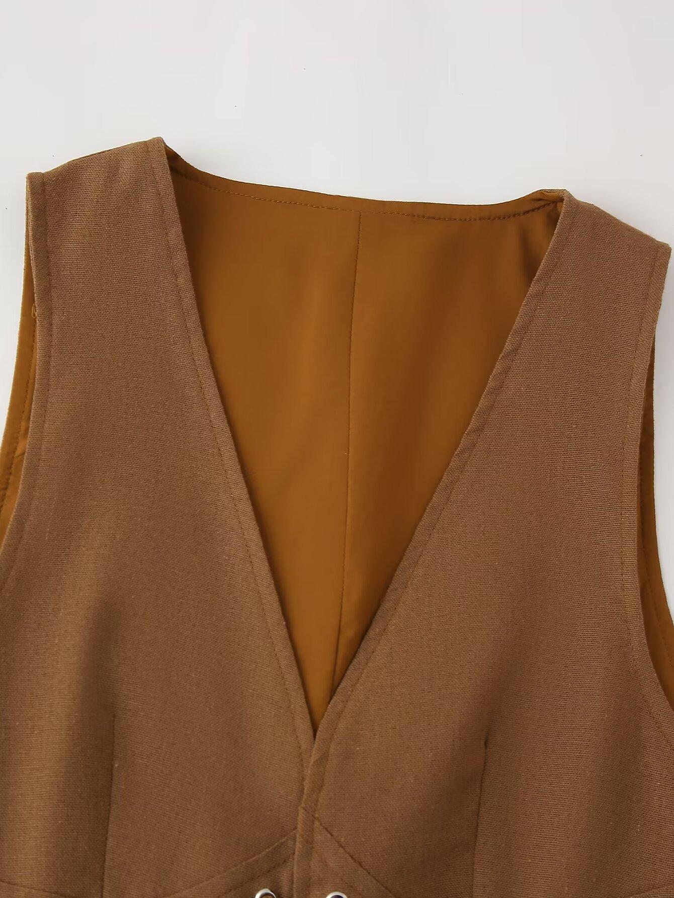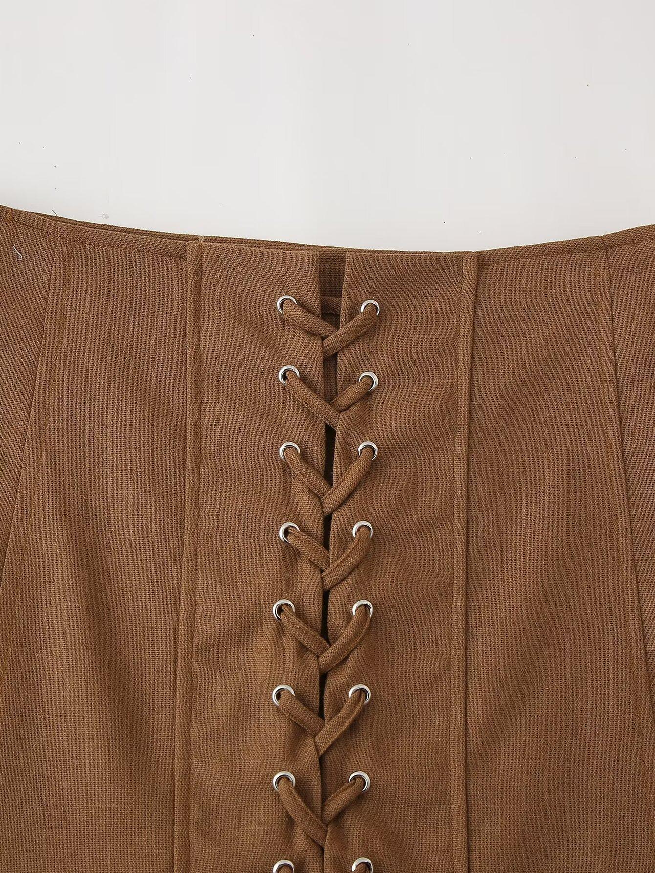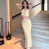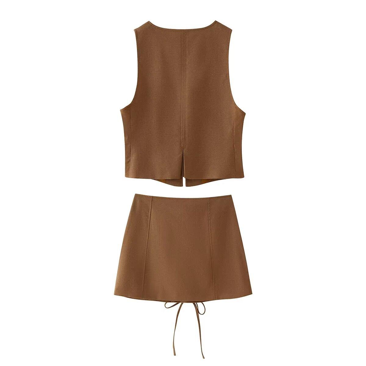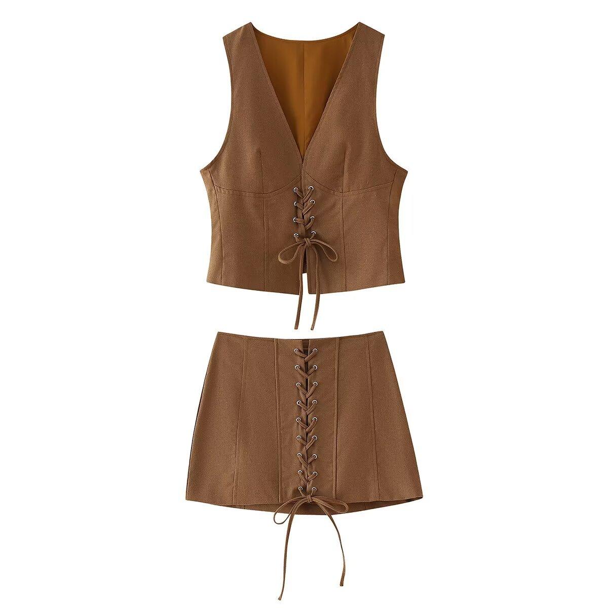 Venta al por mayor de ropa para mujer europea y americana, novedad de verano 2024, chaleco ajustado con cuello en V, falda con cordón y encaje, traje de moda