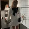 Vestido corto de primavera con cuello redondo, estilo europeo y americano, holgado, de manga larga, con lazo y cordones, sexy y con lentejuelas.