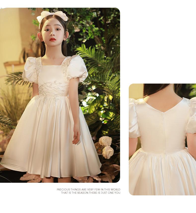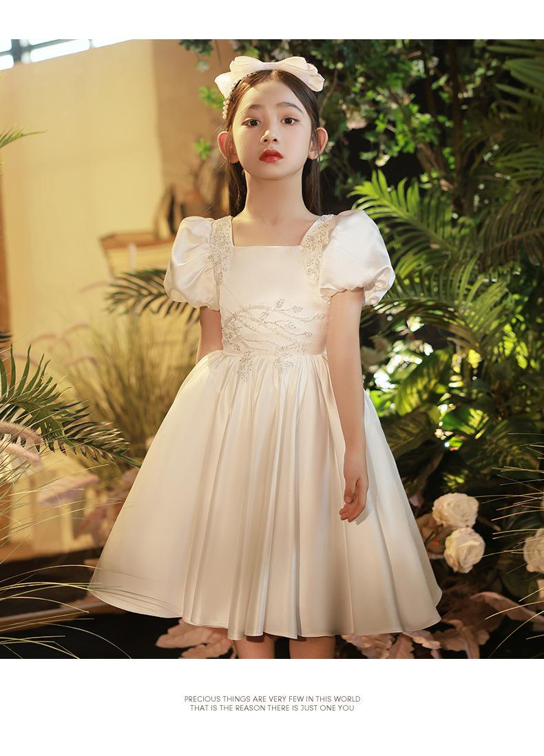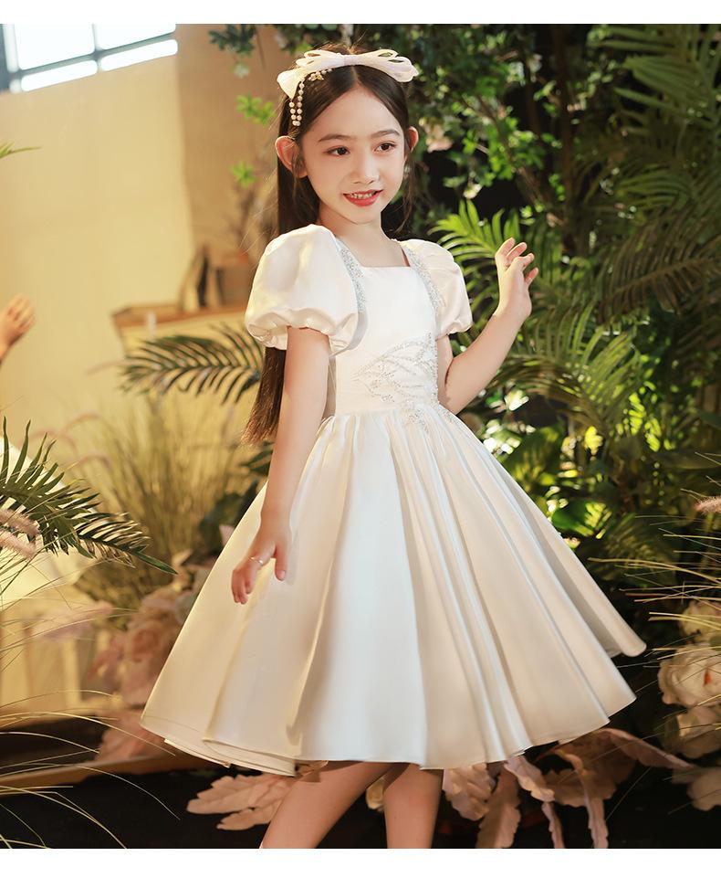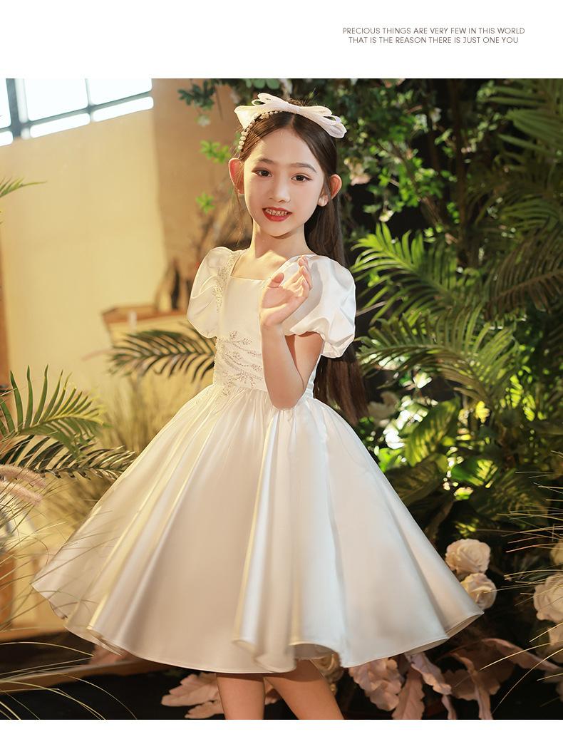 Vestido infantil, vestido de princesa, elegante vestido blanco para niña, vestido para actuación de piano, vestido para niña de las flores, vestido corto para niña de la boda