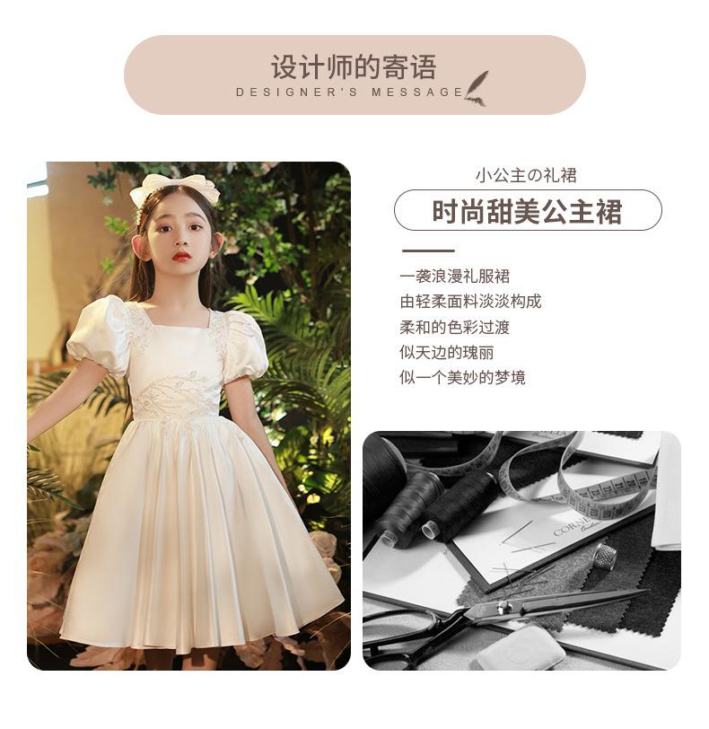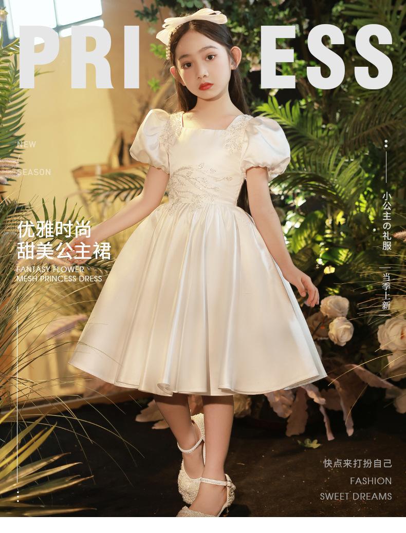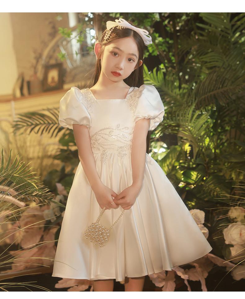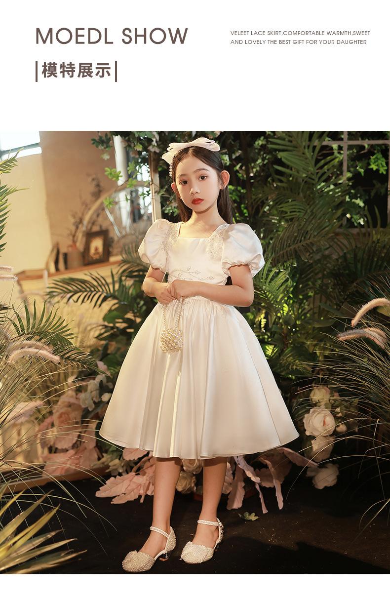 Vestido infantil, vestido de princesa, elegante vestido blanco para niña, vestido para actuación de piano, vestido para niña de las flores, vestido corto para niña de la boda