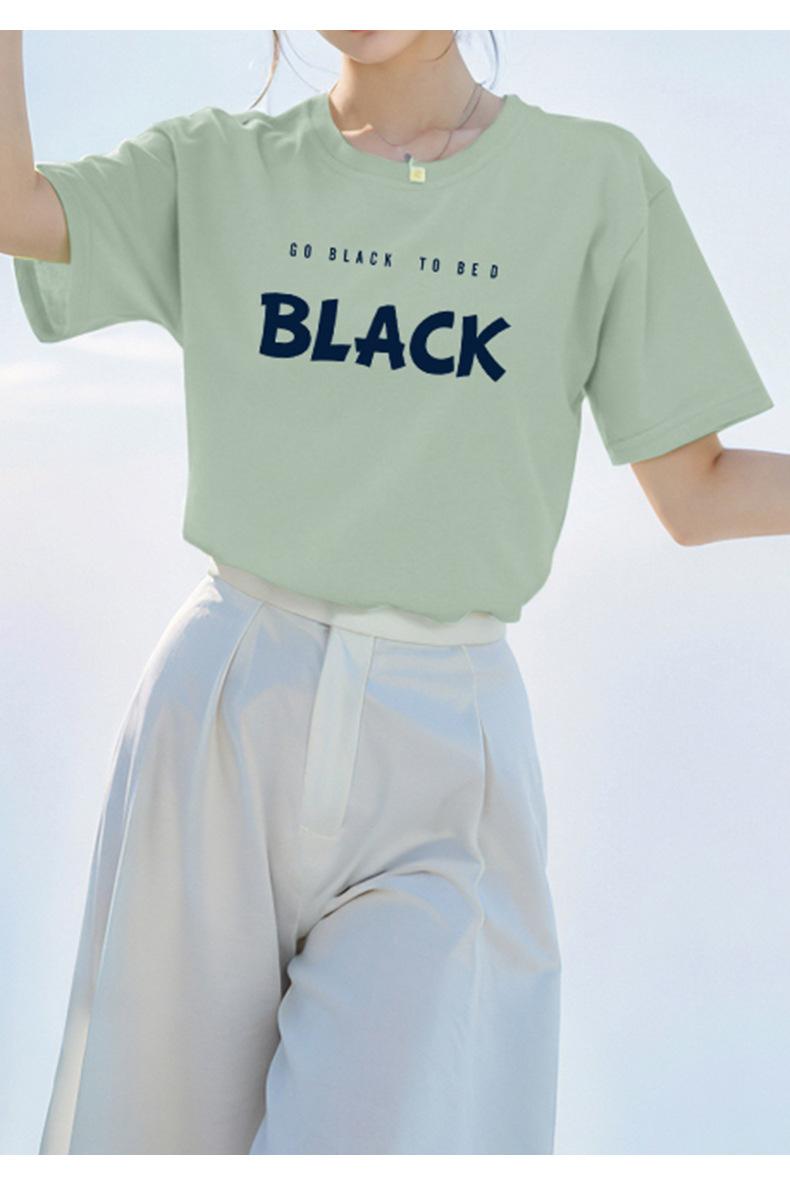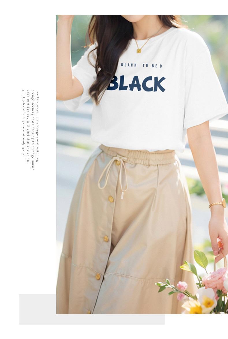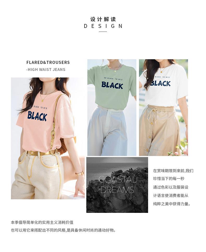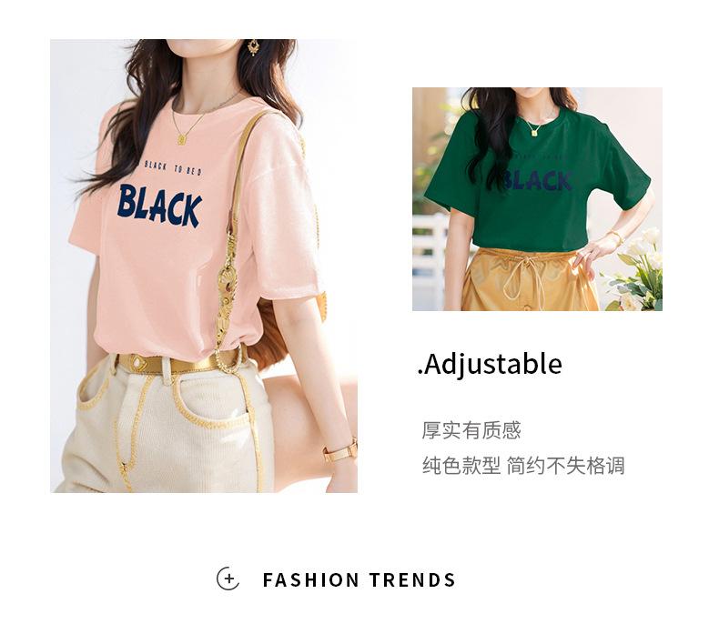 Camiseta blanca de algodón pesado de 260 g para mujer, de manga corta, de verano, de media manga, diseño de estilo occidental, de moda, holgada.