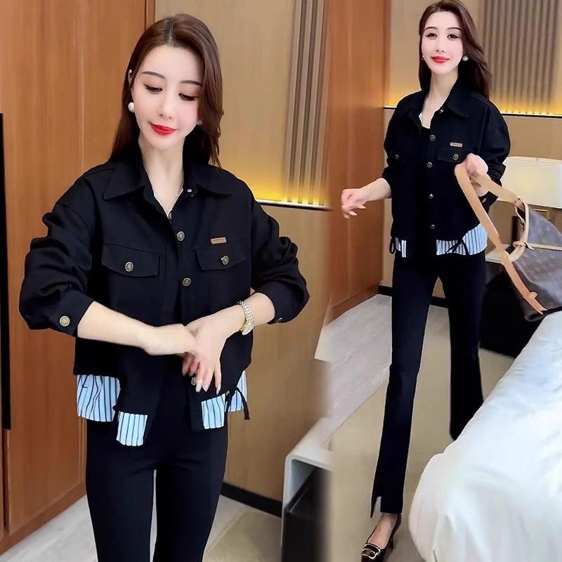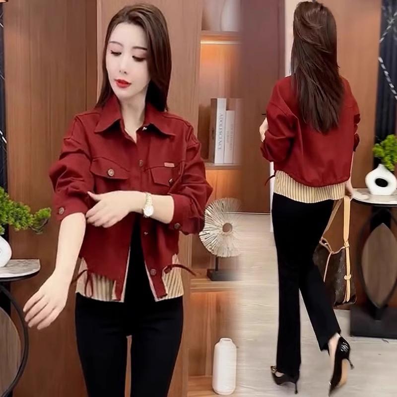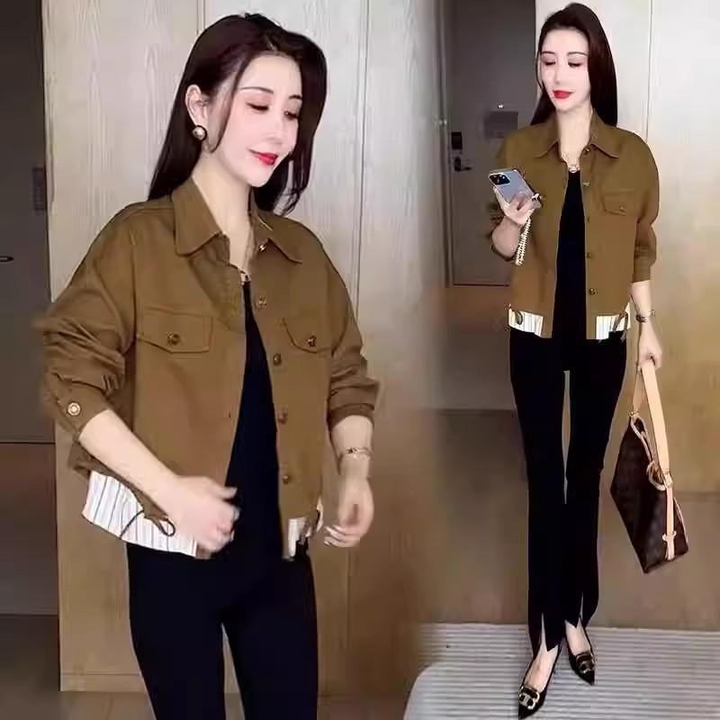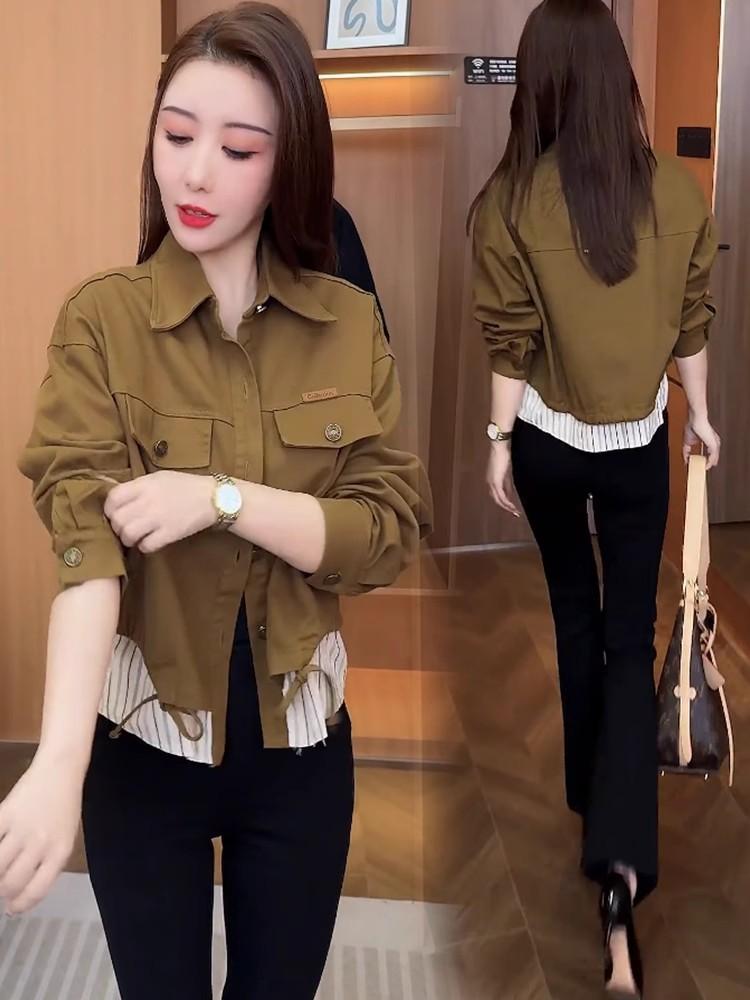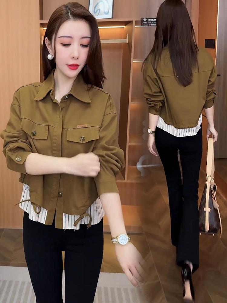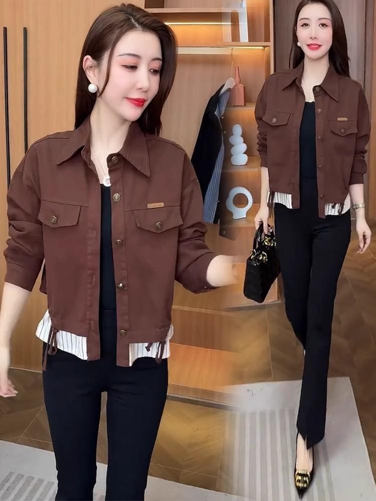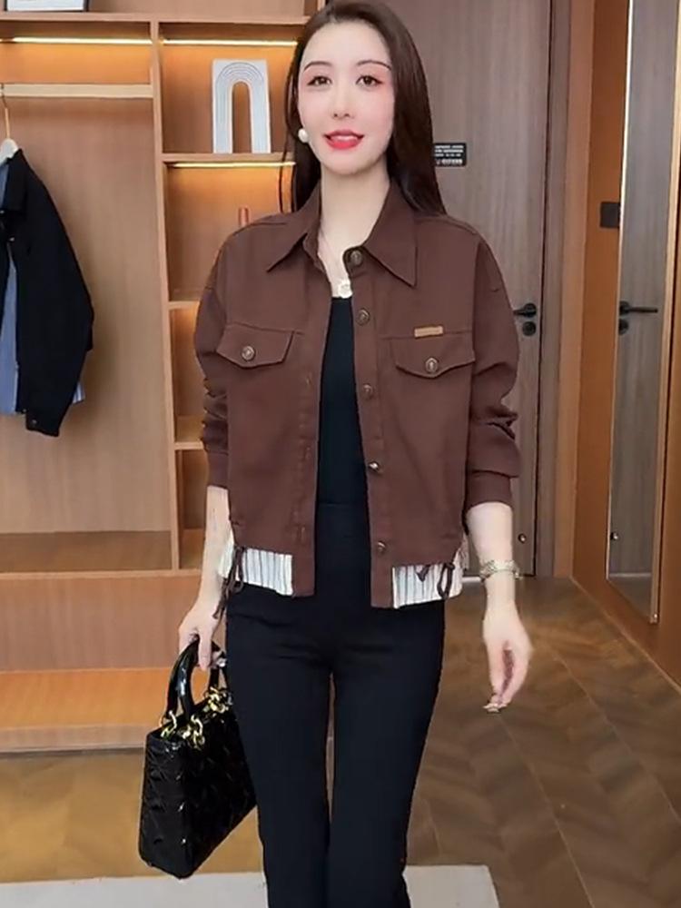 Abrigo corto de moda para mujer, otoño 2024, nuevo, estilo occidental, ajustado, adelgazante, con costuras a juego, abrigo informal pequeño.