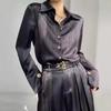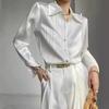 Camisa de satén de imitación acetato para mujer, estilo europeo, primavera y otoño, diseño nicho, informal, a rayas, sencilla, de manga larga.