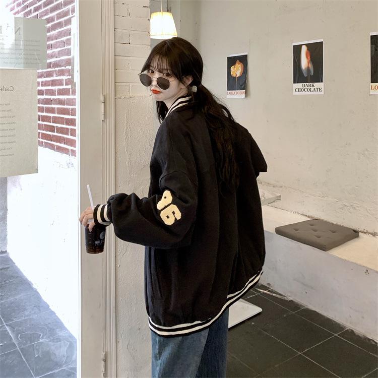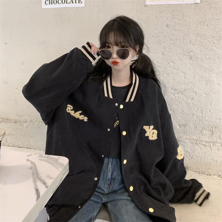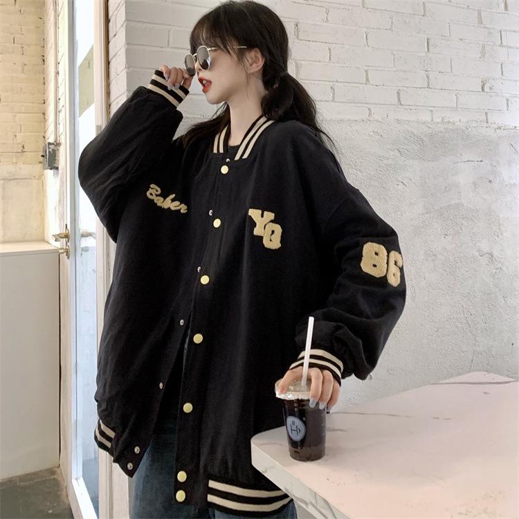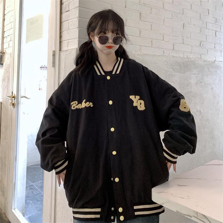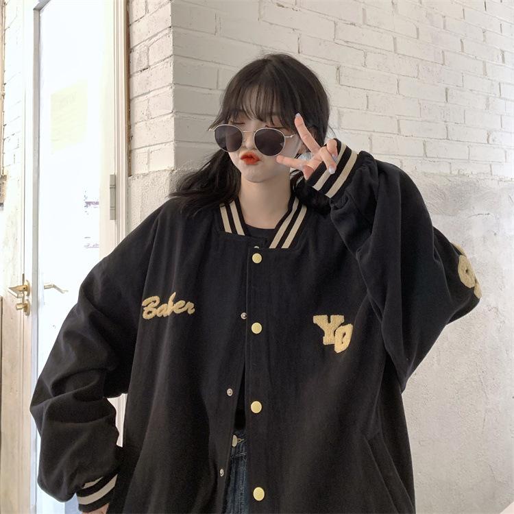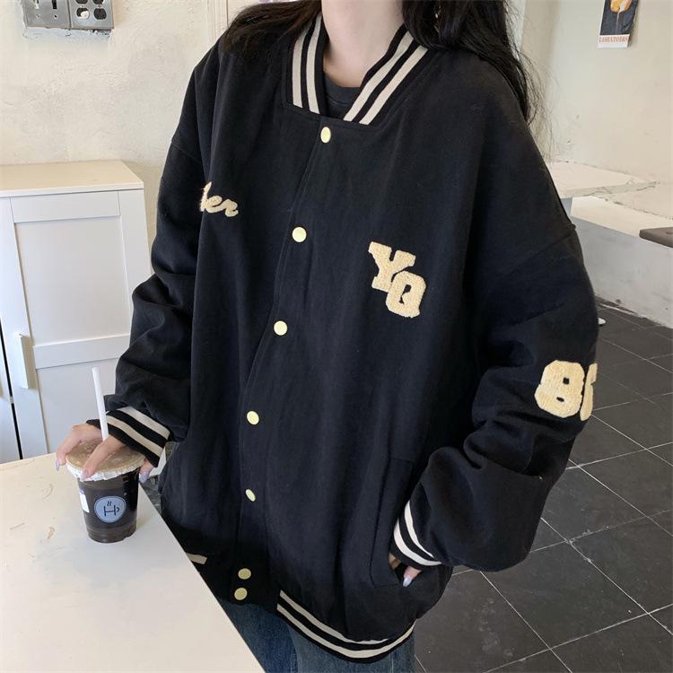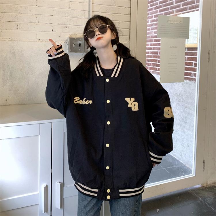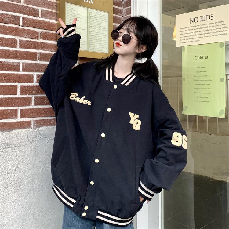 Traje de béisbol estilo Harajuku para mujer, ropa de otoño, sudadera fina, nuevo abrigo de estudiante negro estilo americano vintage 2025