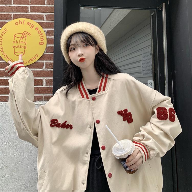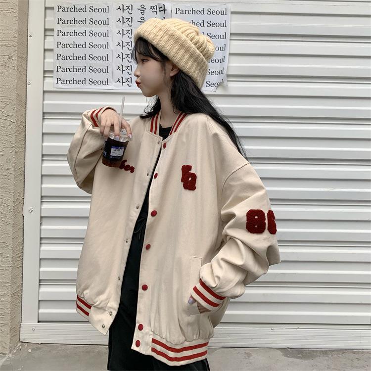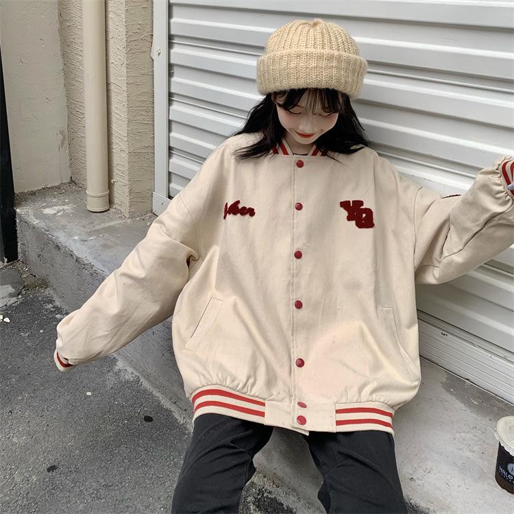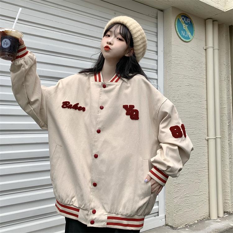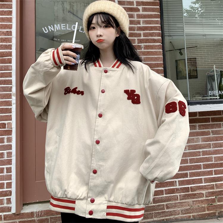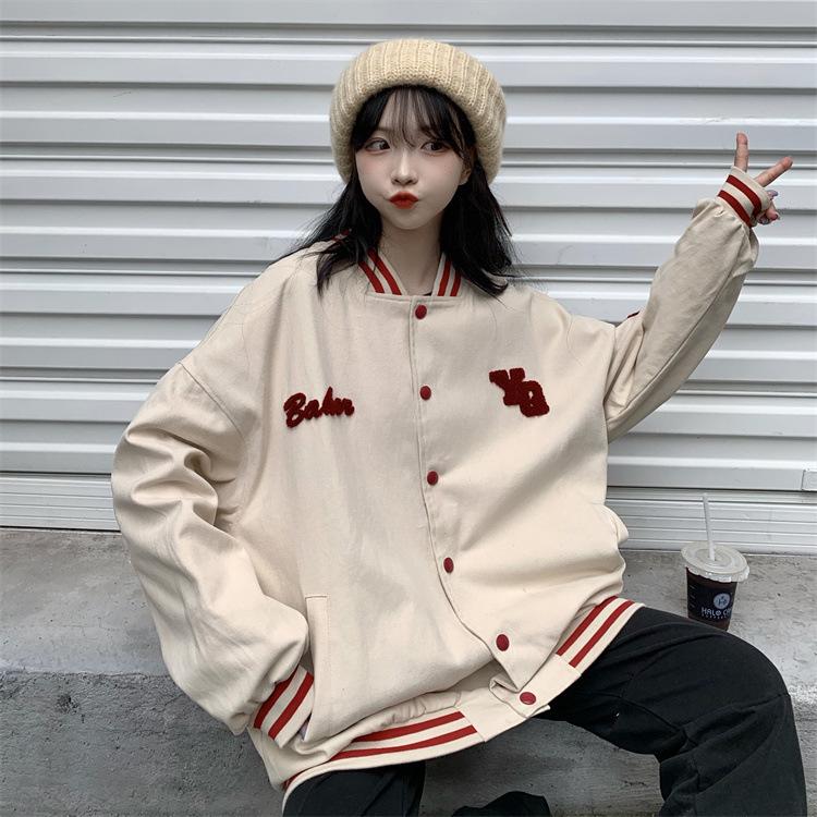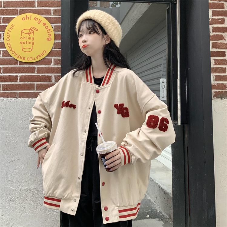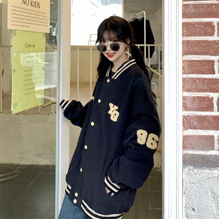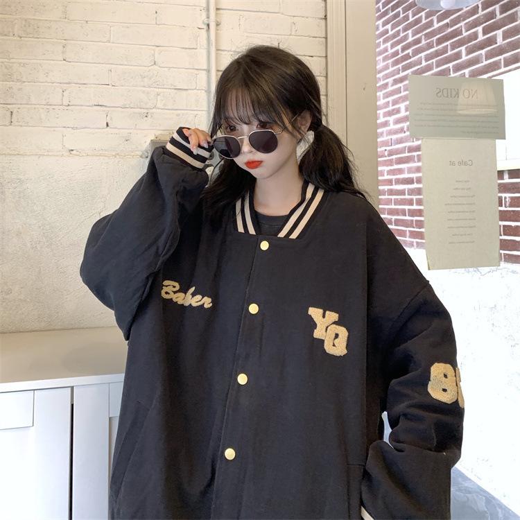 Traje de béisbol estilo Harajuku para mujer, ropa de otoño, sudadera fina, nuevo abrigo de estudiante negro estilo americano vintage 2025