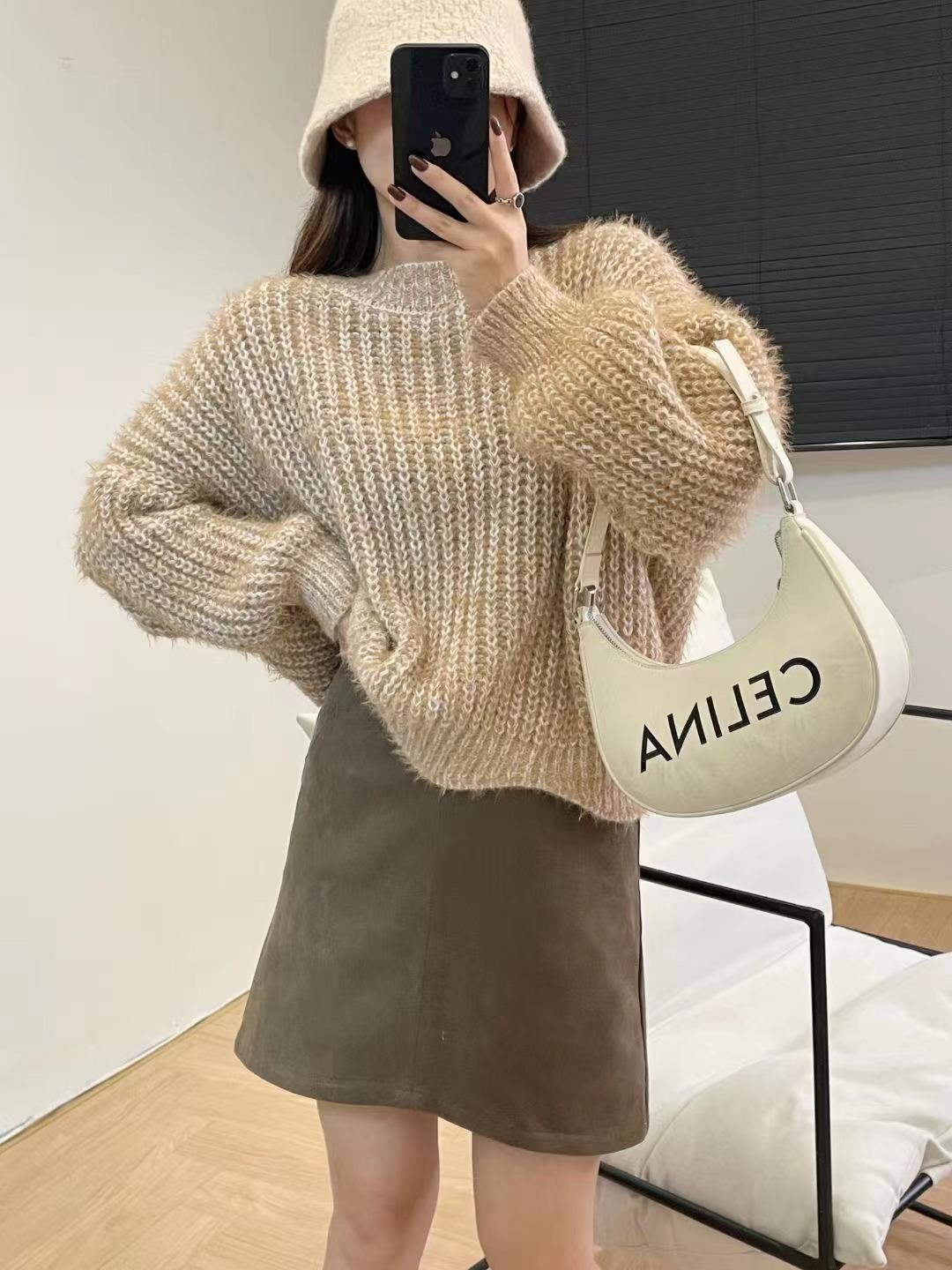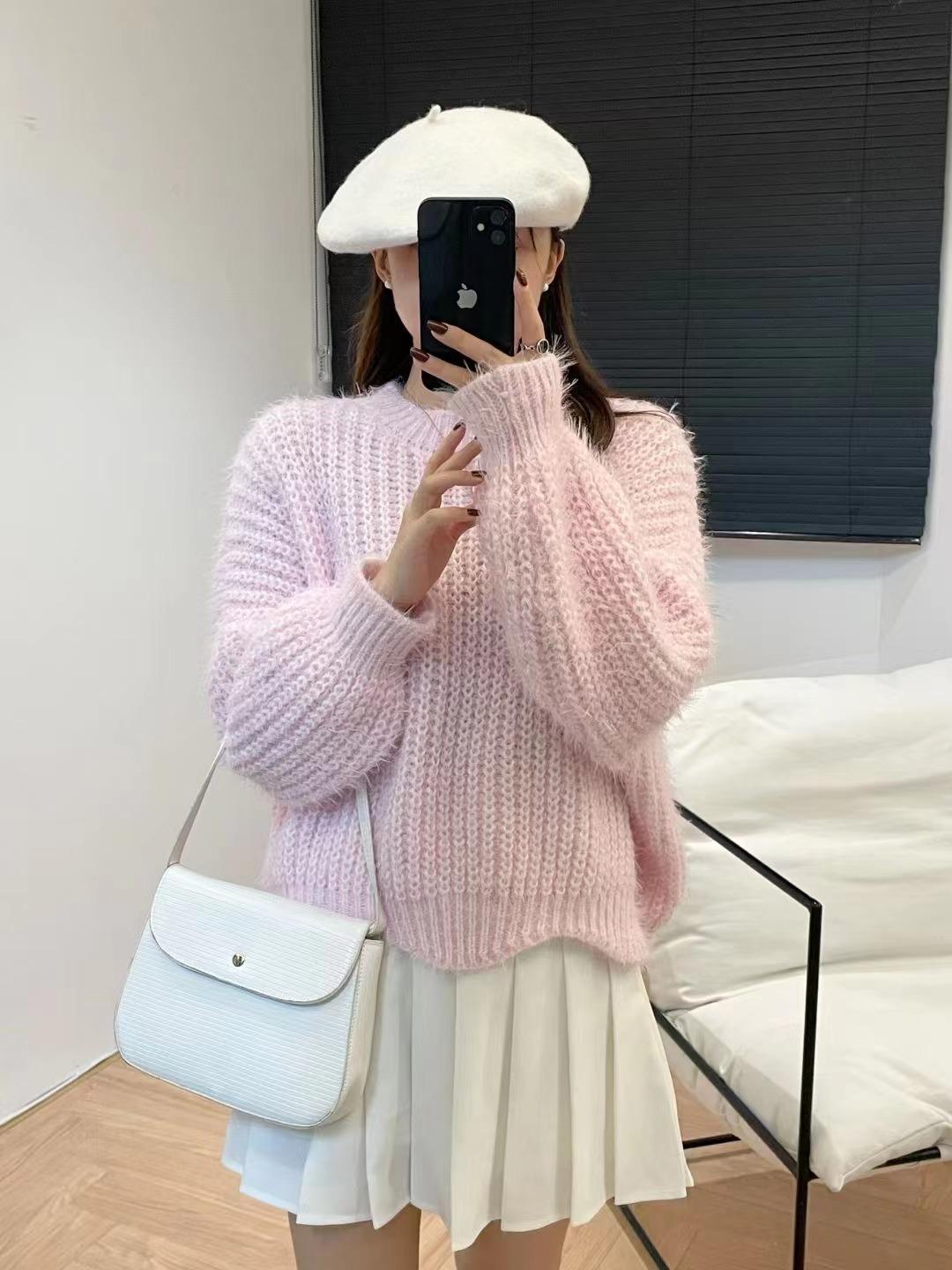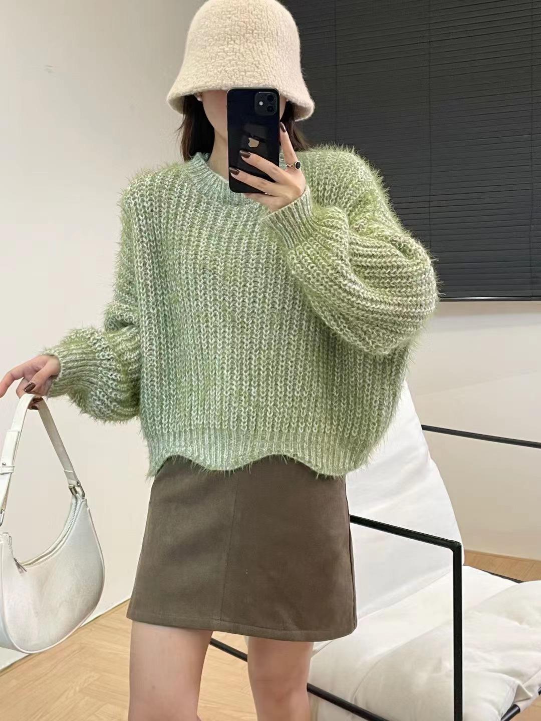 Suéter de punto estilo perezoso para mujer, otoño 2024, nuevo, suelto, de manga larga, suave, encerado, prenda exterior antiedad, suéter de punto
