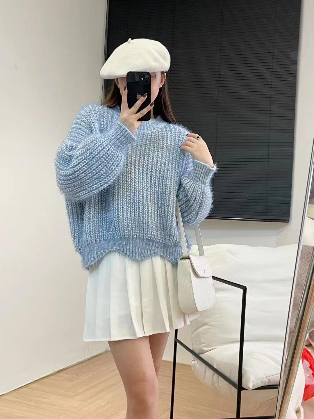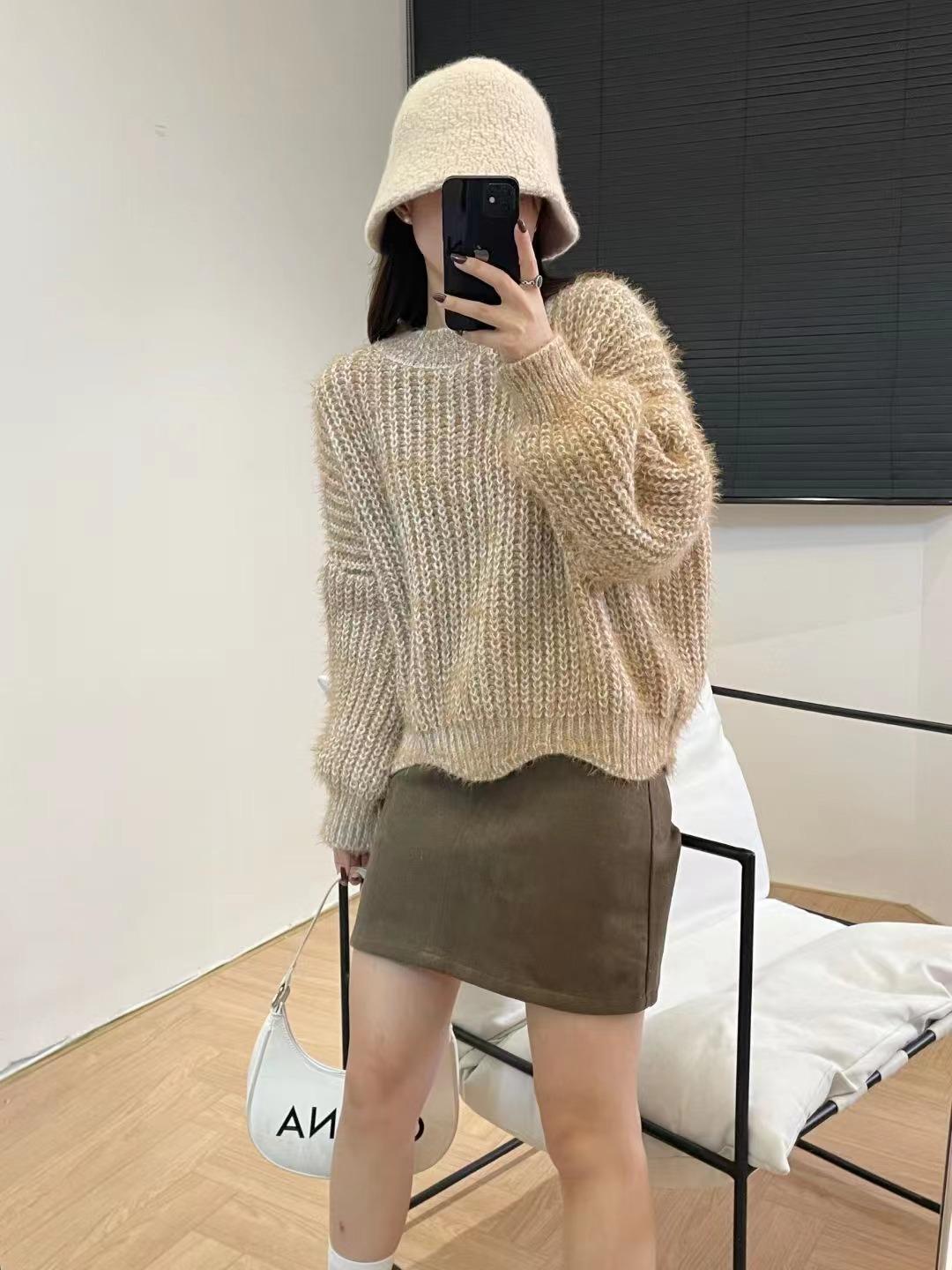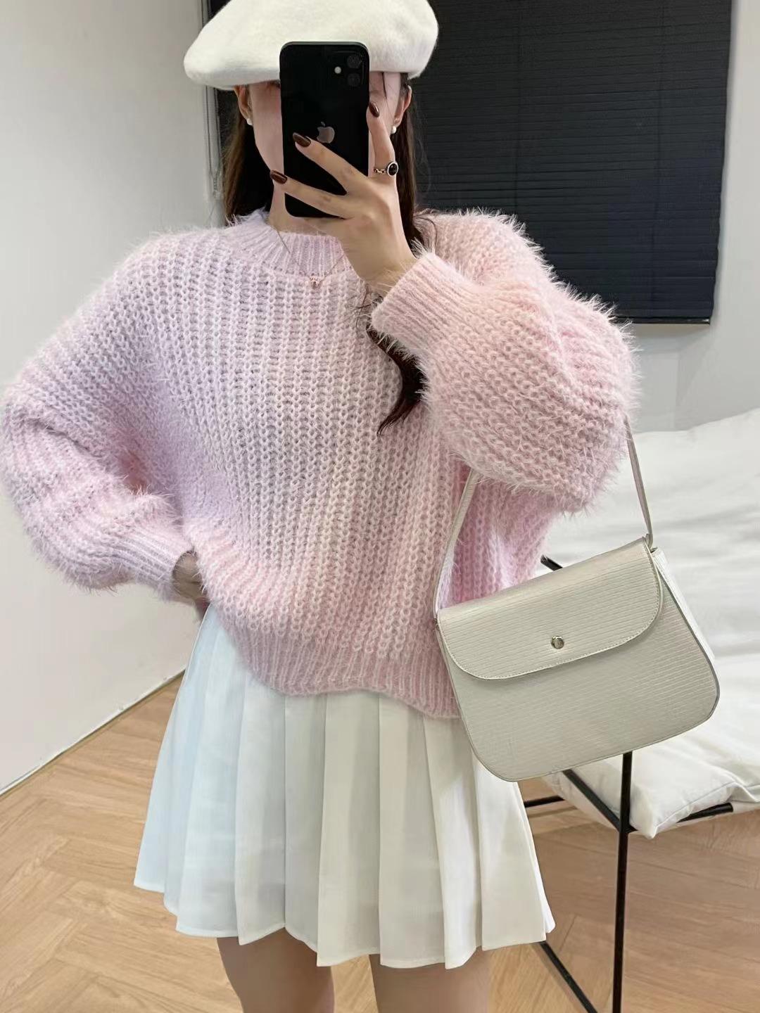 Suéter de punto estilo perezoso para mujer, otoño 2024, nuevo, suelto, de manga larga, suave, encerado, prenda exterior antiedad, suéter de punto