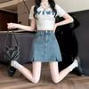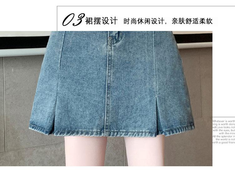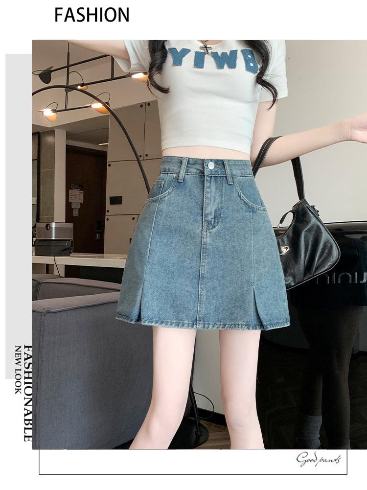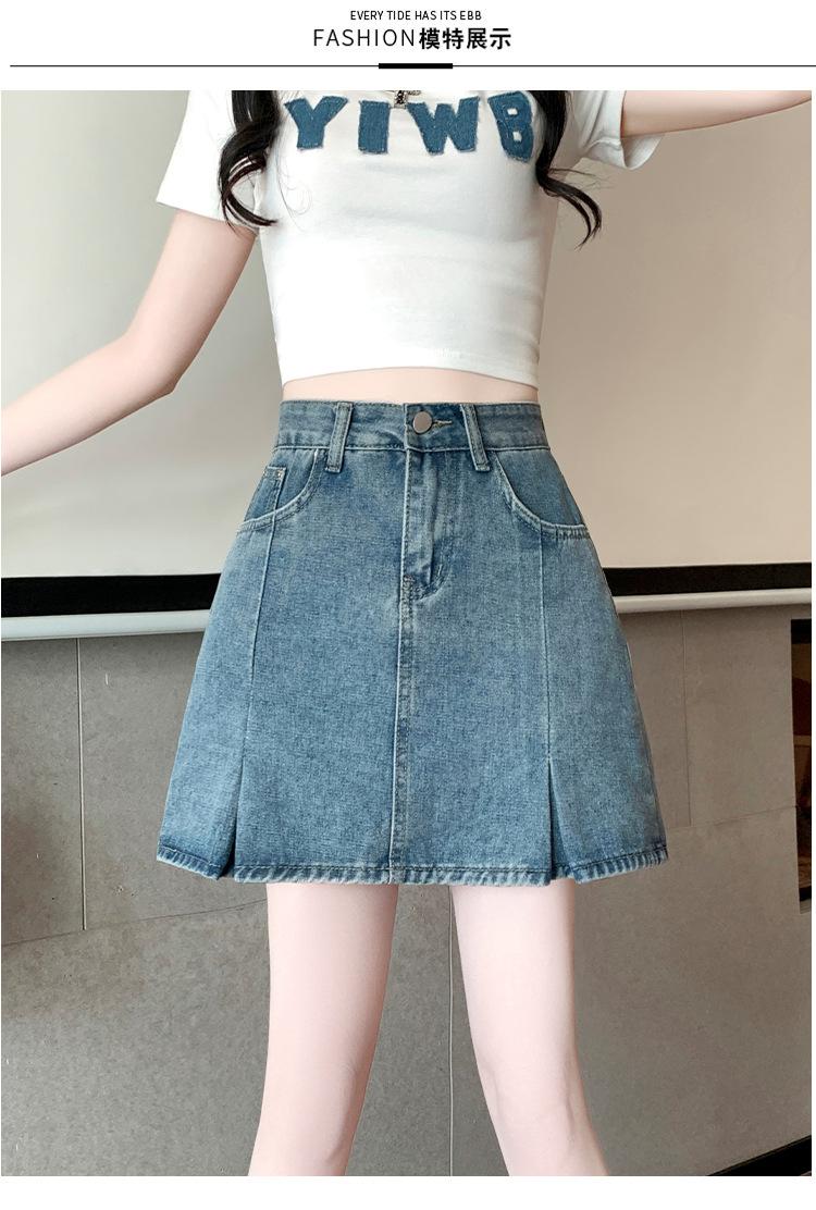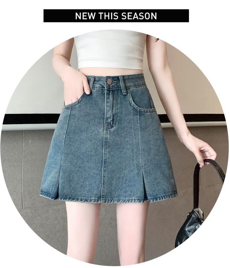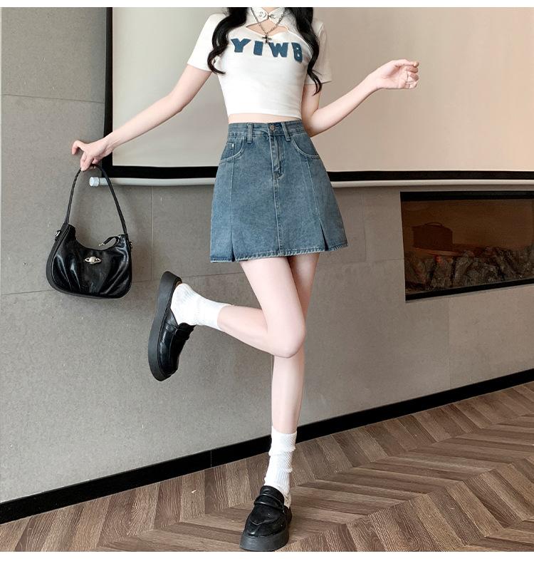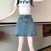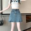 Falda Corta de Mezclilla Estilo Americano Ins Vintage Ajustada para Mujer Verano Nuevo Talla Grande Chica Gordita Cintura Alta Ajustada Línea A Falda Plisada