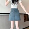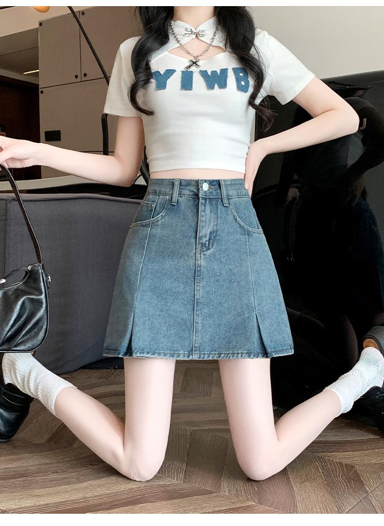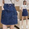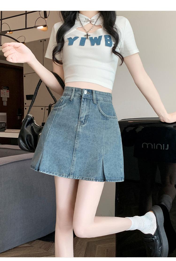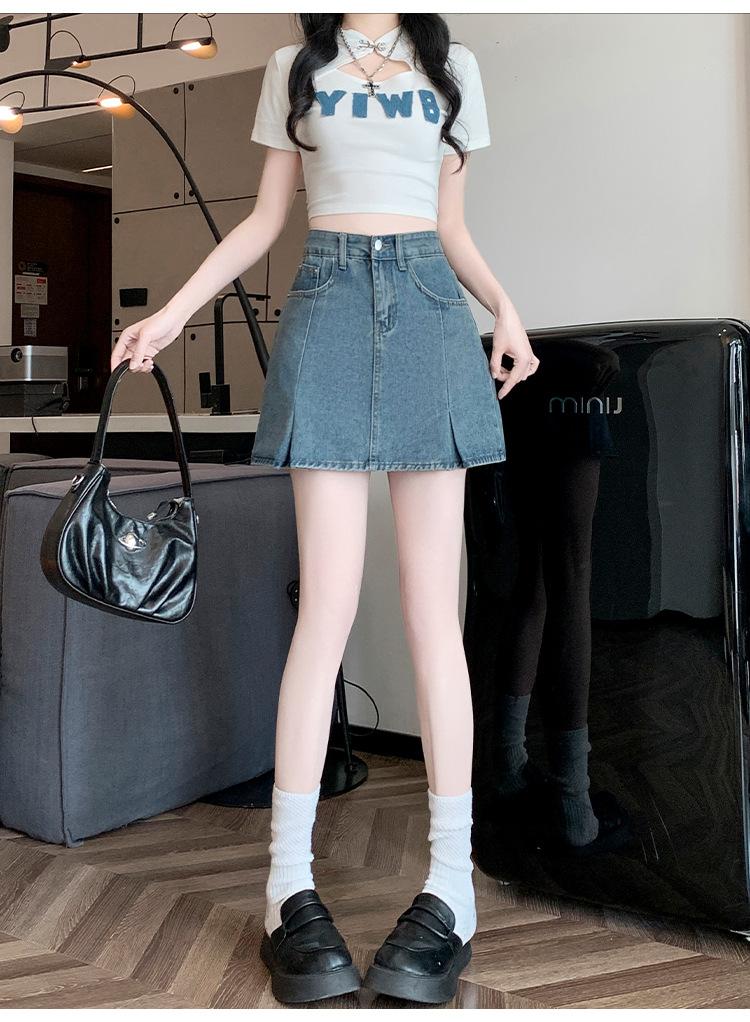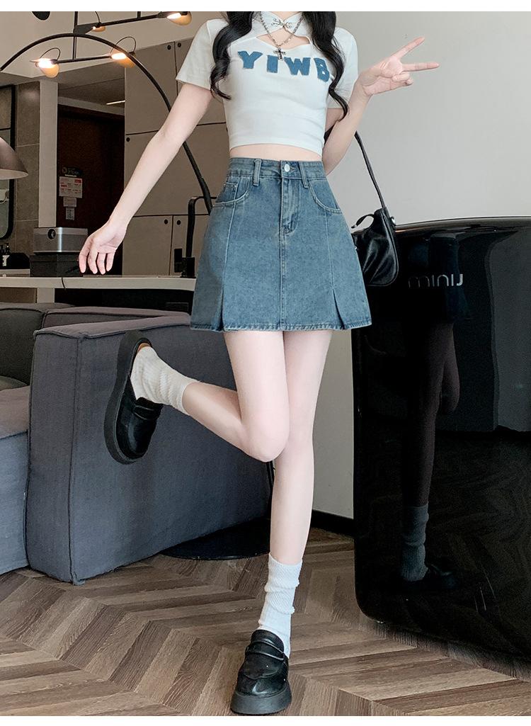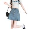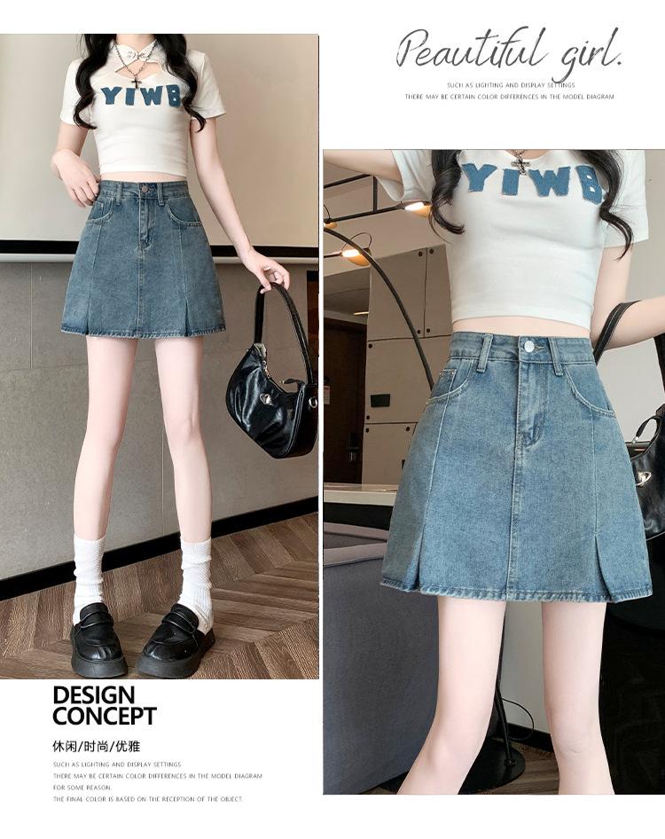 Falda Corta de Mezclilla Estilo Americano Ins Vintage Ajustada para Mujer Verano Nuevo Talla Grande Chica Gordita Cintura Alta Ajustada Línea A Falda Plisada