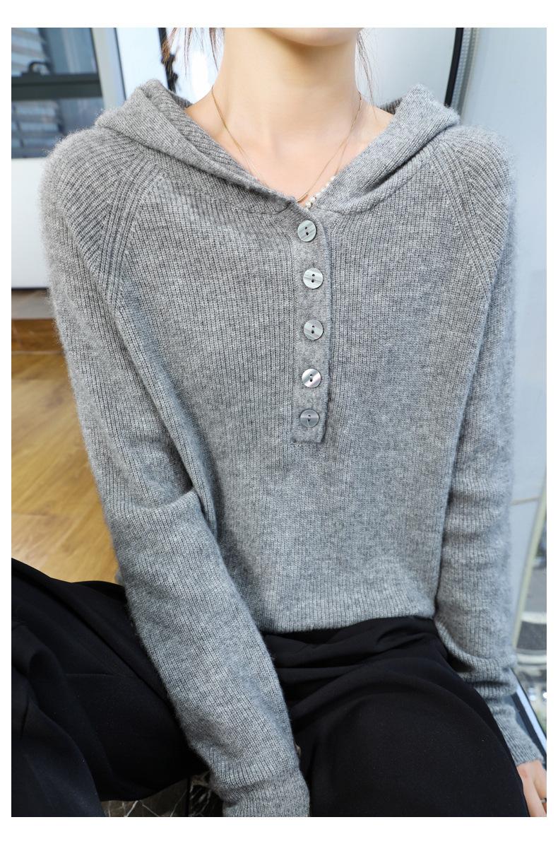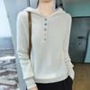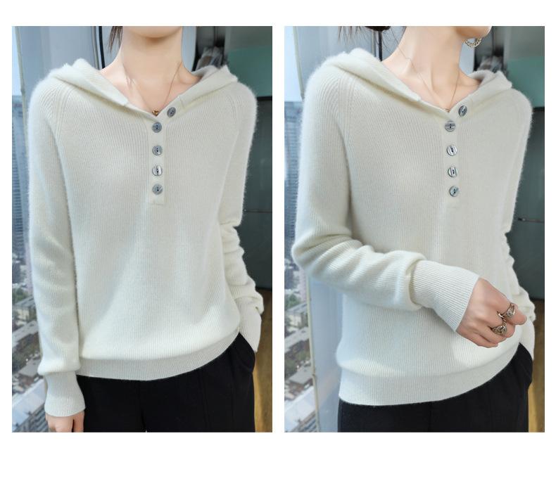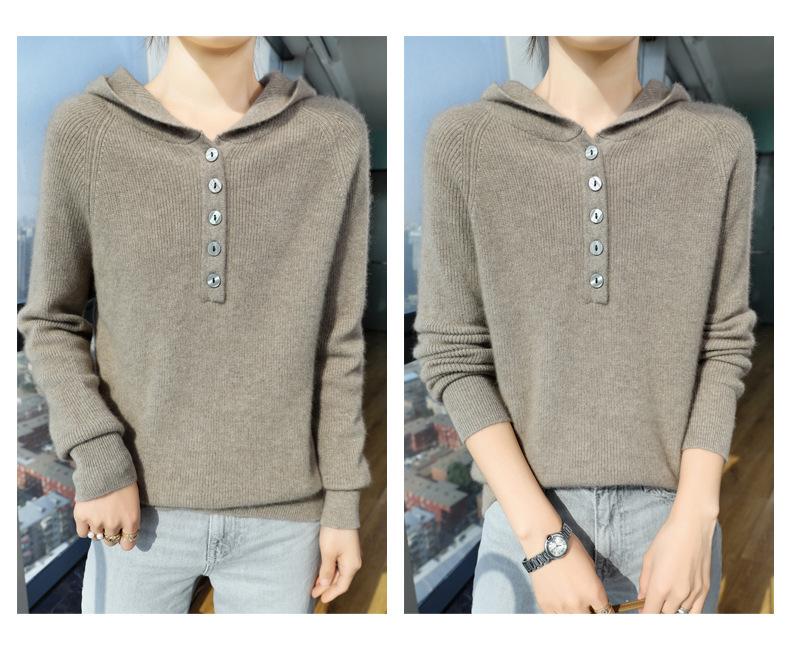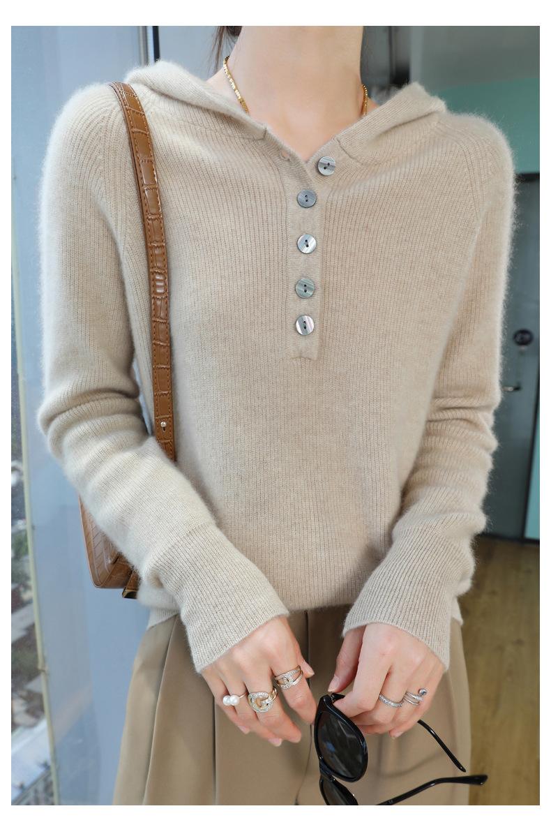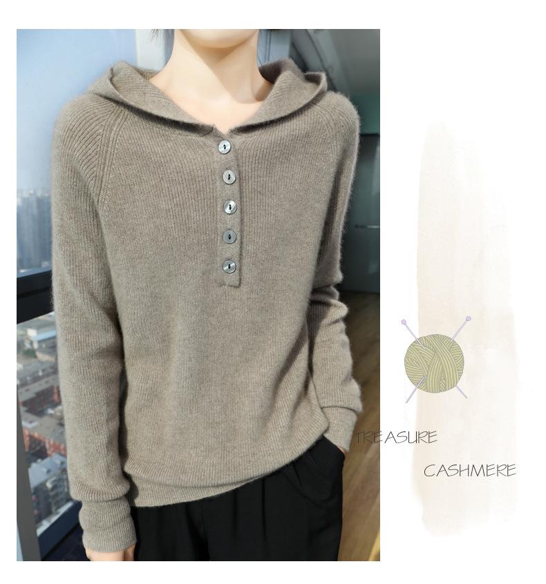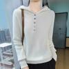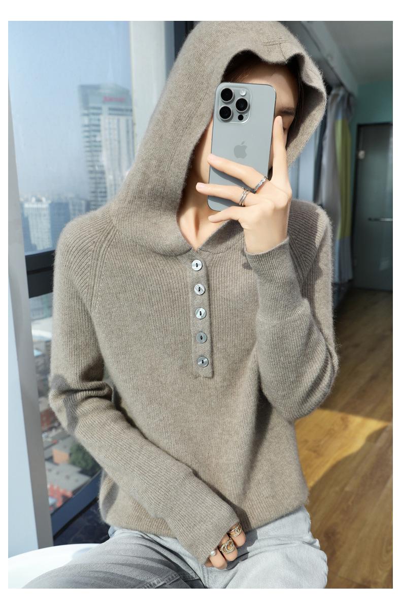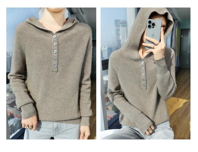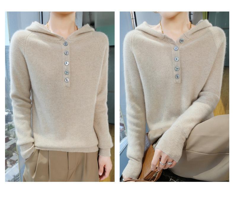 Camisa básica de cachemira gruesa para otoño e invierno, nueva, con capucha, de color liso, informal, combinable, de lana adelgazante, de punto