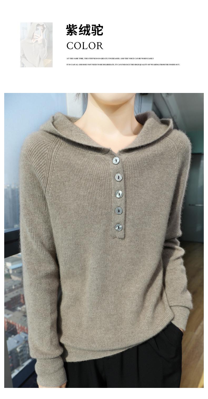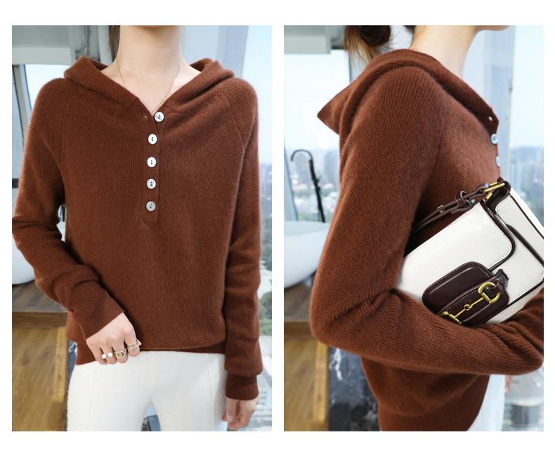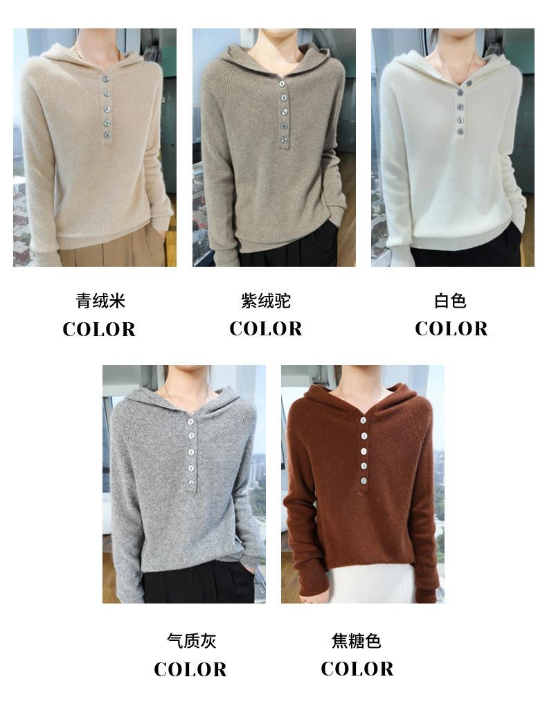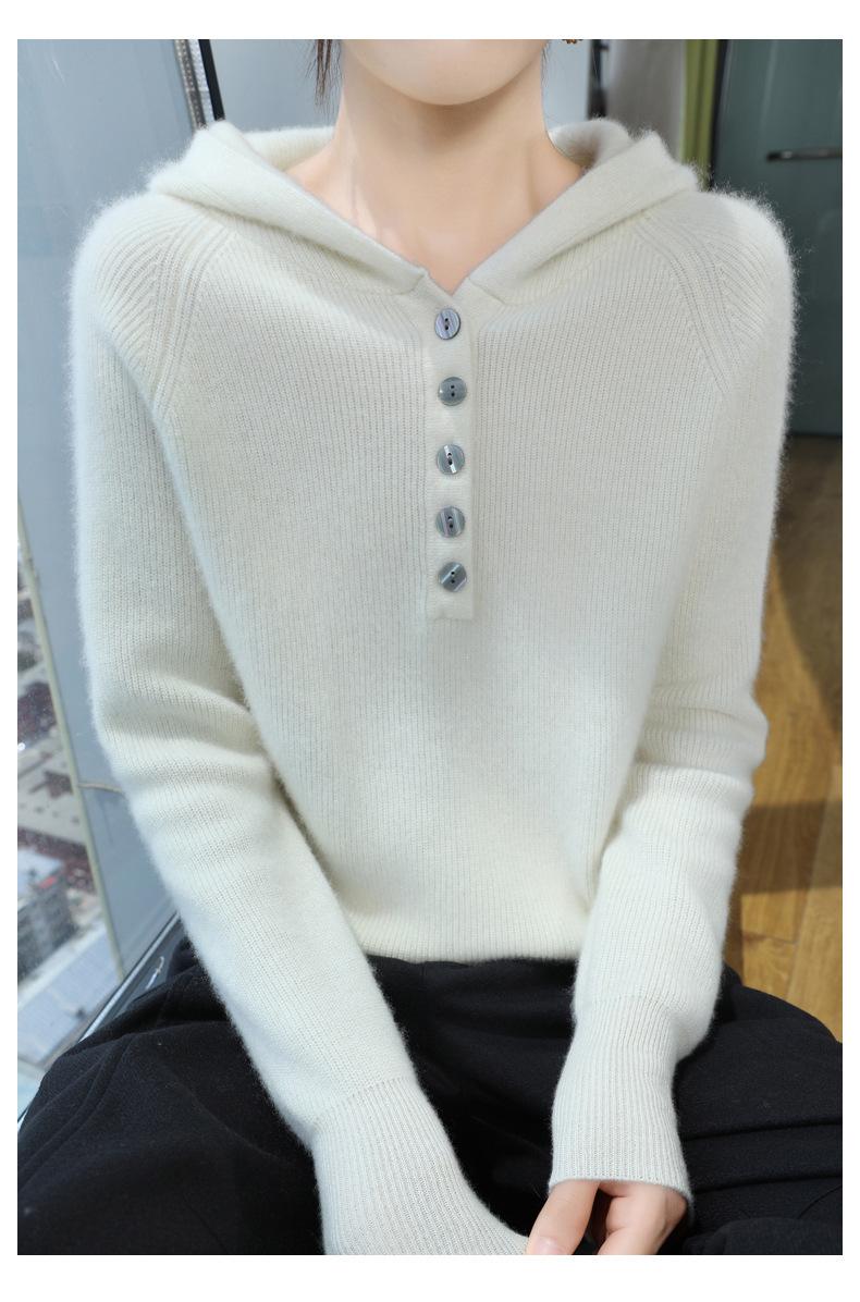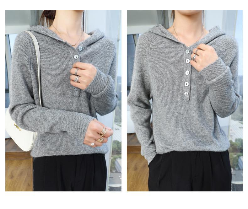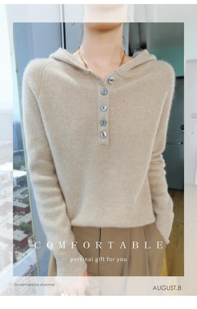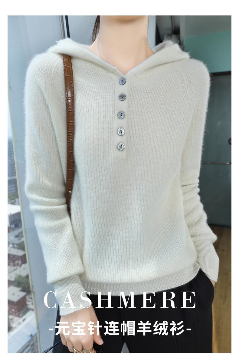 Camisa básica de cachemira gruesa para otoño e invierno, nueva, con capucha, de color liso, informal, combinable, de lana adelgazante, de punto