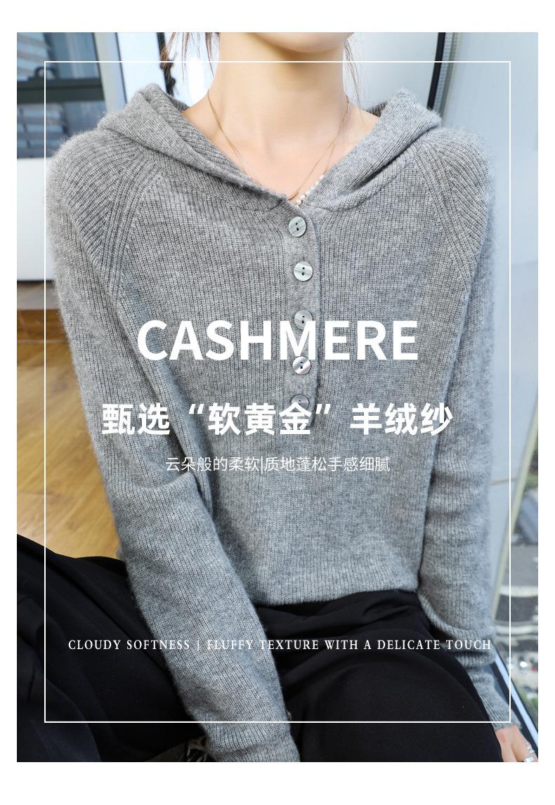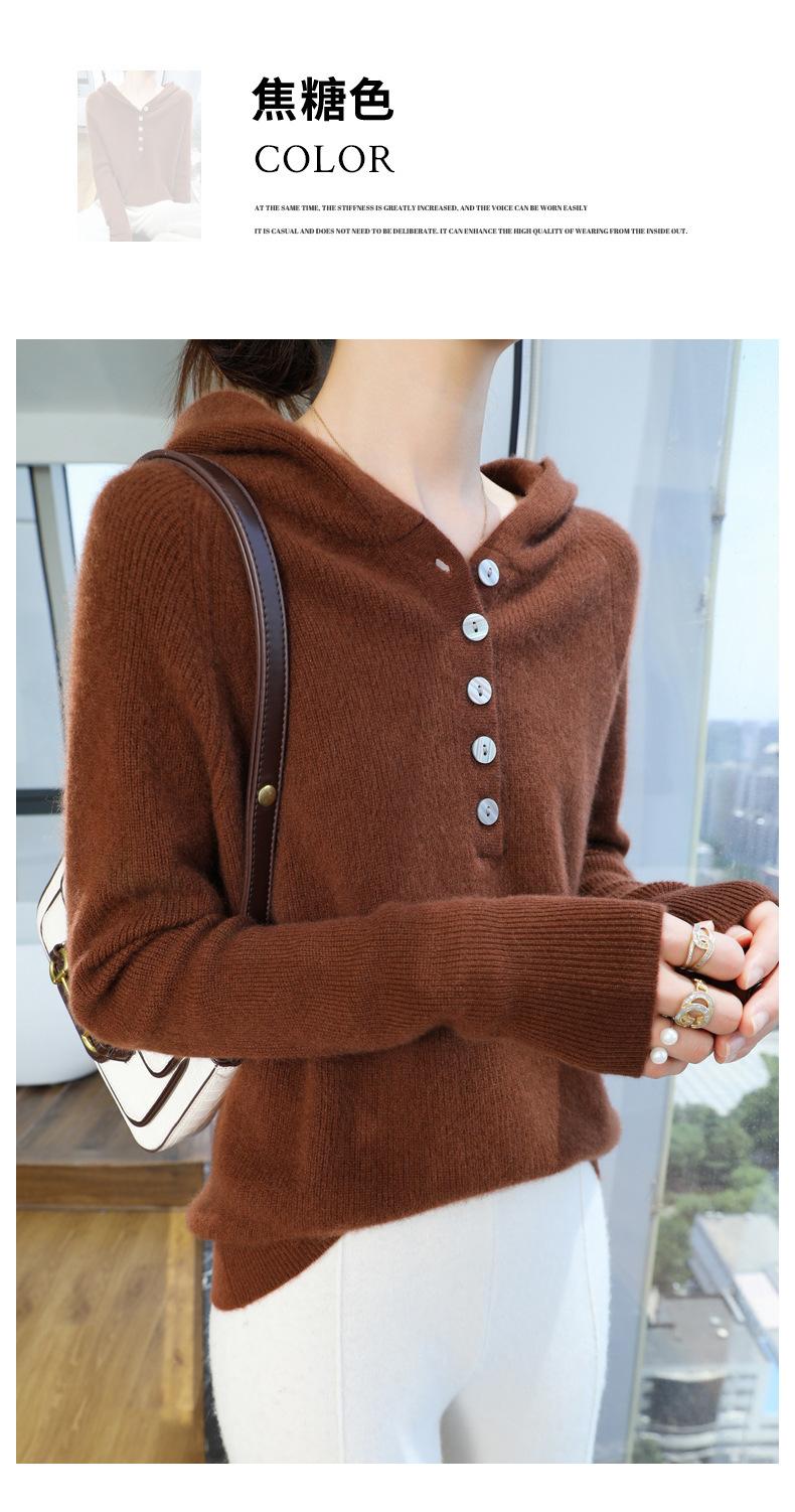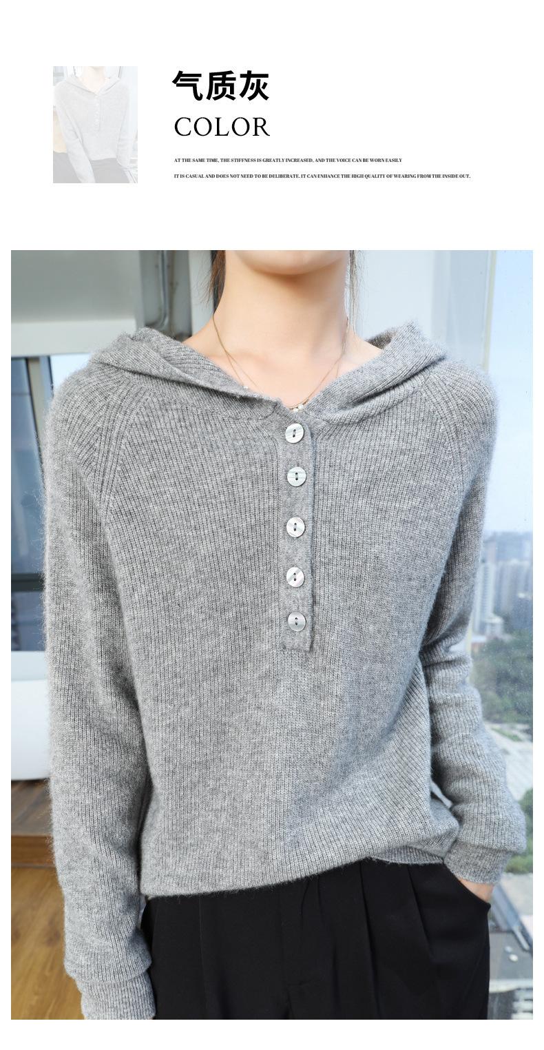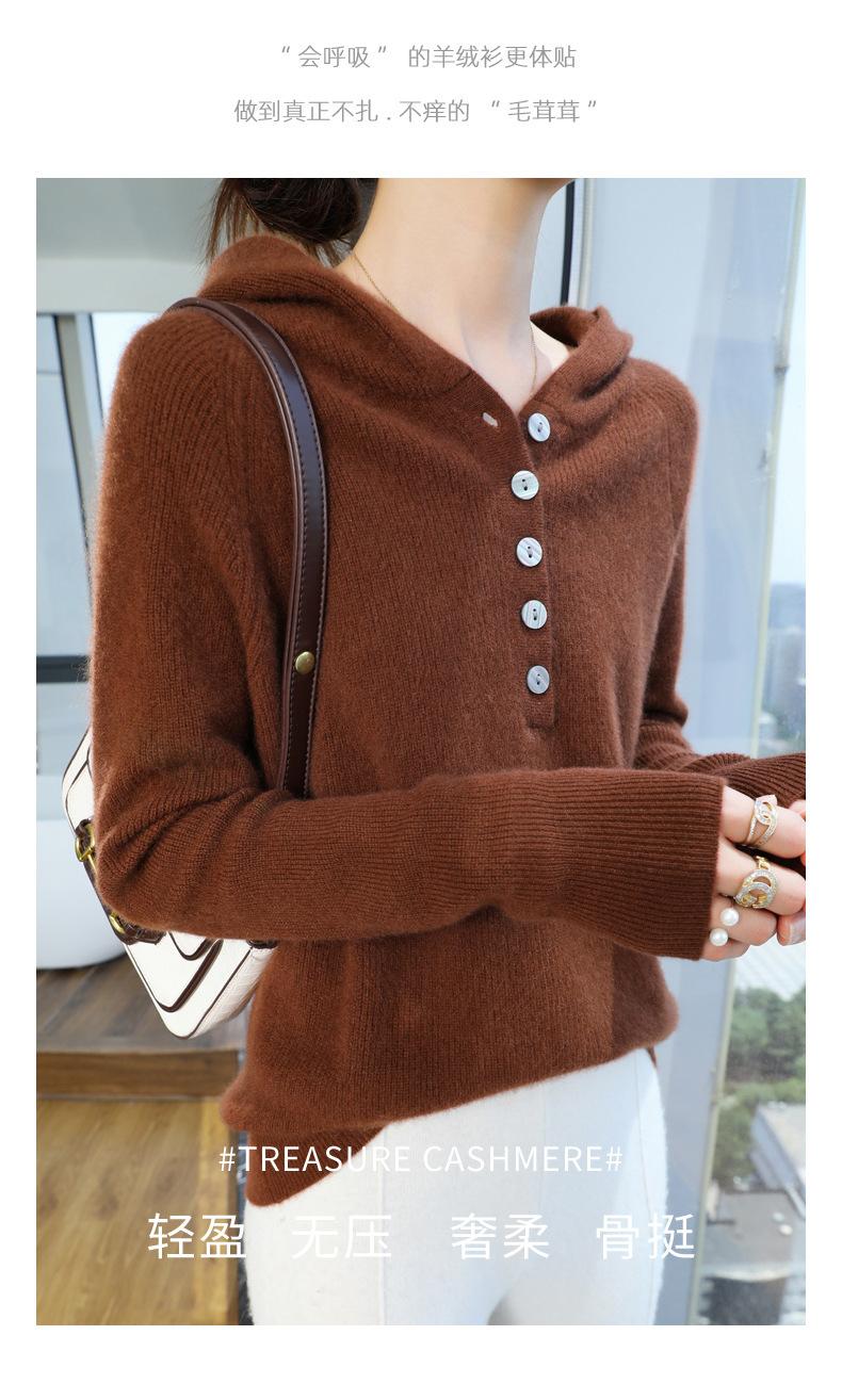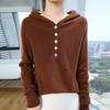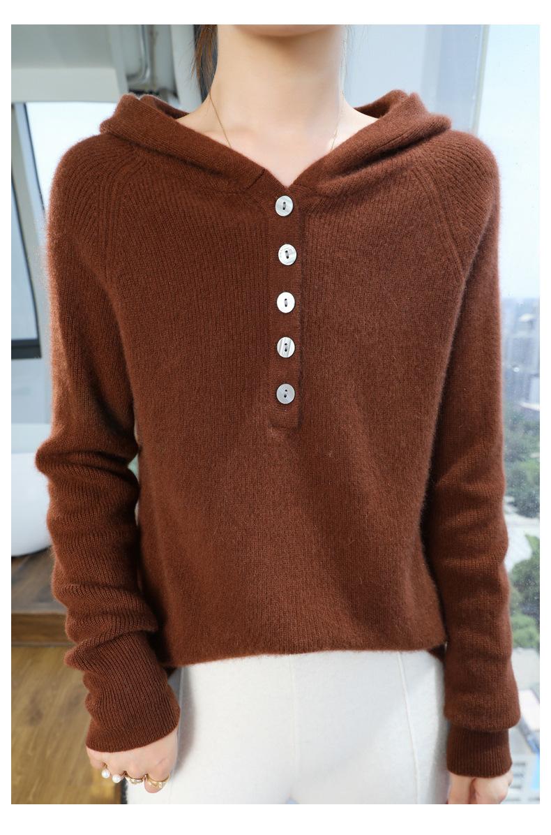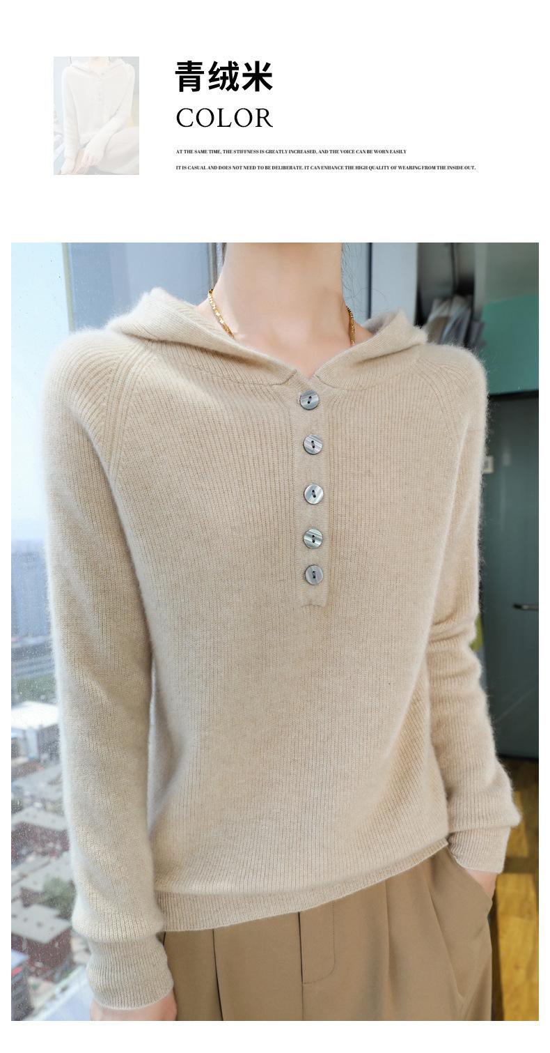 Camisa básica de cachemira gruesa para otoño e invierno, nueva, con capucha, de color liso, informal, combinable, de lana adelgazante, de punto