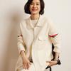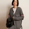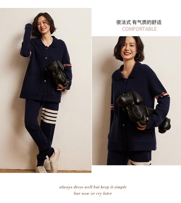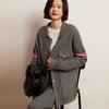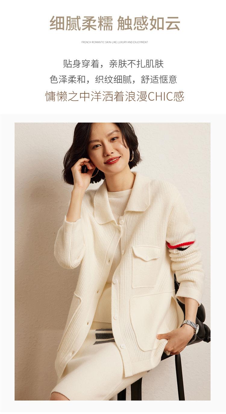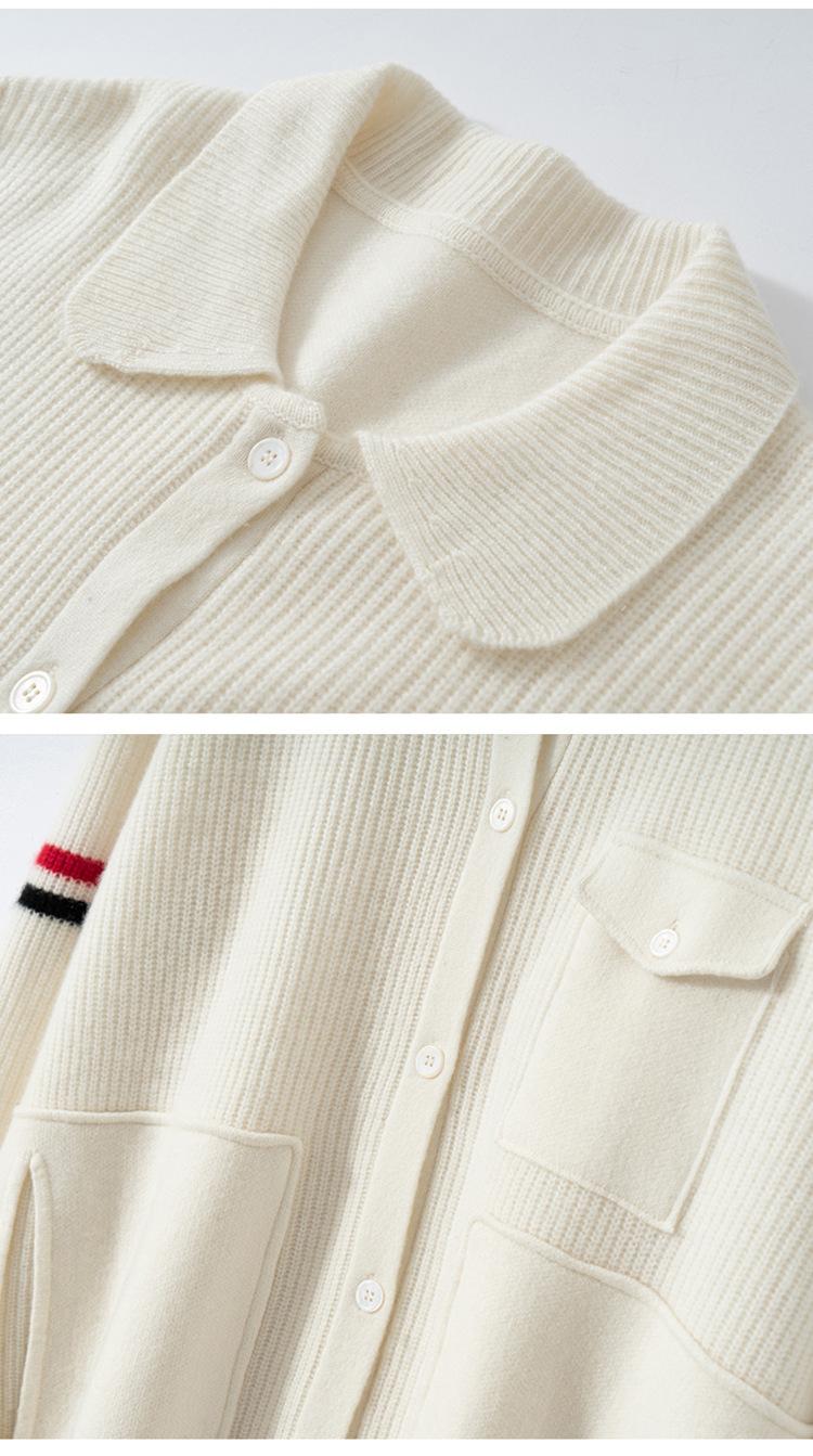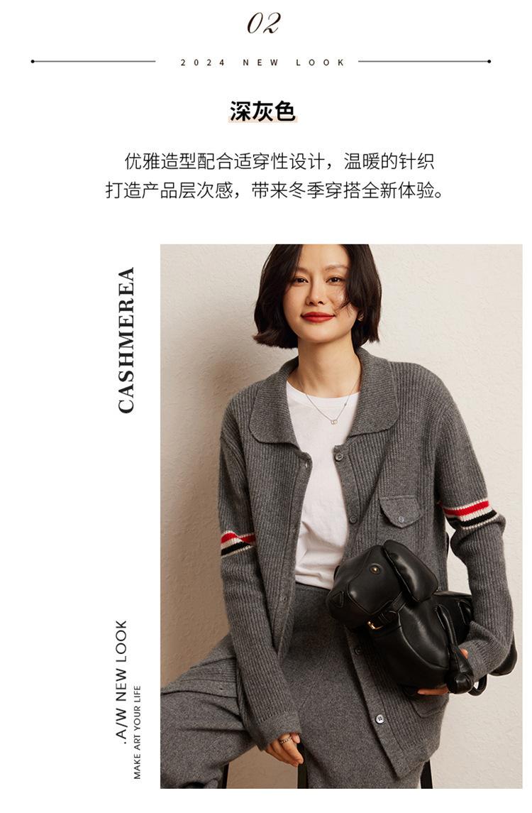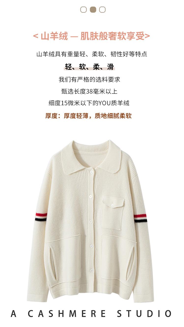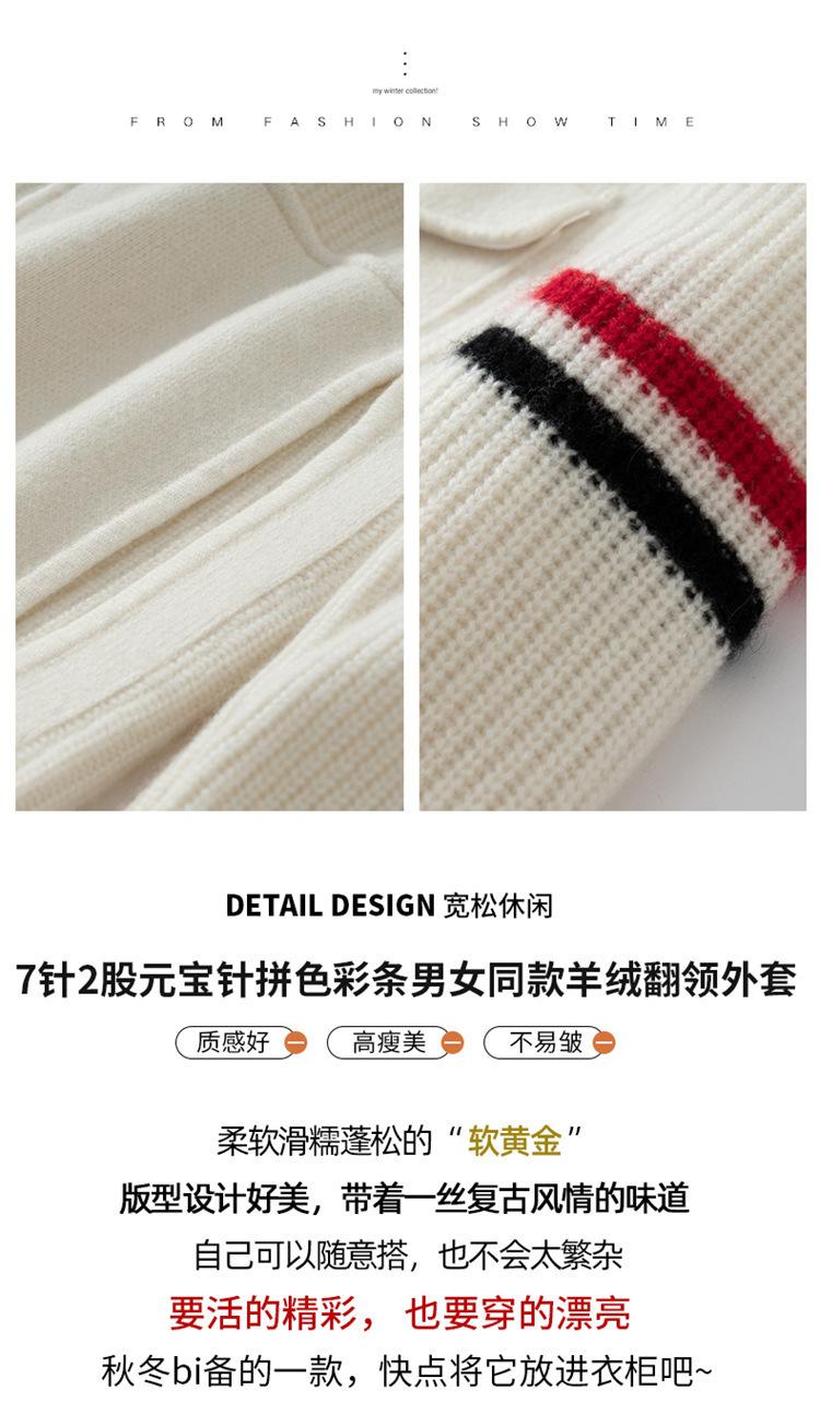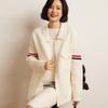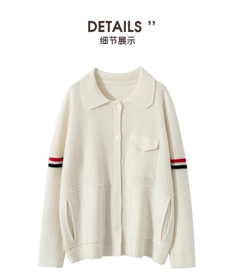 Cachemira de alta gama 2024 otoño e invierno nuevo suéter de punto para mujer con solapa corta, patchwork de color a rayas, estilo holgado y perezoso