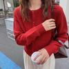 Suéter de Lana Suave Cera Cachemira 2025 Otoño e Invierno Nuevo para Mujer Solapa Corta Bloques de Color Estilo Holgado Perezoso